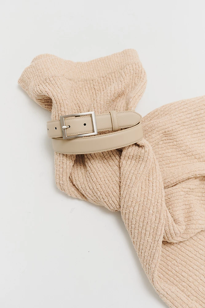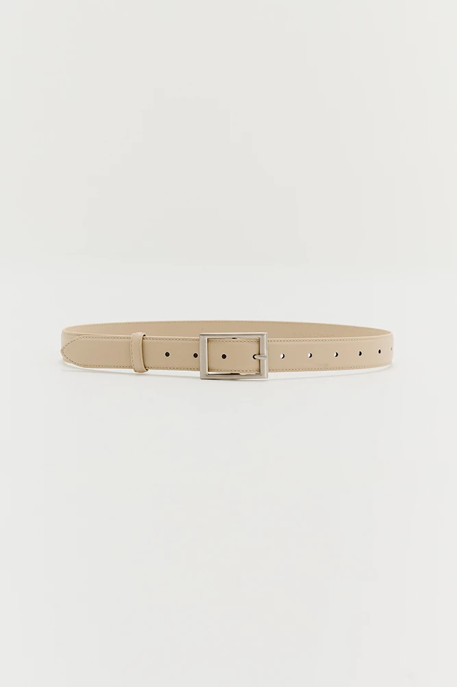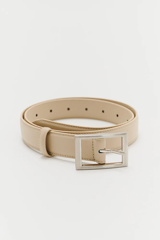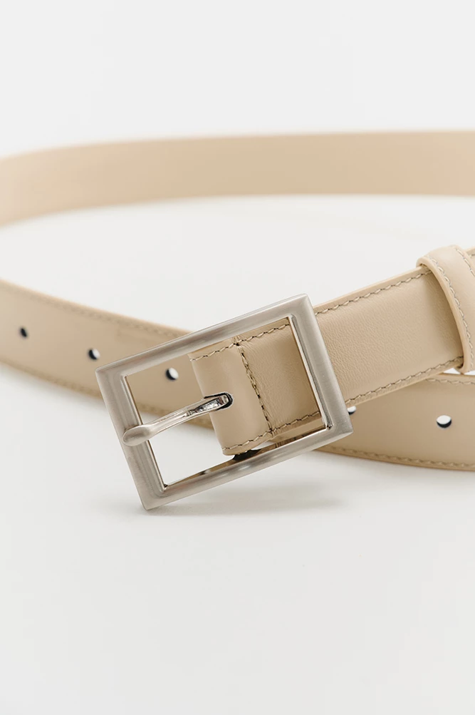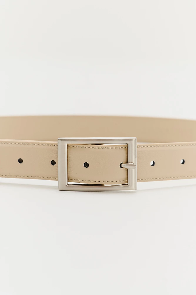 Ремень женский с пряжкой цвета "тертый никель". Лицевая сторона ремня из кожи теленка, внутренняя сторона выполнена из кожи козы такого же цвета.