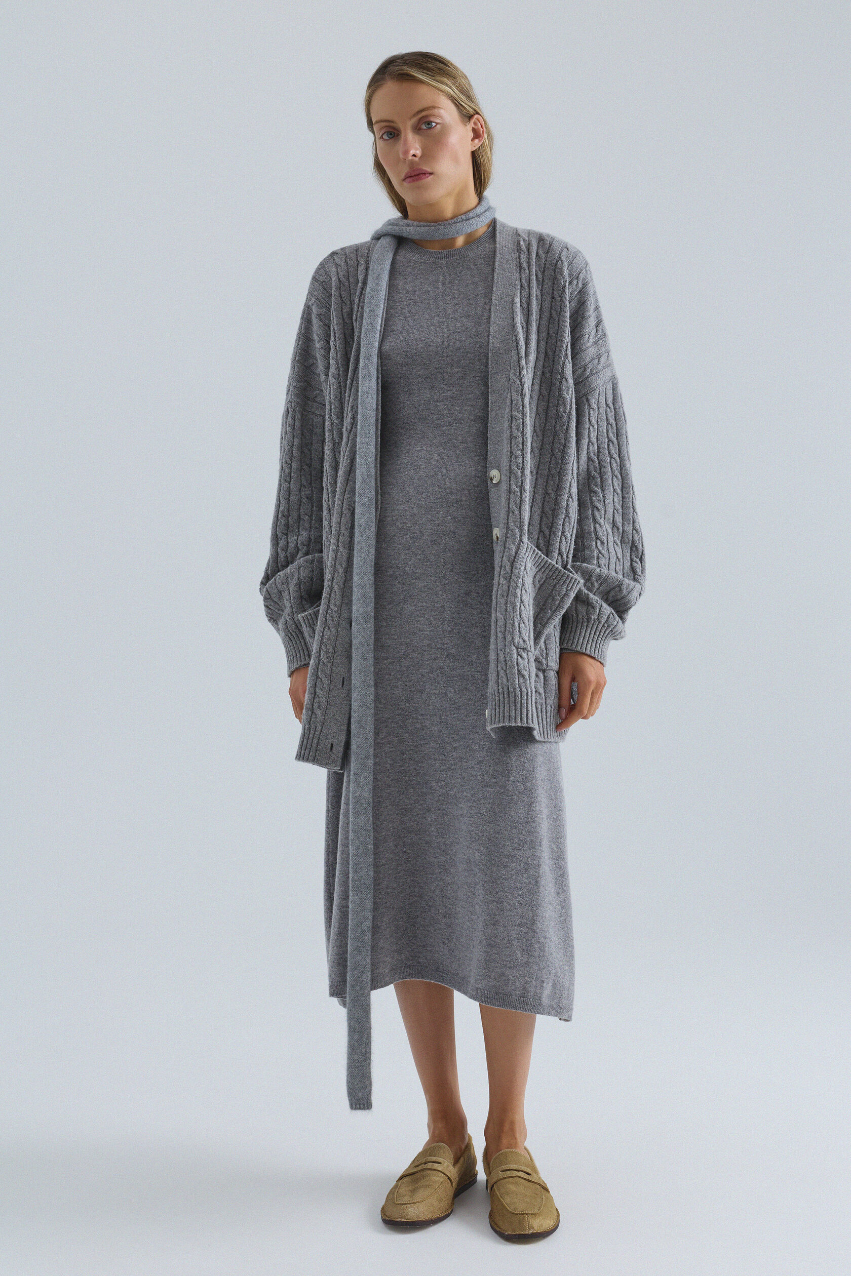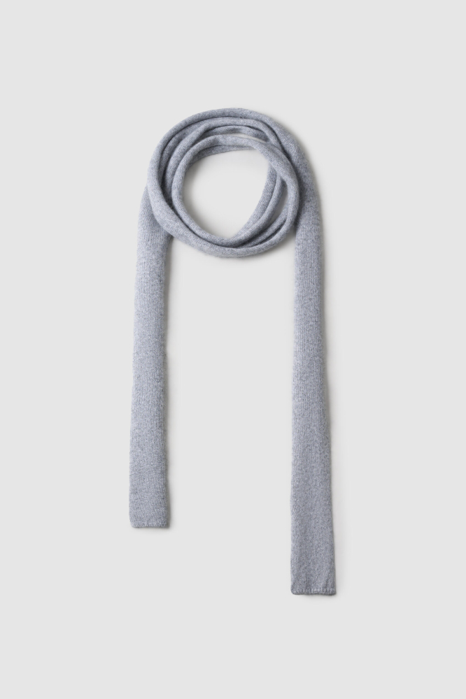Длинный шарф из мягкой шерсти енота. Носите классически — плотно обернув вокруг шеи или расправив во всю длину.