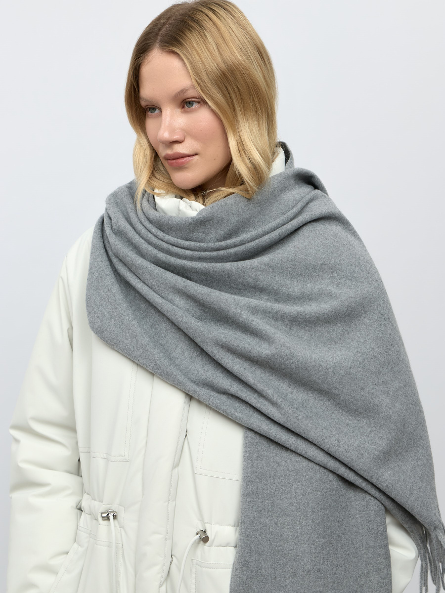Базовый монохромный палантин с хлопком и шерстью незаменим в межсезонье и зимой. Мягкое плотное полотно с легким пушком согревает в холода, не образует статики и легко укладывает поверх куртки или пальто. Модель дополнена плоской бахромой в тон. Размер изделия: 70x190 см.