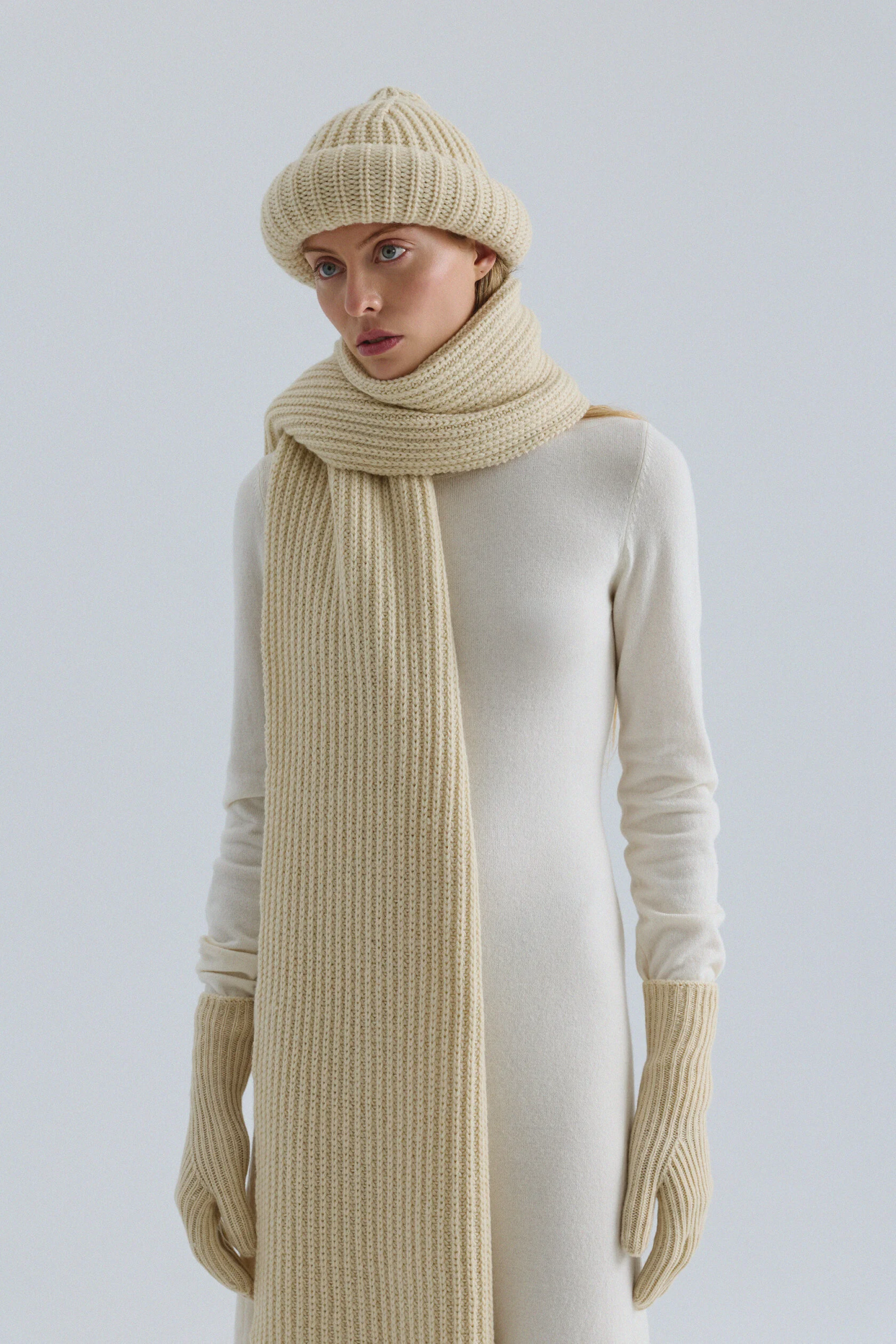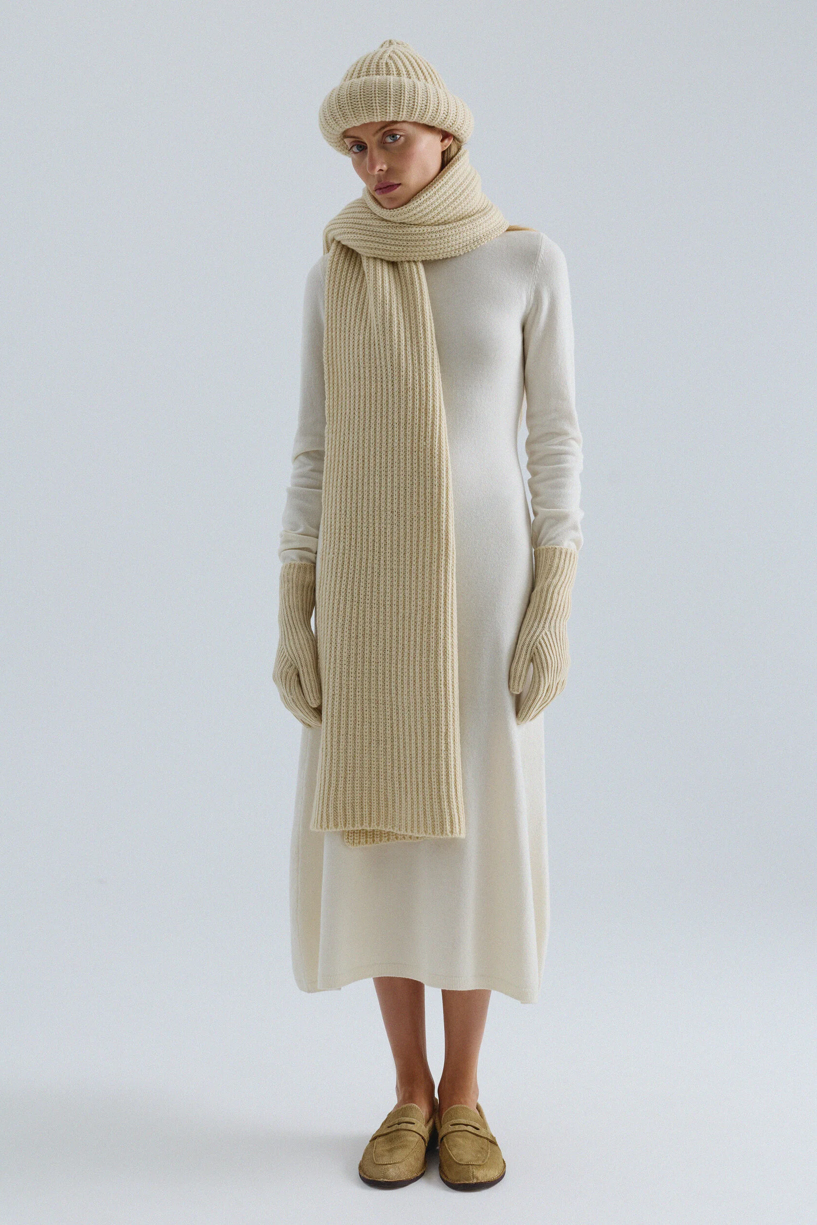 Нам захотелось уйти от классического прочтения базового палантина, поэтому мы решили увеличить его длину до «макси». Модель выполнена из мягкой шерсти мериноса и отличается плотной, фактурной вязкой. Носите палантин по-разному: плотно обернув вокруг шеи или расправив во всю длину.