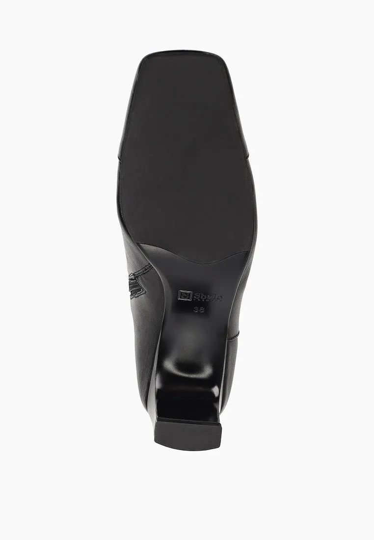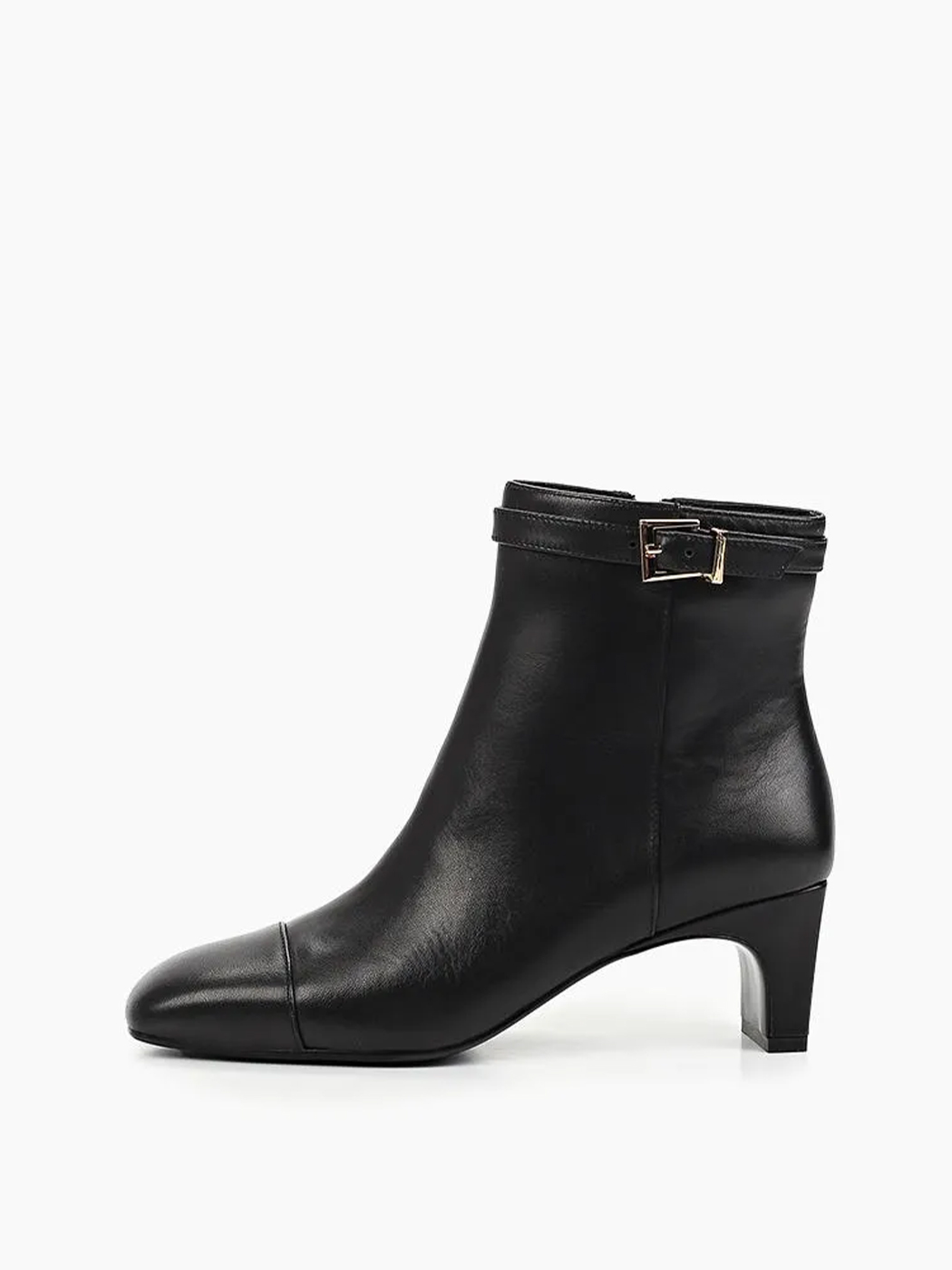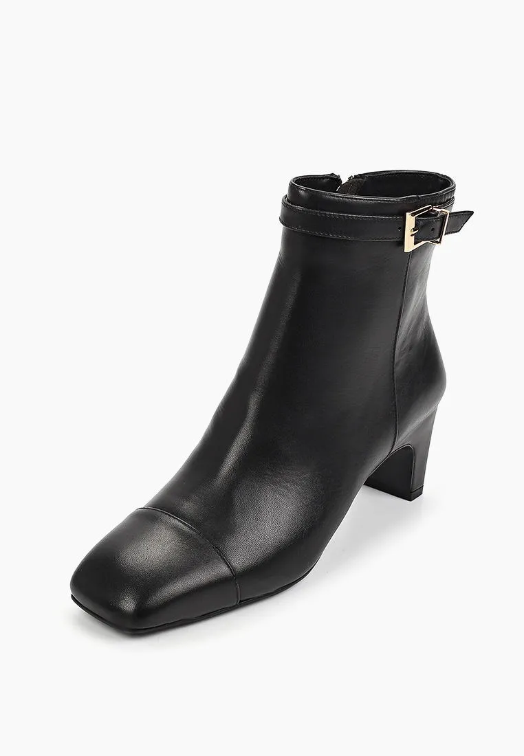 Демисезоннные ботильоны с квадратным мысом на маленьком каблуке.