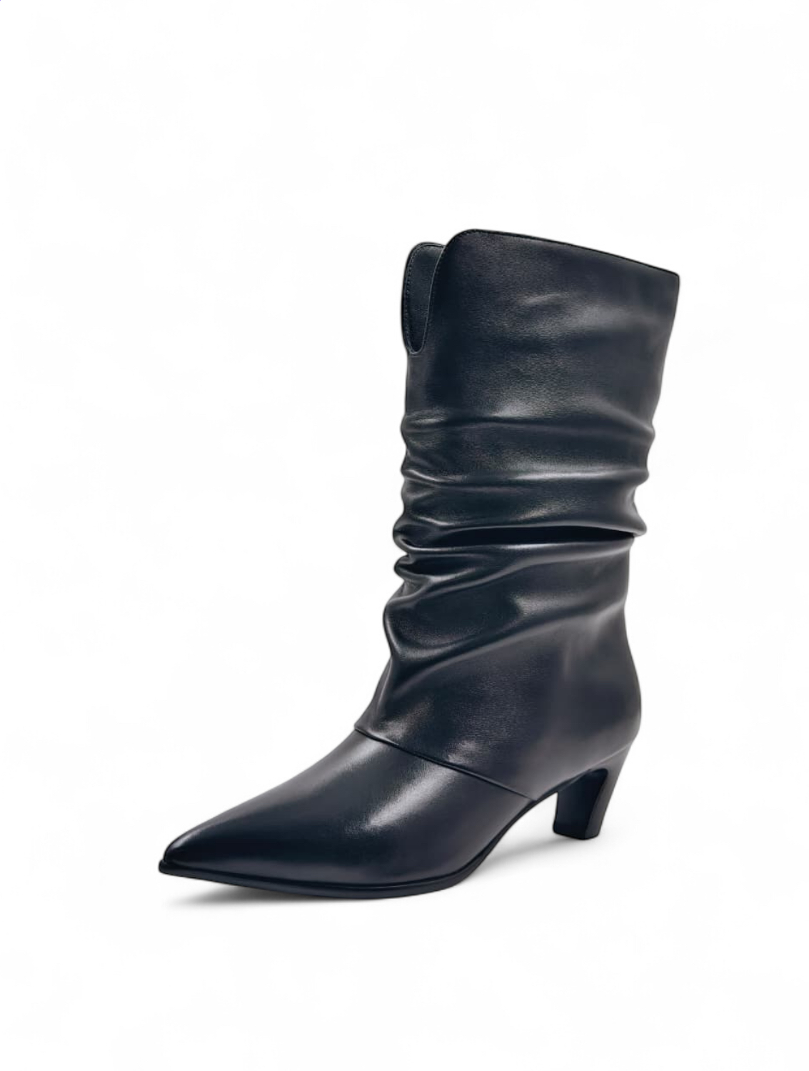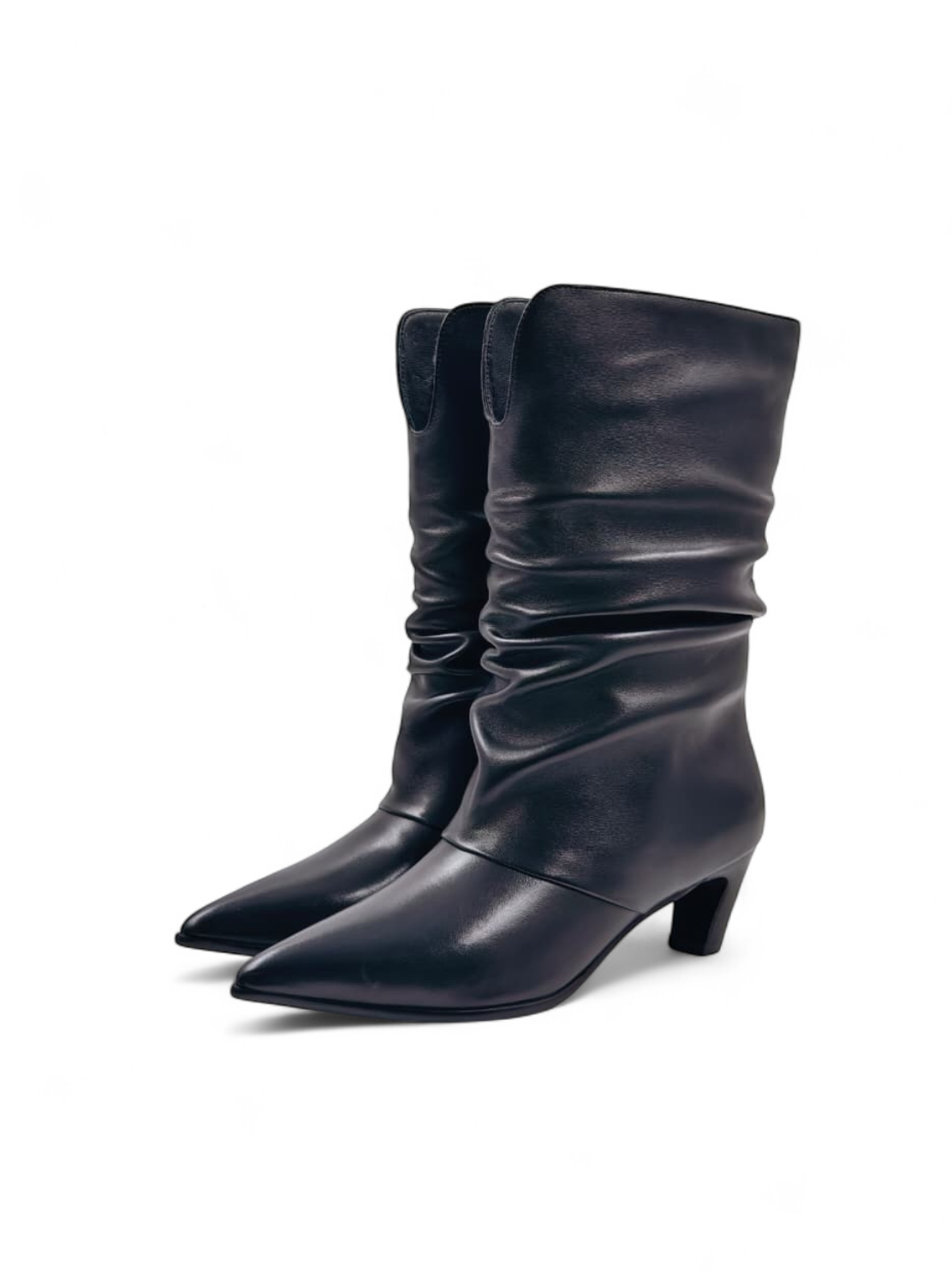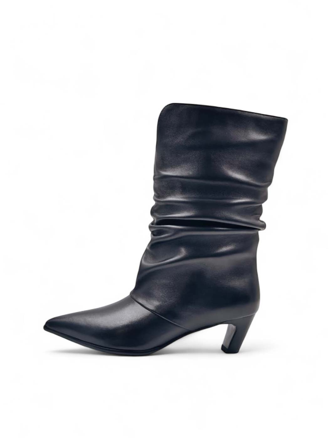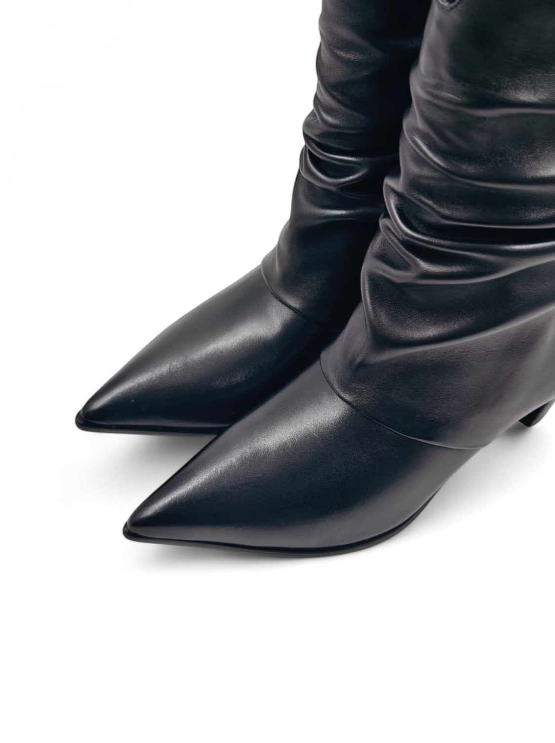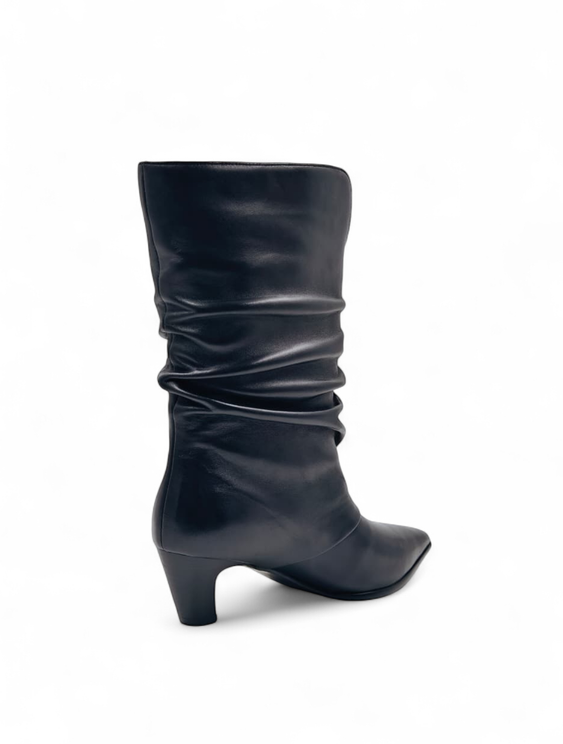 Сапоги из натуральной кожи на небольшом каблуке с драпировкой - идеальный вариант для переменчивой погоды.