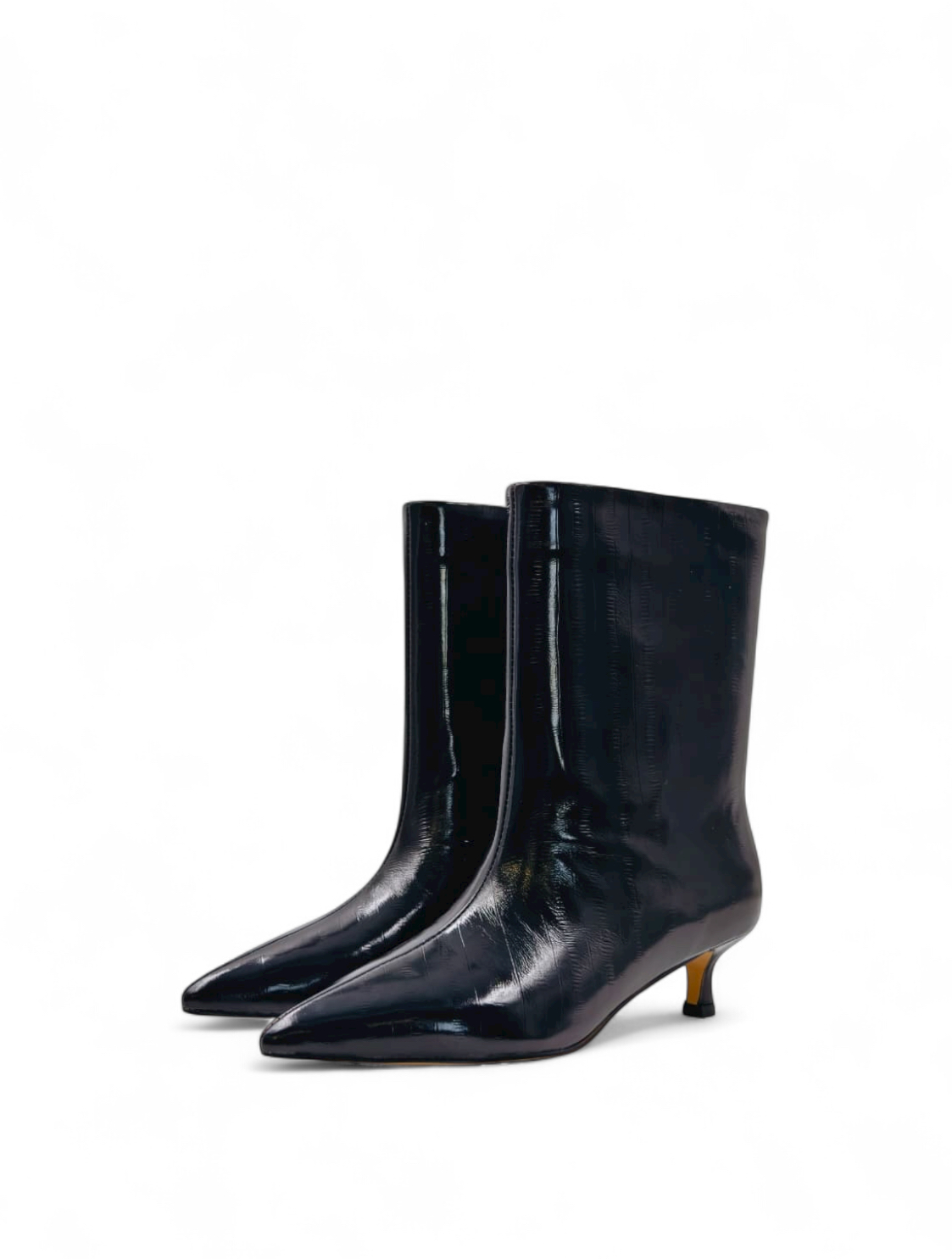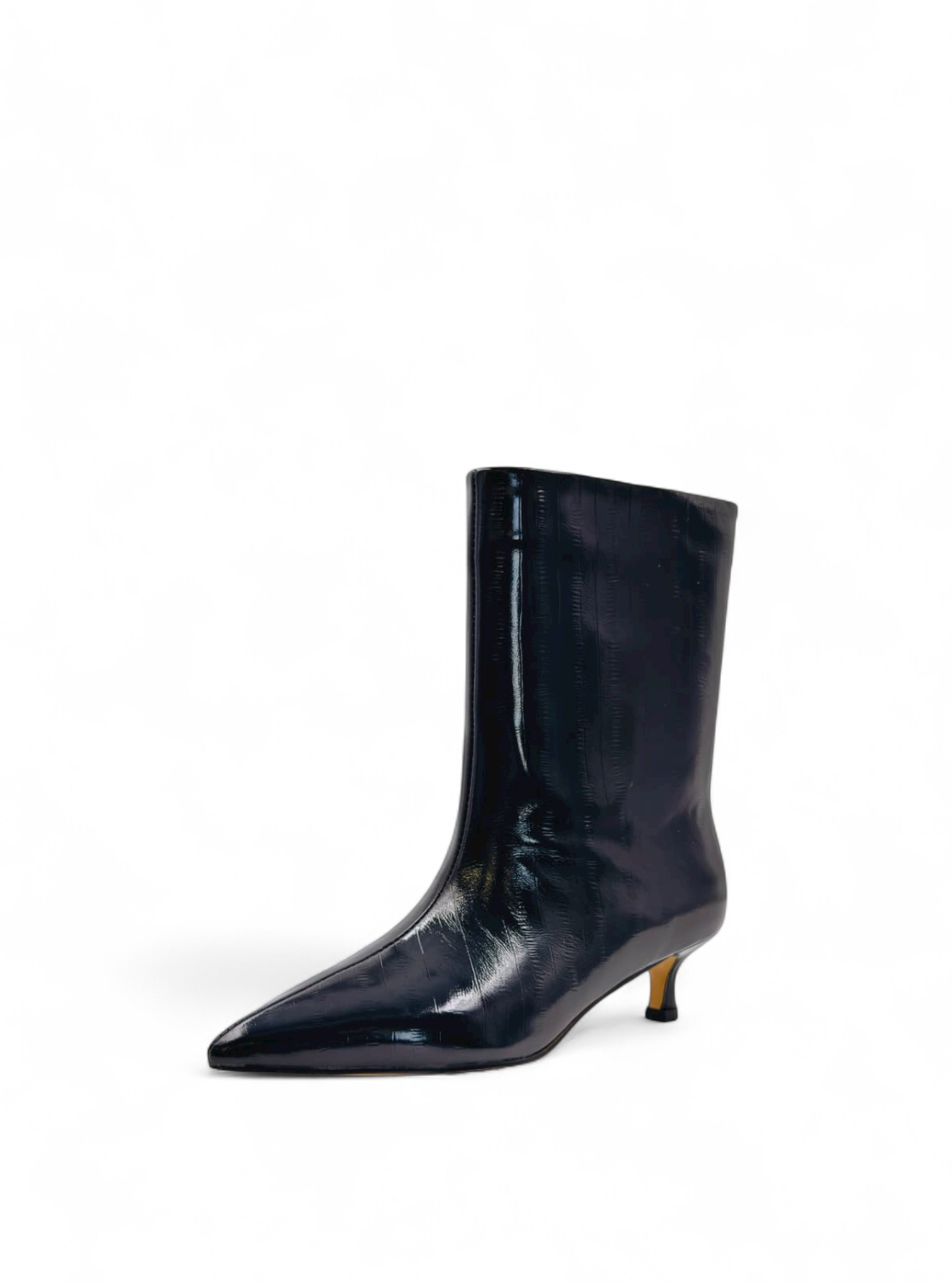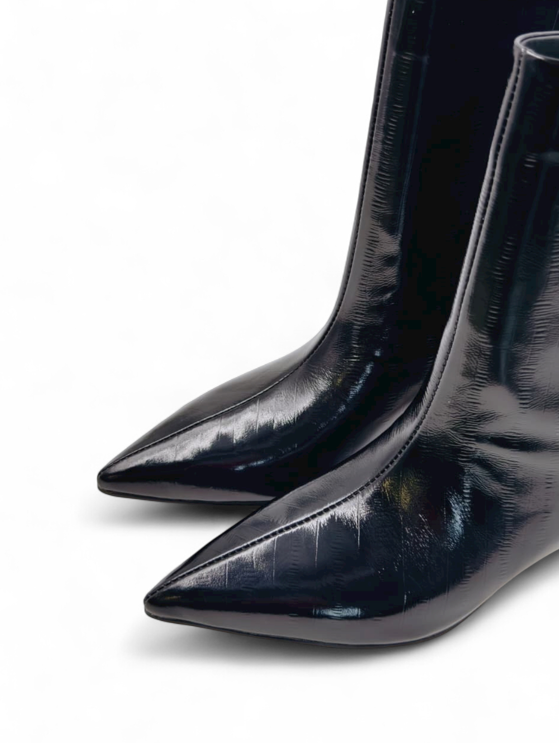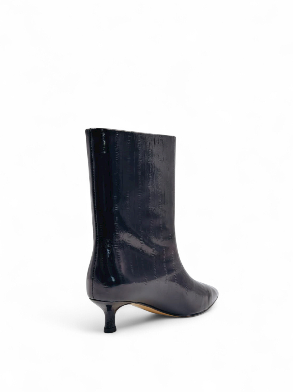 Ботильоны из натуральной кожи черного цвета с имитацией вертикальных полосок.