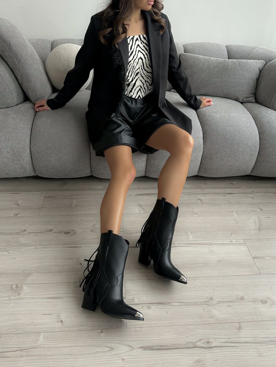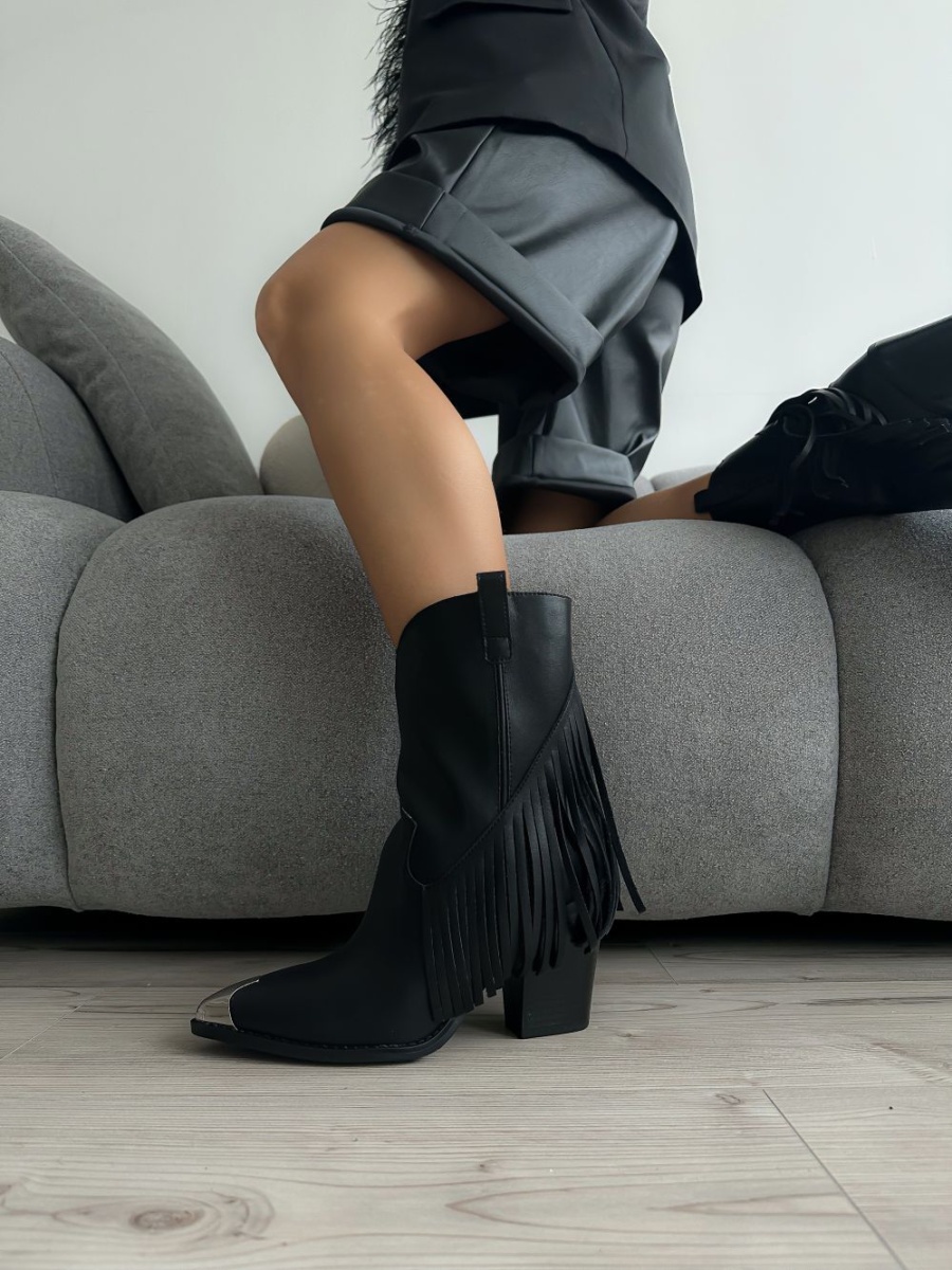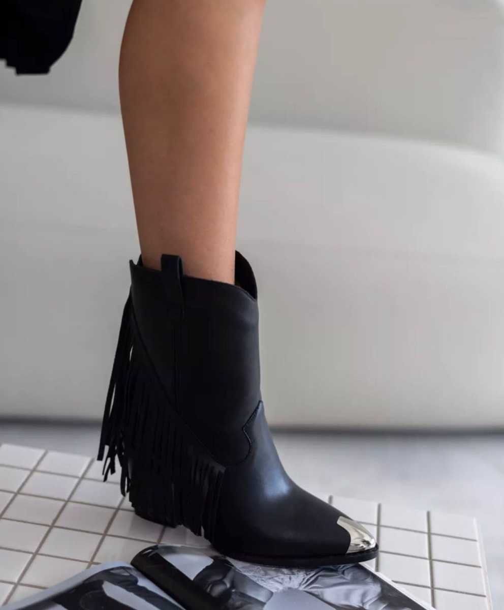Казаки из натуральной кожи с металлическим носом — это стильная и удобная обувь для любителей практичных и элегантных решений. Чёрный цвет делает их универсальными для любого образа.