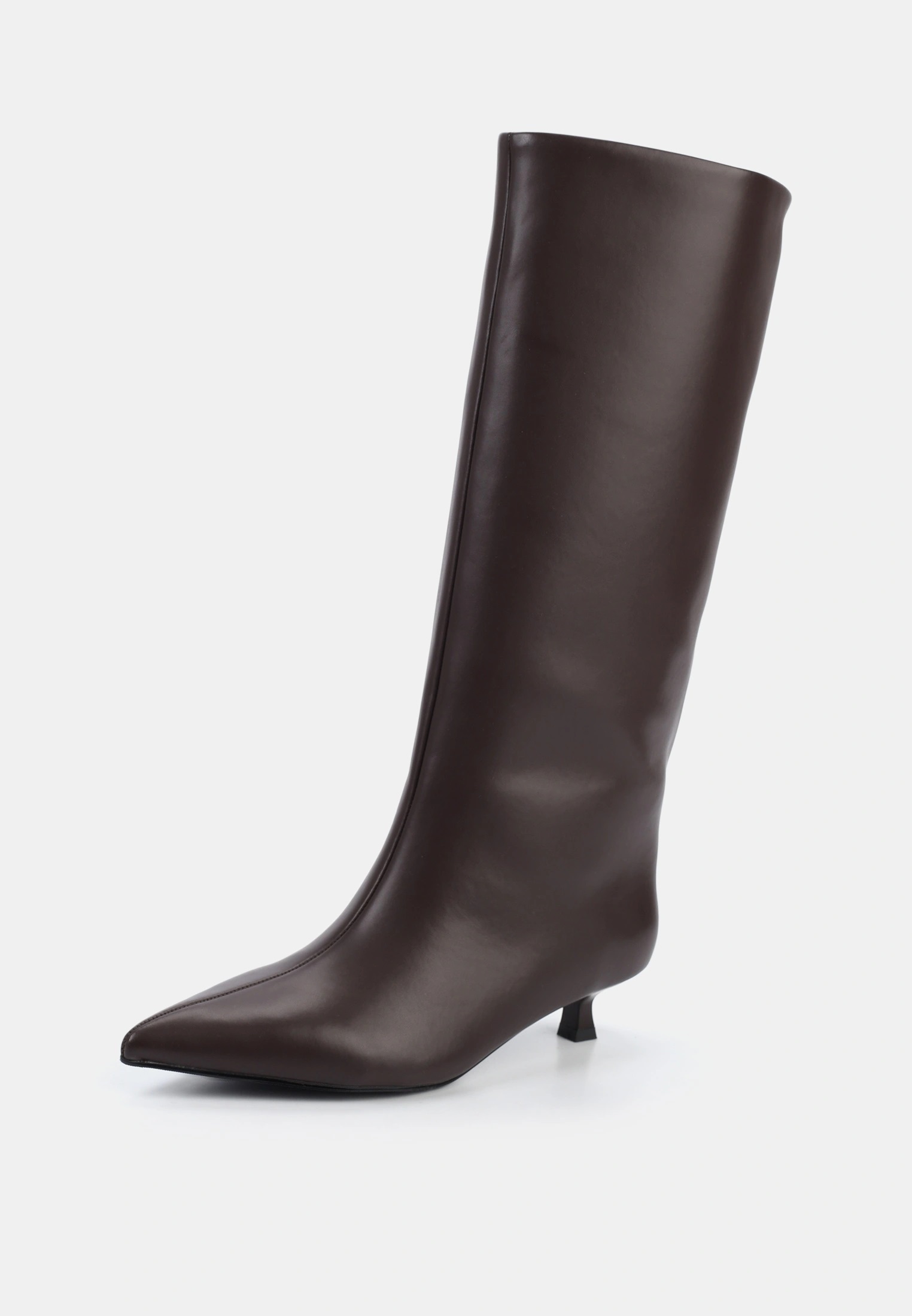 Коричневые сапоги-трубы на маленьком каблуке — стильный и практичный выбор для вашего гардероба. Они идеально подойдут для создания различных образов и станут незаменимой частью вашего повседневного стиля.