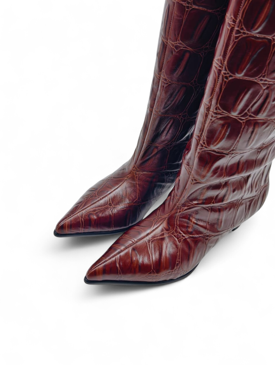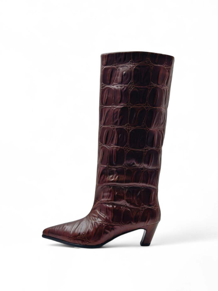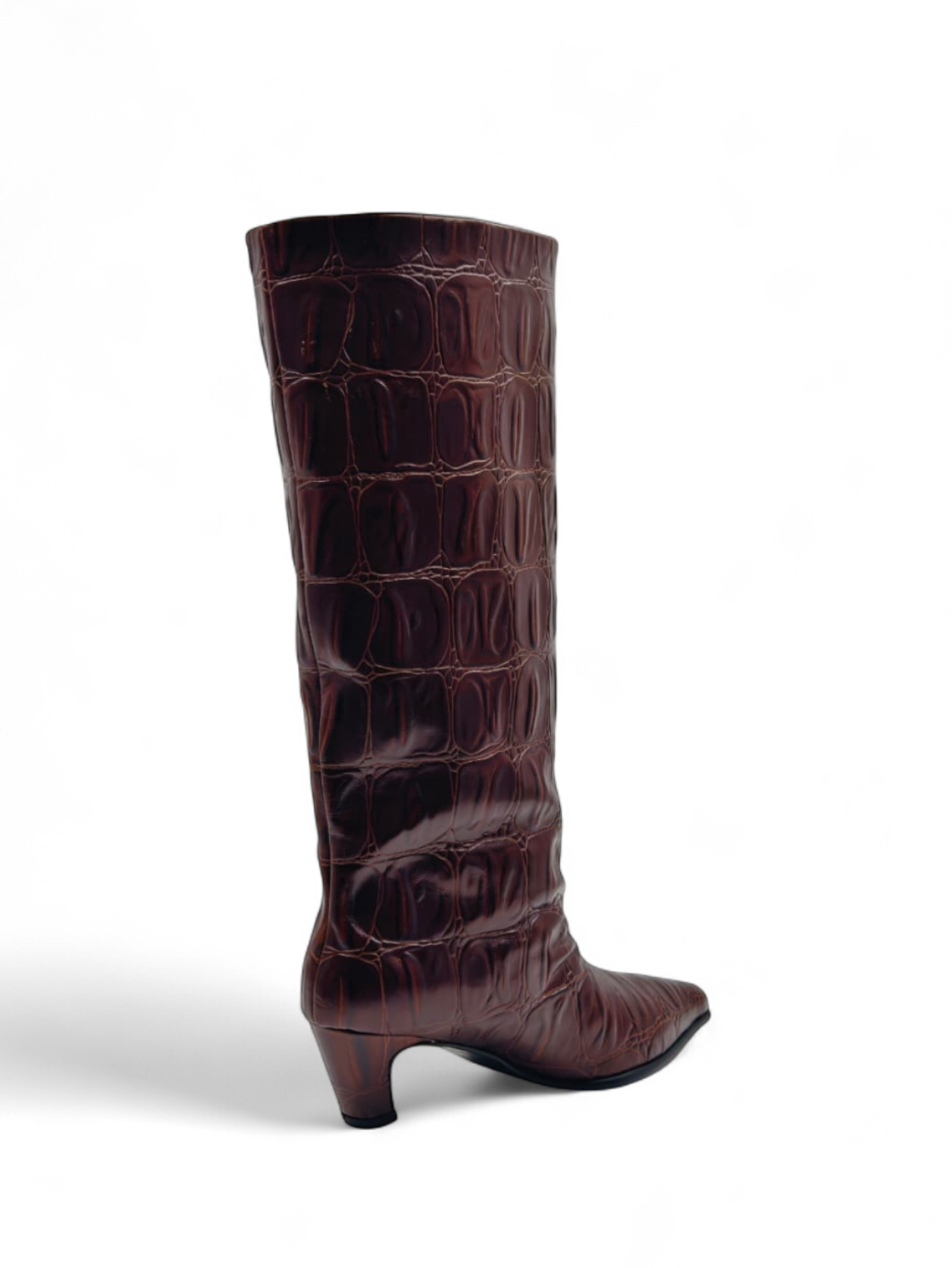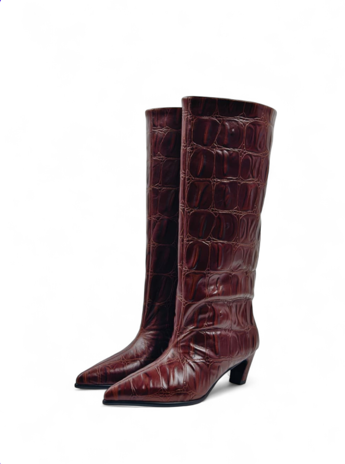 Идеальный выбор для переменчивой погоды. Коричневый цвет универсален и легко сочетается с различными элементами гардероба, добавляя образу элегантности и стиля, а необычная фактура "крокодил" придает изюминки.