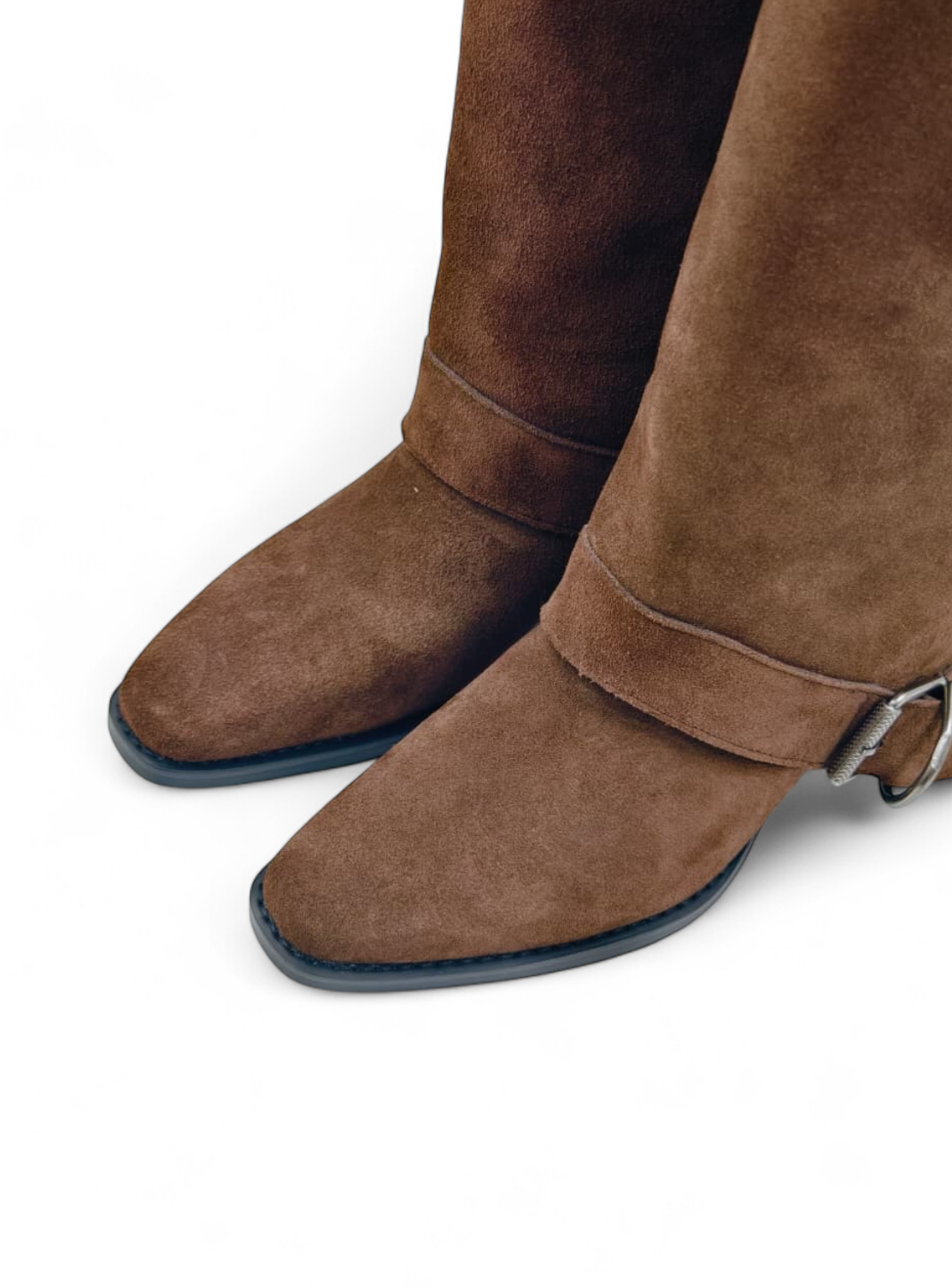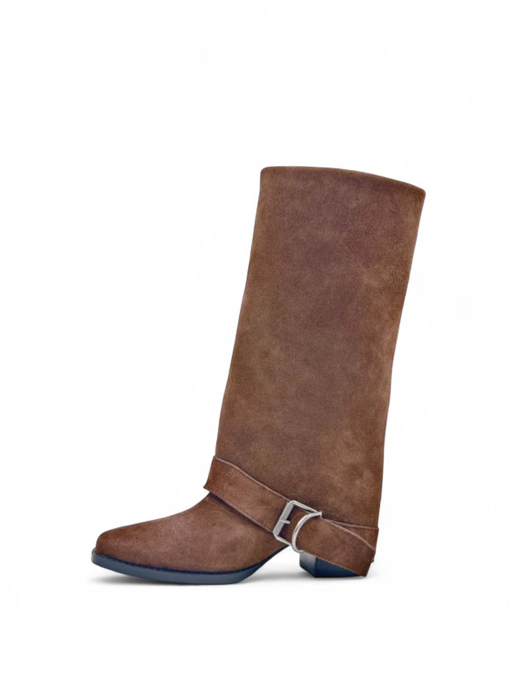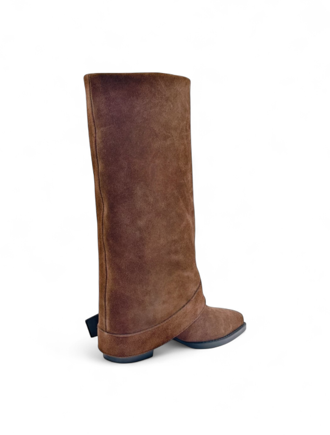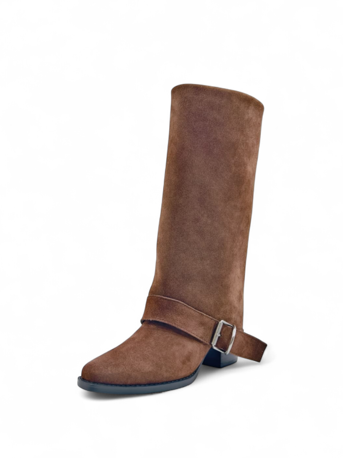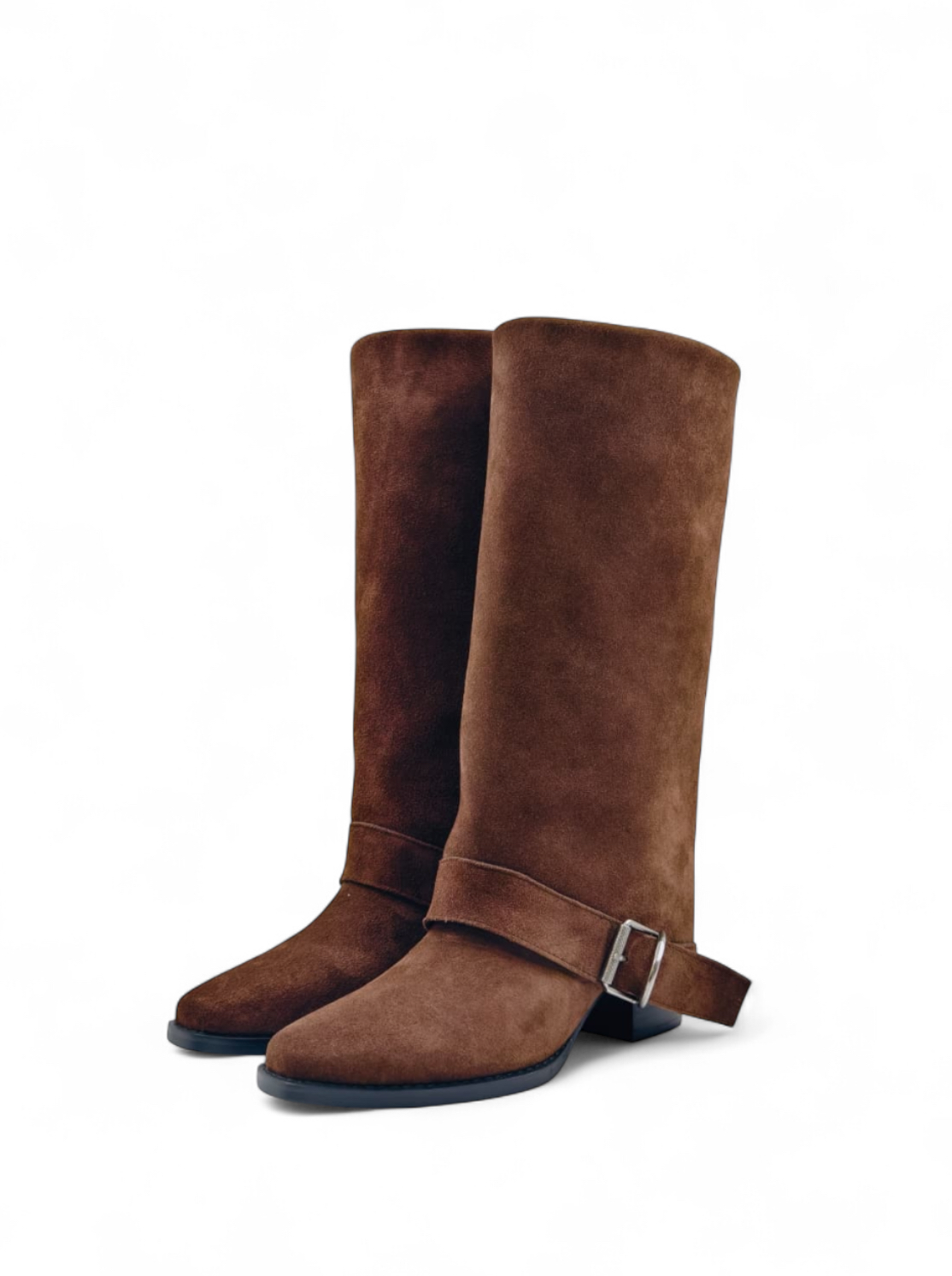 Натуральная замша обеспечивает мягкость и приятные тактильные ощущения при носке, а также долговечность и устойчивость к износу. Высокое голенище сапог обеспечивает дополнительную поддержку и комфорт, защищая ноги от ветра.