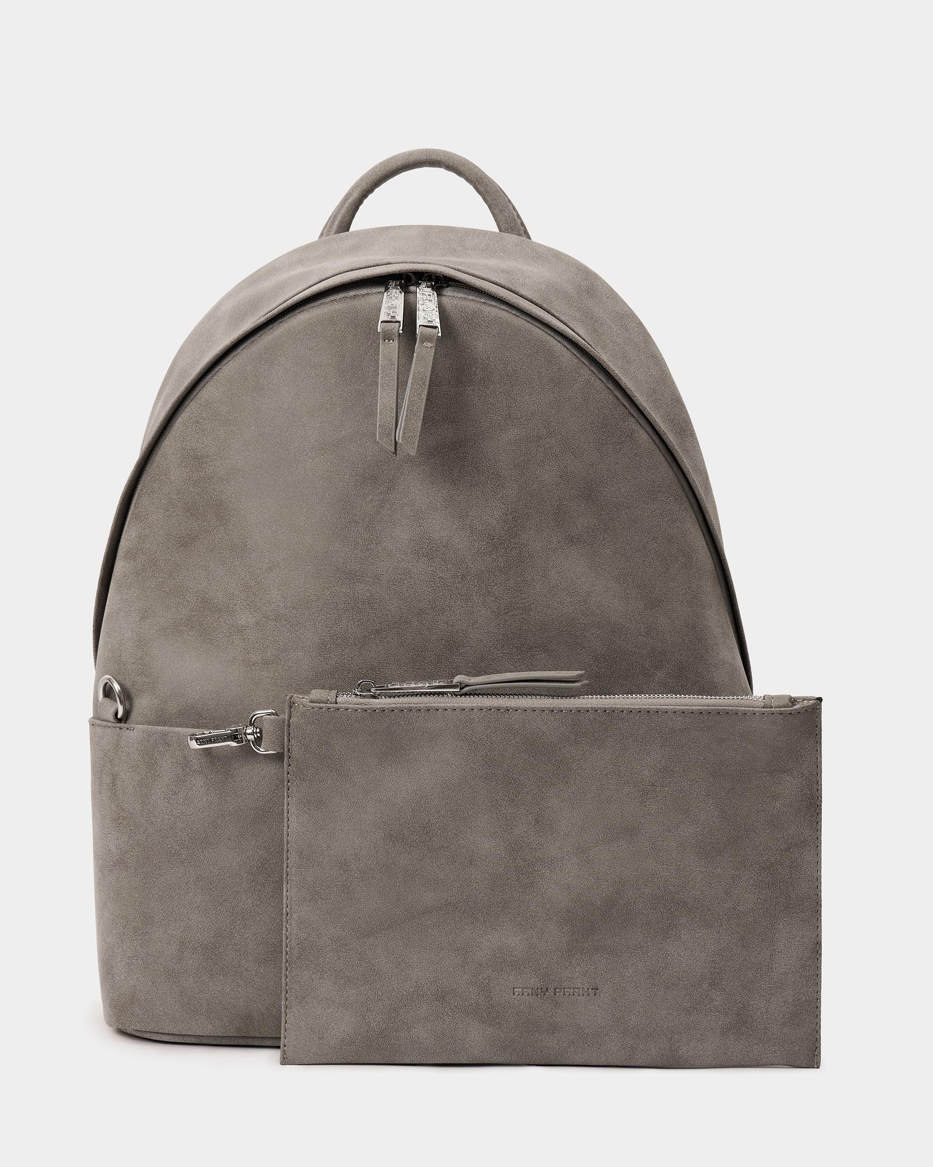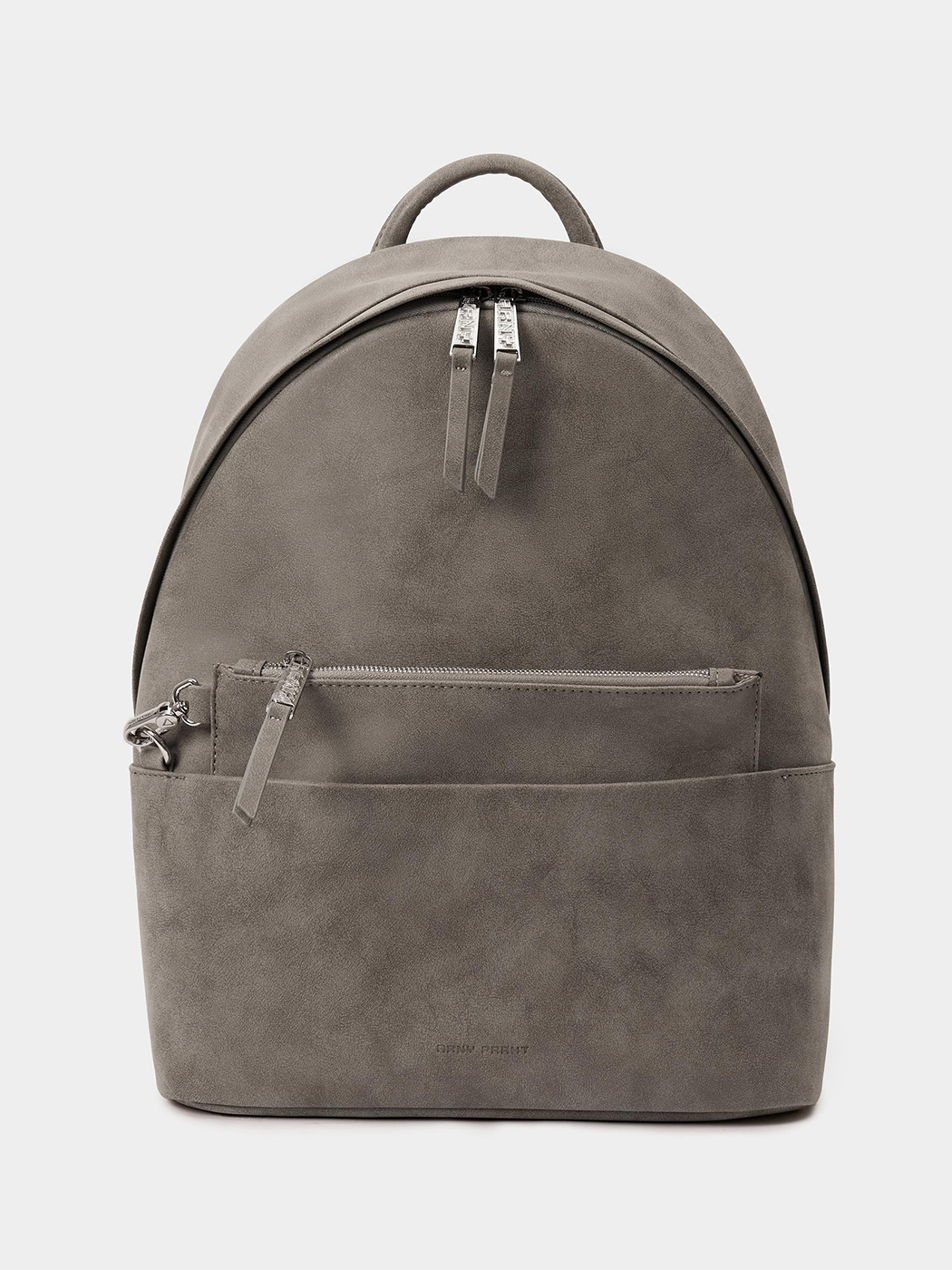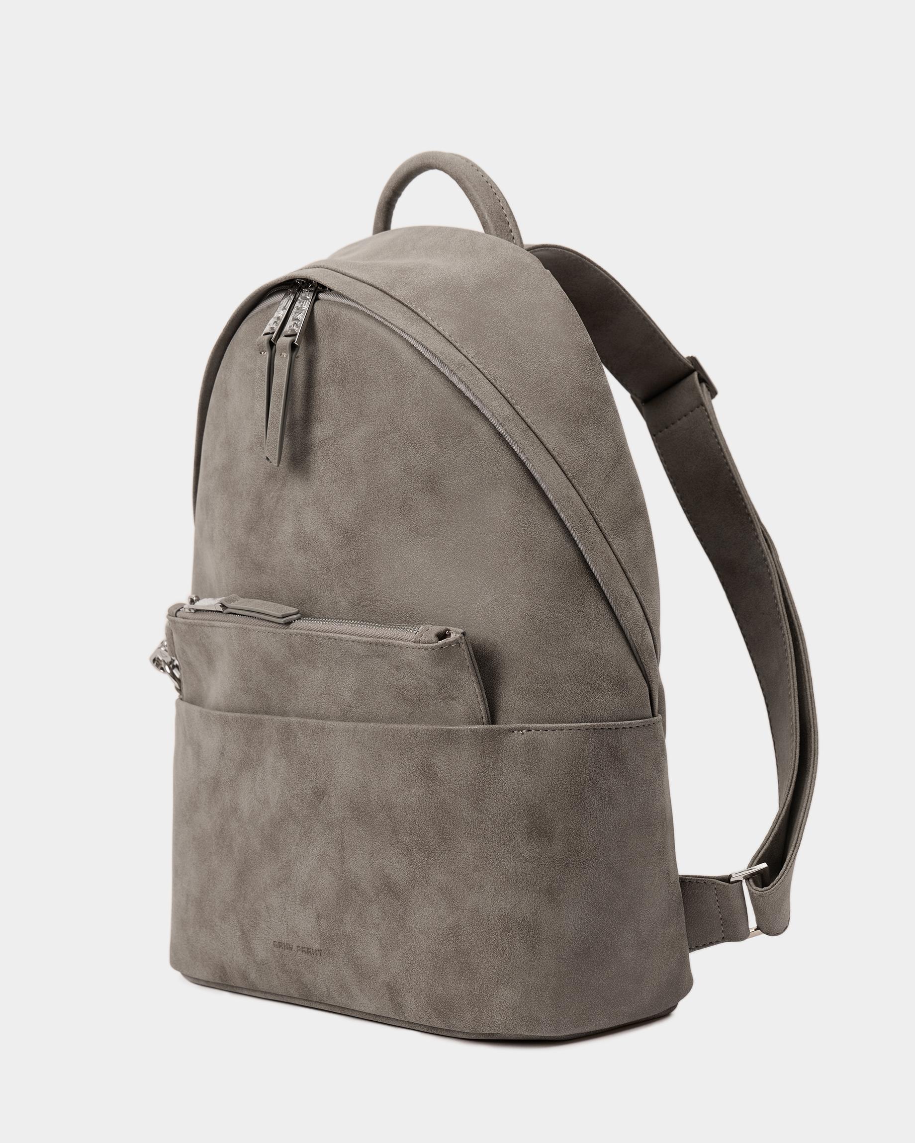 Вместительный рюкзак для ноутбука 13" из замшевой экокожи с широкими лямками в песочном цвете.