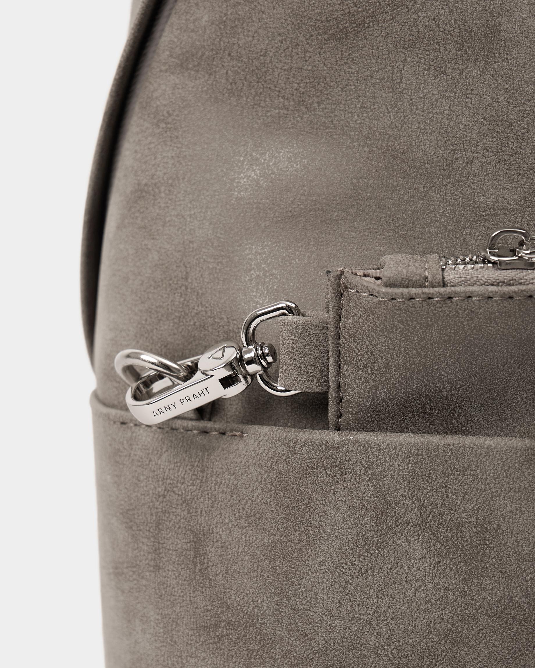На лицевой стороне карман, дополнительный карман-клатч, крепится на карабинах, отстегивается и может использоваться как отдельная сумка. На задней стенке снаружи карман на молнии. Фиксированные плечевые ремни, регулируются по длине.