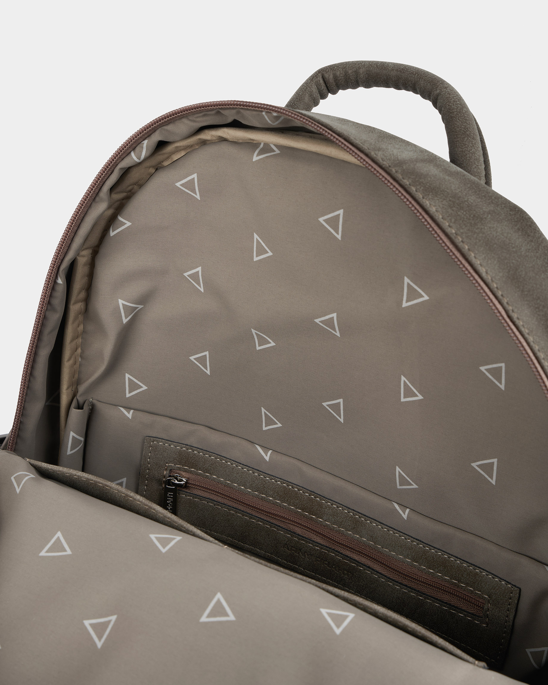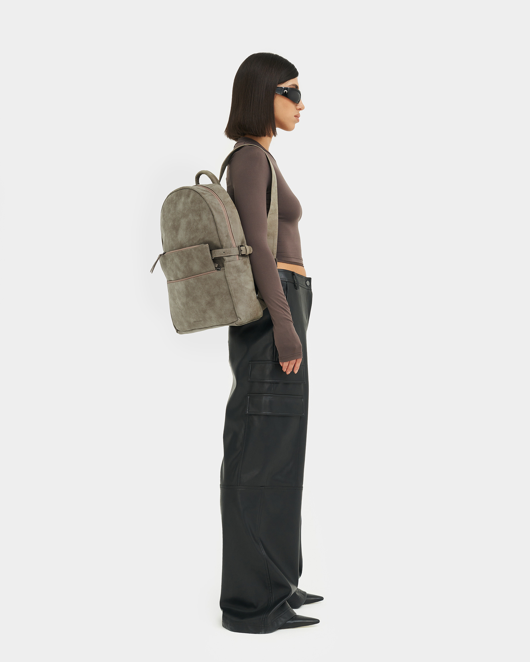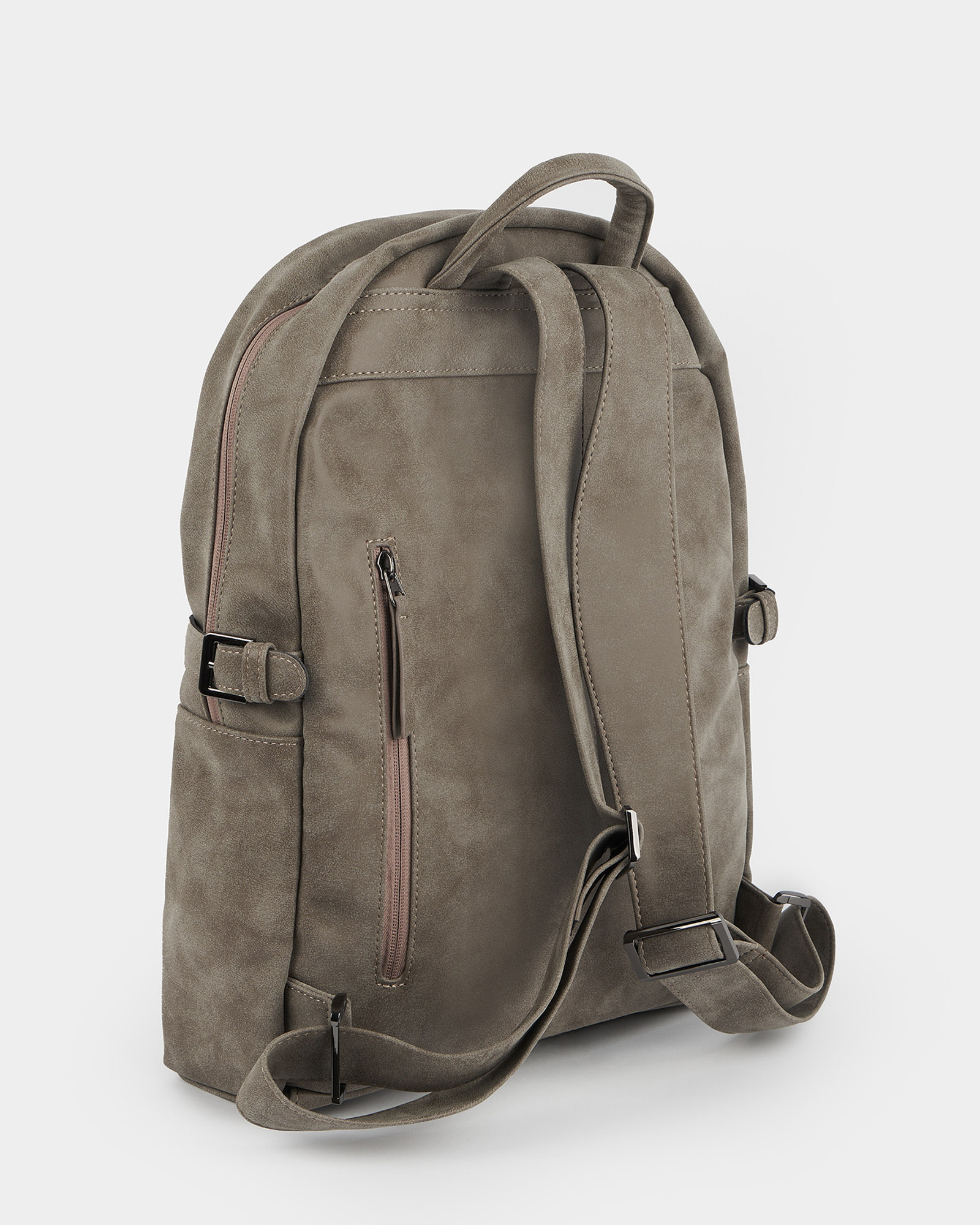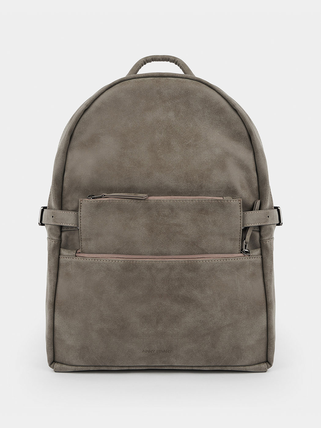 Городской рюкзак унисекс. Выполнен из экокожи. Снаружи на лицевой стороне карман на молнии, дополнительный карман-клатч, крепится на ремнях, отстегивается и может использоваться как отдельная сумка с ручкой-петлей на карабине. На задней стенке снаружи карман на молнии. Внутри два отделения, одно из которых предназначено для ноутбука или планшета, два кармана, один из которых на молнии. Подкладка из искусственного шелка. Фиксированные плечевые ремни, регулируются по длине для вашего удобства. Фурнитура серебристого цвета, роллинговое покрытие никель.