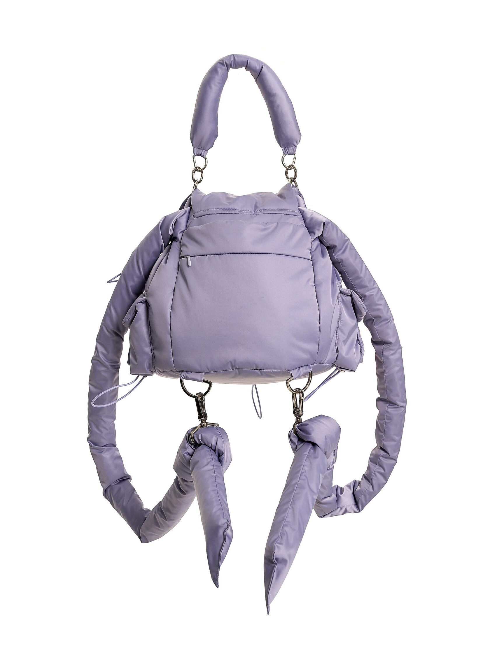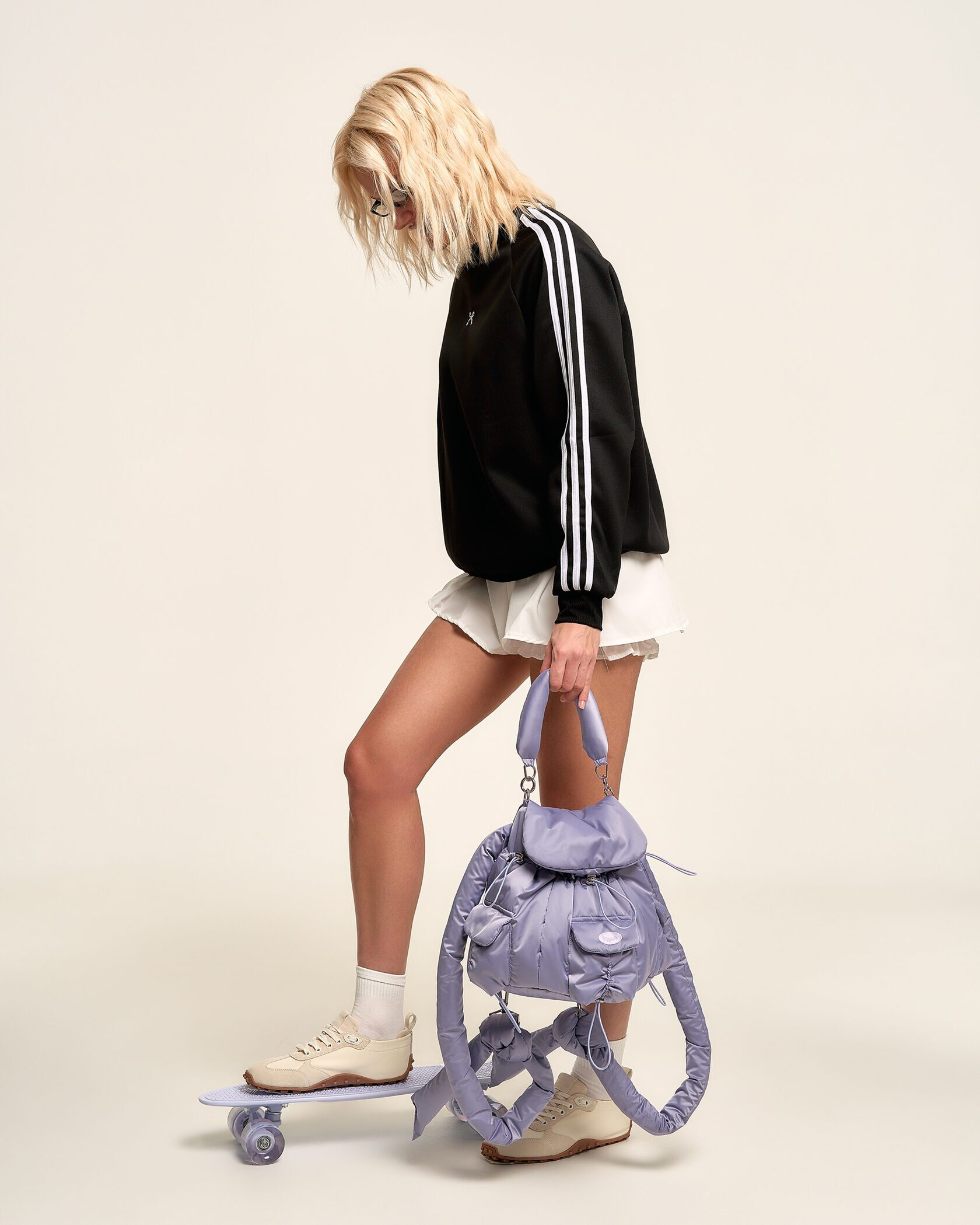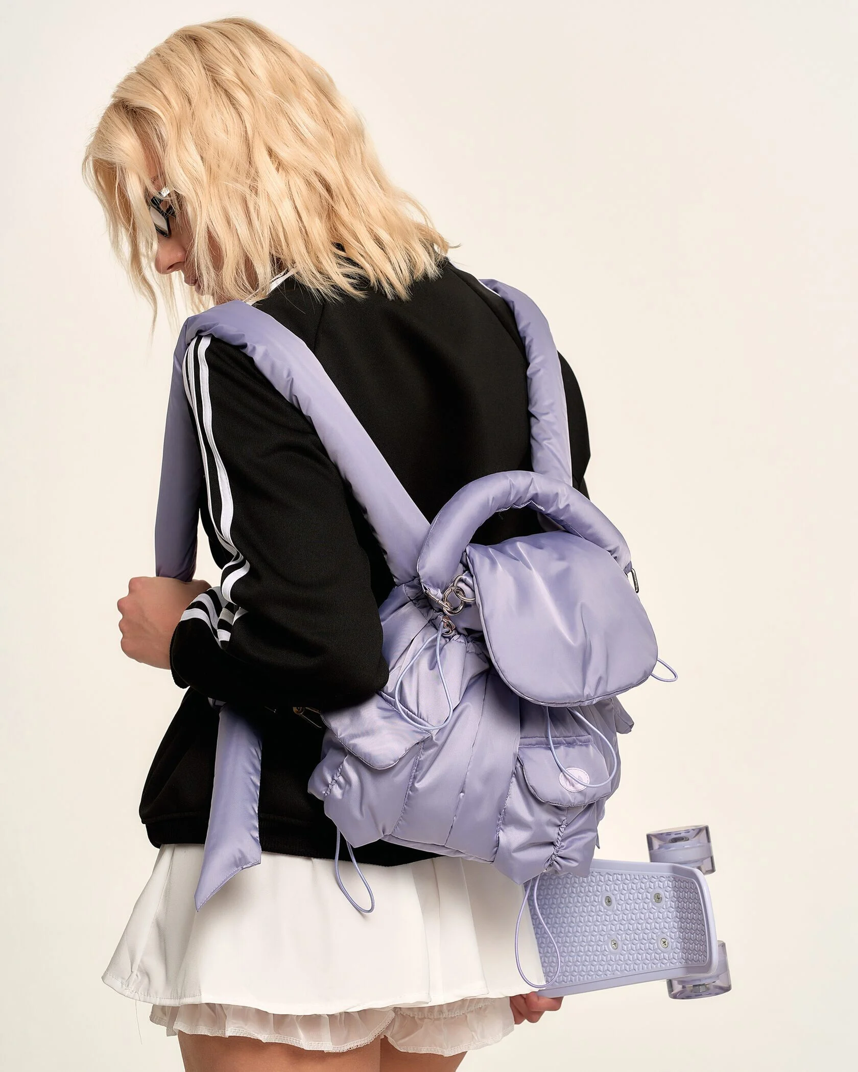 Мини-рюкзак Jelly из жемчужной ткани с эффектными резинками и множеством отделений, которые делают его вместительным и при этом компактным. У Jelly Pack есть одно большое отделение на завязках, три поменьше, а также мини-карманы, чтобы все девчачьи штучки точно поместились. Jelly Pack имеет форму ведерка, которую можно регулировать за счет затягивания резинок. Дутый клапан закрывает основное отделение, объемные лямки регулируются по длине, а короткая ручка-дуга по желанию отстегивается. Вместе они создают идеальный микс удобства и стиля для твоих повседневных образов.