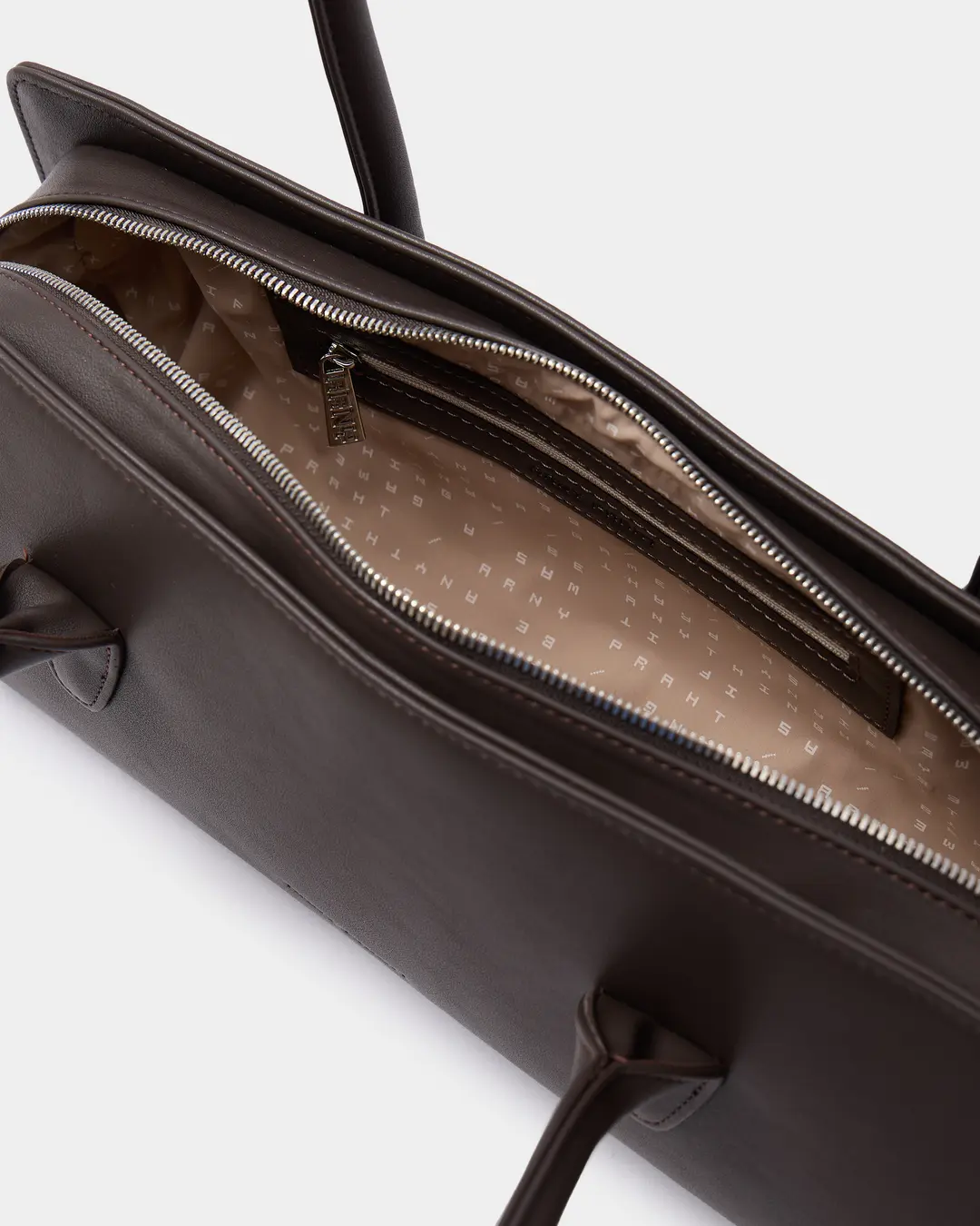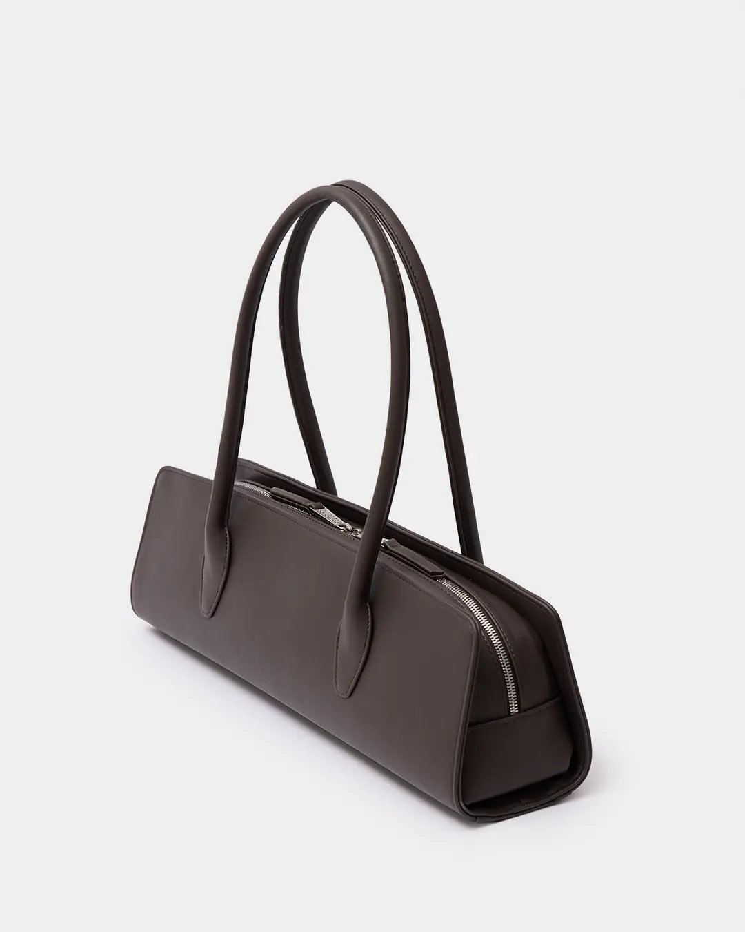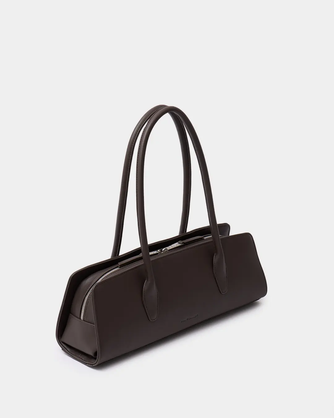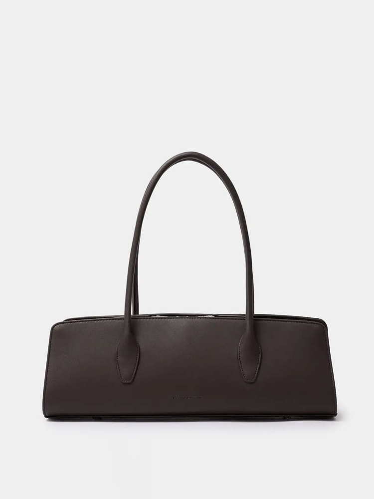 Утончённая сумка-такса с тонкими ручками из экокожи в коричневом цвете