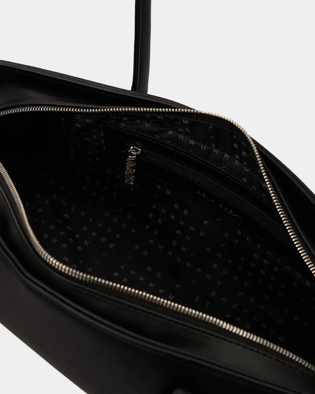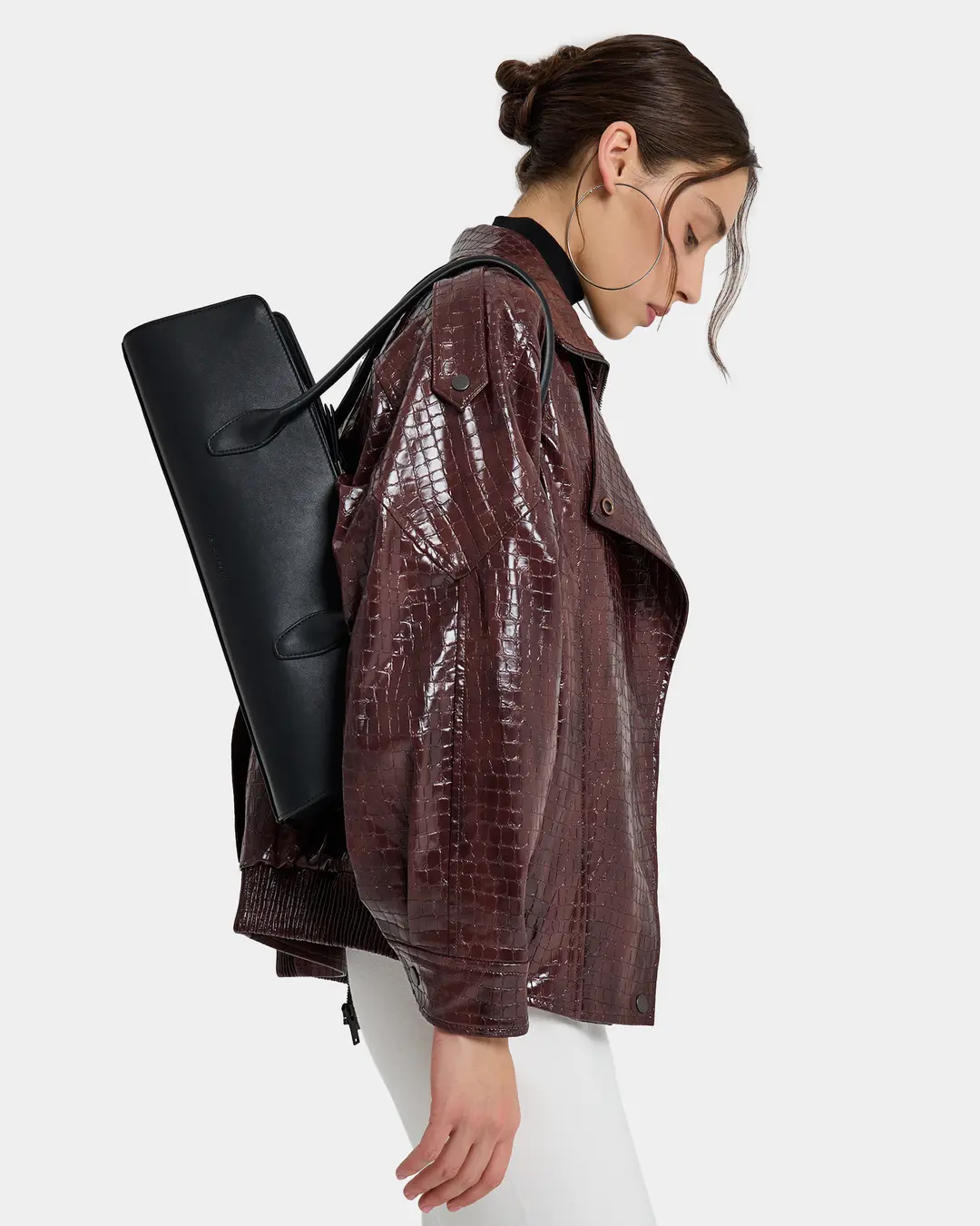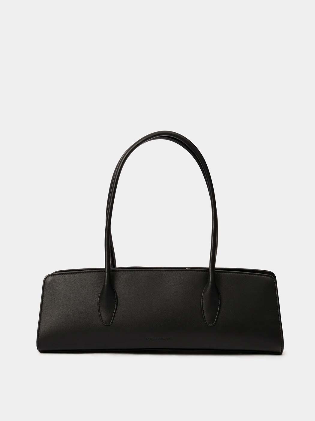 Утончённая сумка-такса с тонкими ручками из экокожи в черном цвете