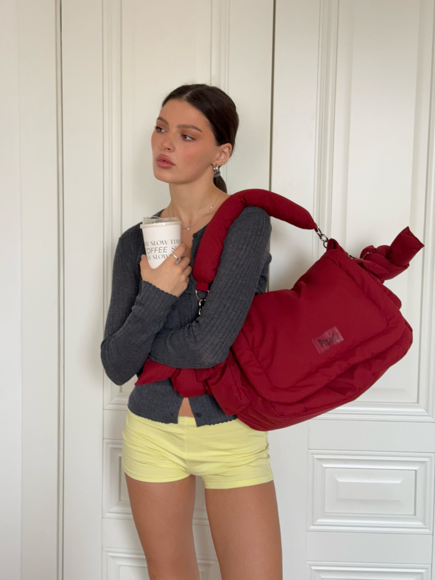 Та самая знаменитая спортивная сумка в цвете бургунди.