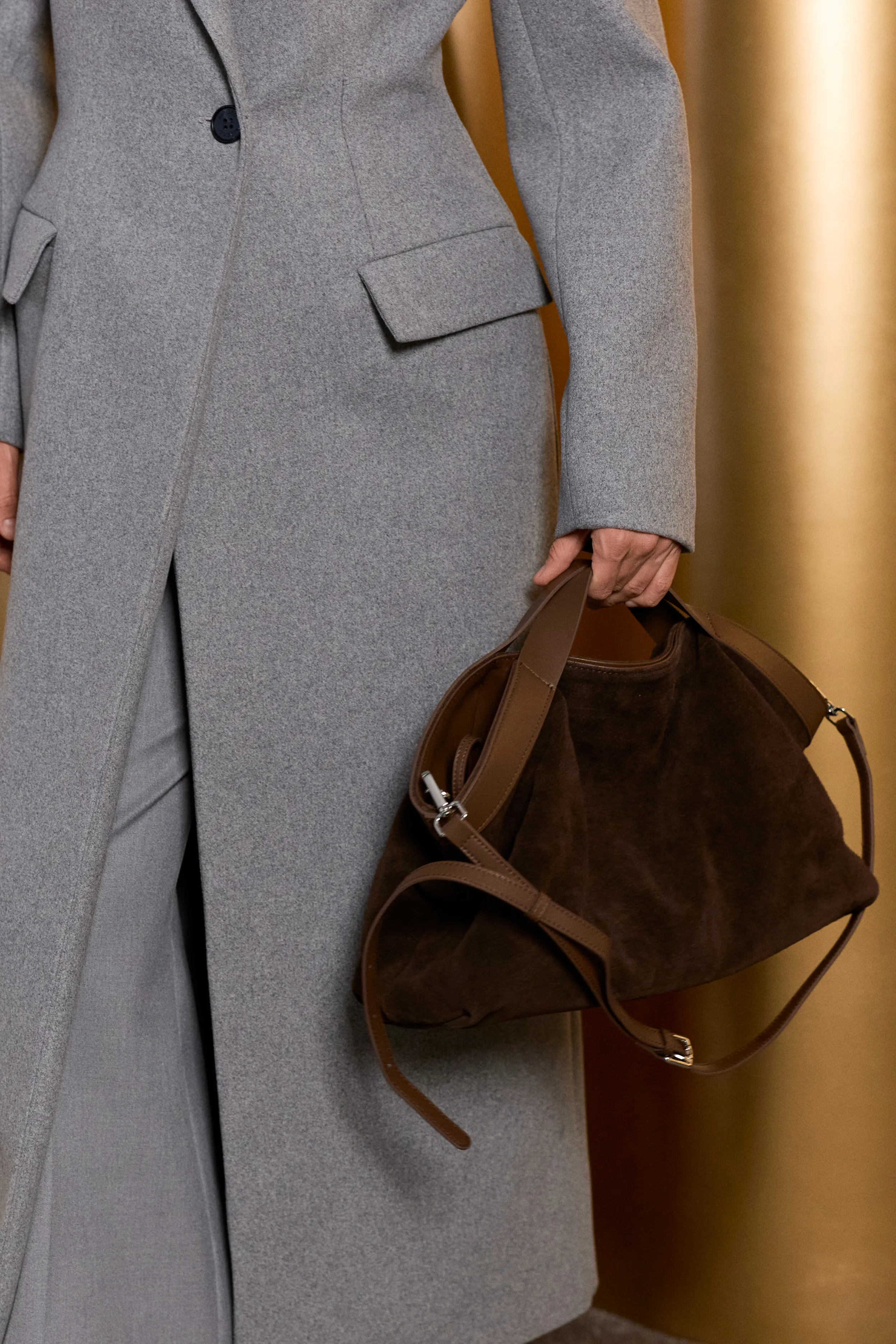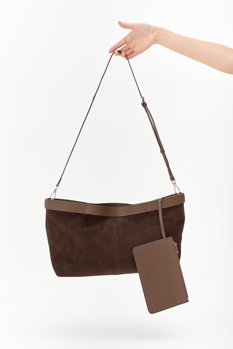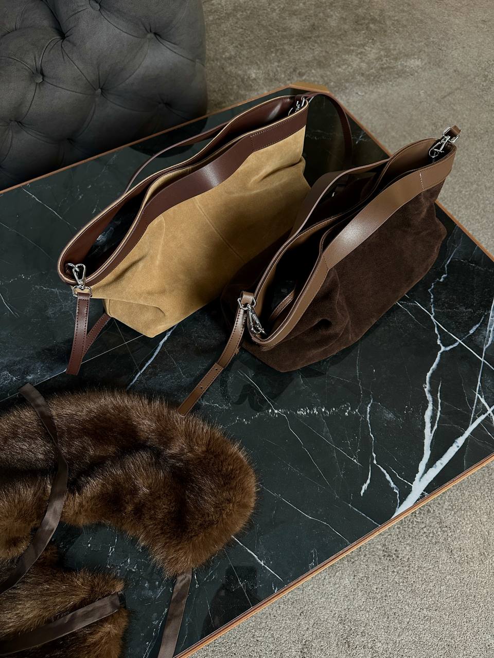 Идеальное сочетание роскоши и практичности. Эта сумка-тоут из мягкой замши станет ключевым аксессуаром в вашем гардеробе. Мягкая, бархатистая текстура и глубокий матовый цвет подчеркнут ваш изысканный вкус. Вместительный основной отдел и удобные ручки делают её не только стильной, но и невероятно функциональной спутницей на каждый день.