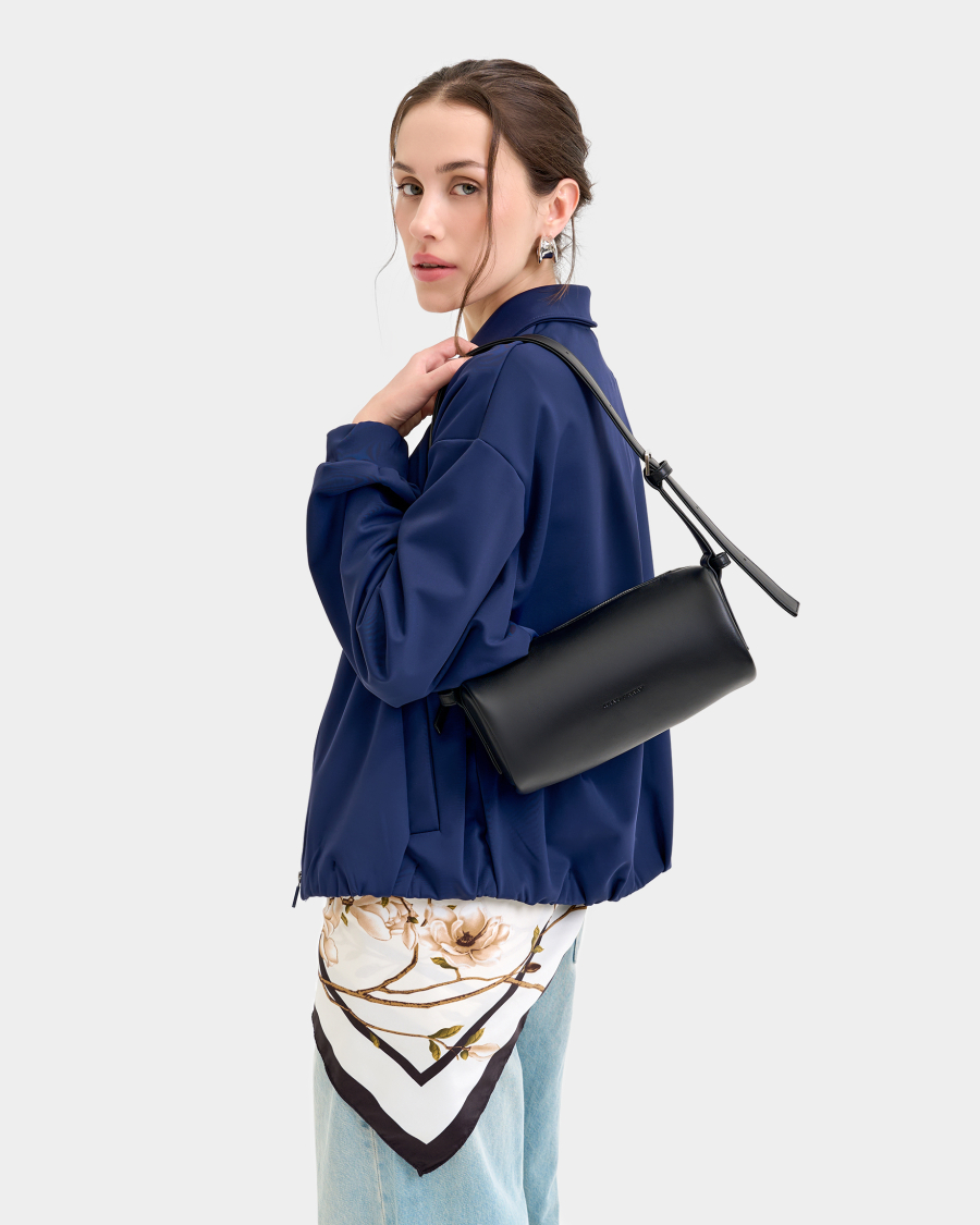Небольшая мягкая прямоугольная сумка из экокожи в черном цвете.