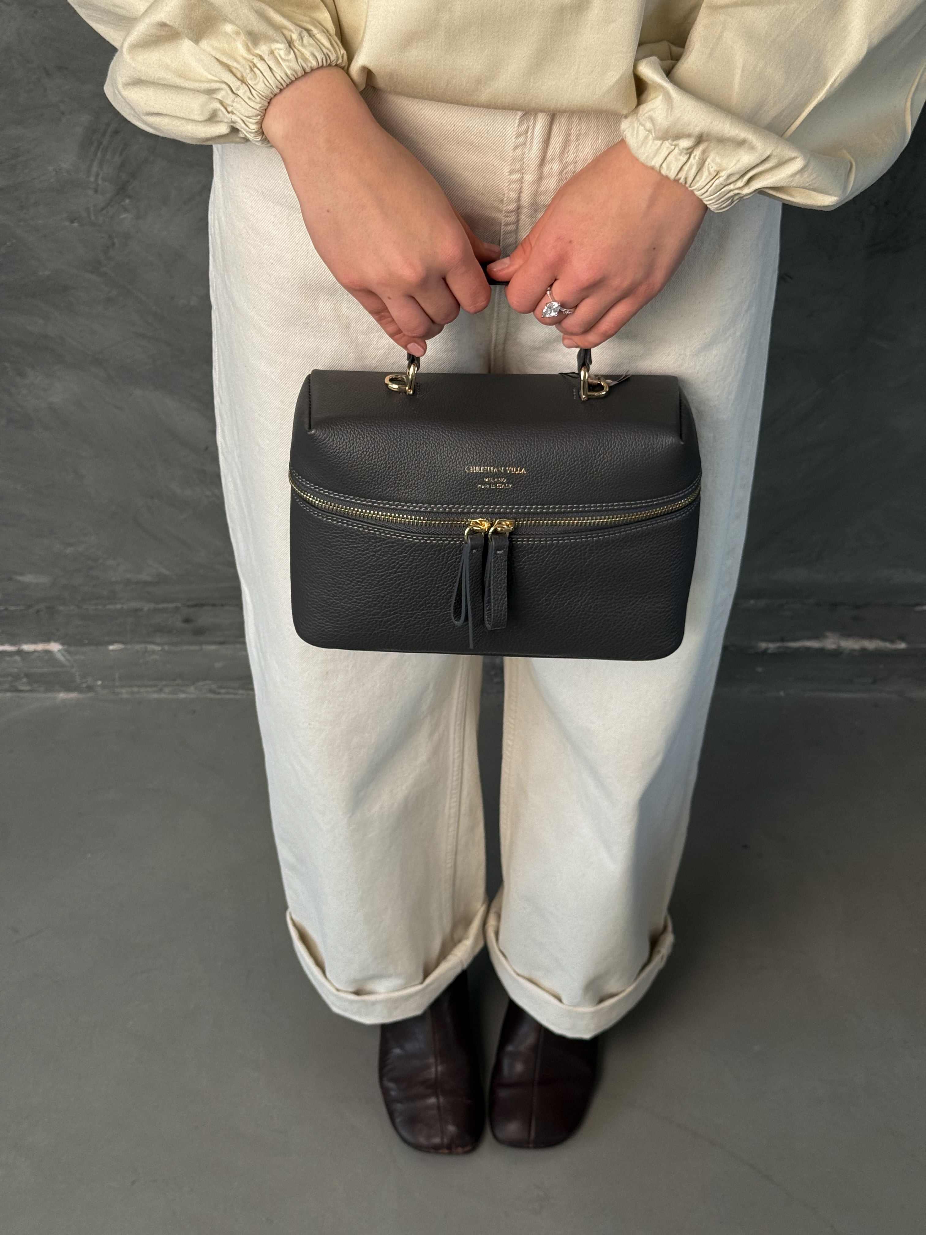 Популярная модель в формате мини сумки на одной ручке, выполнена из натуральной зернистой кожи.