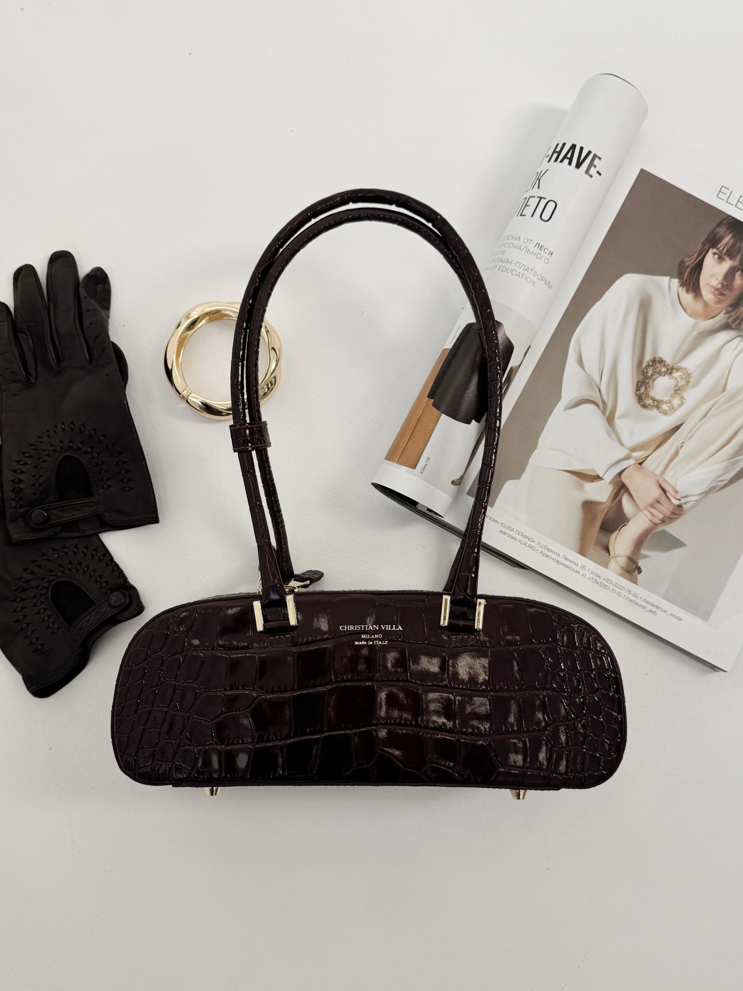 Сумка самой актуальной формы, выполнена из натуральной кожи, со структурой под "крокодила".