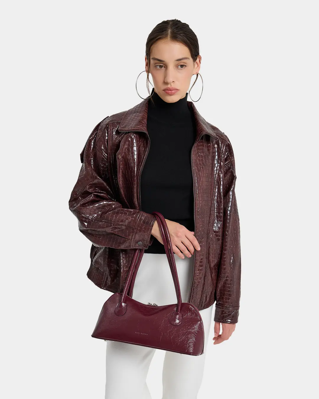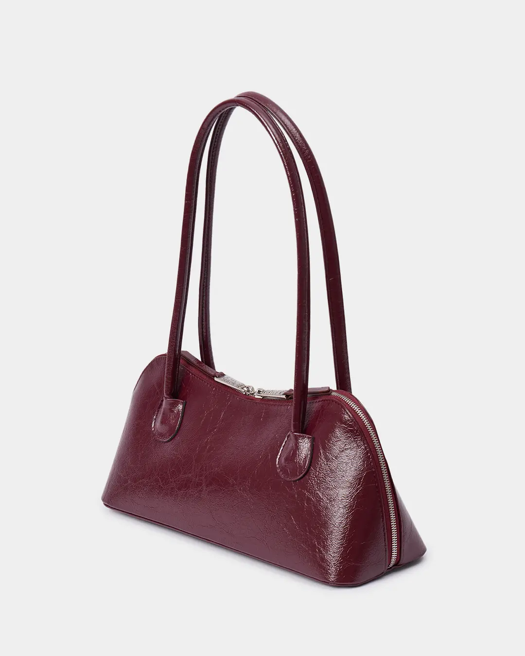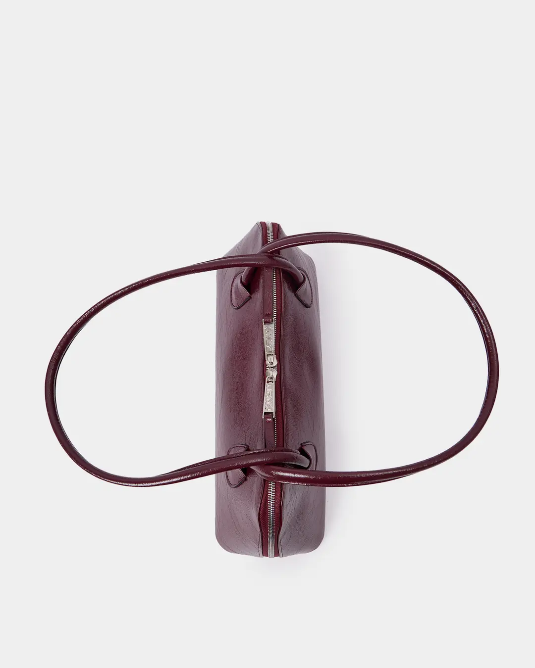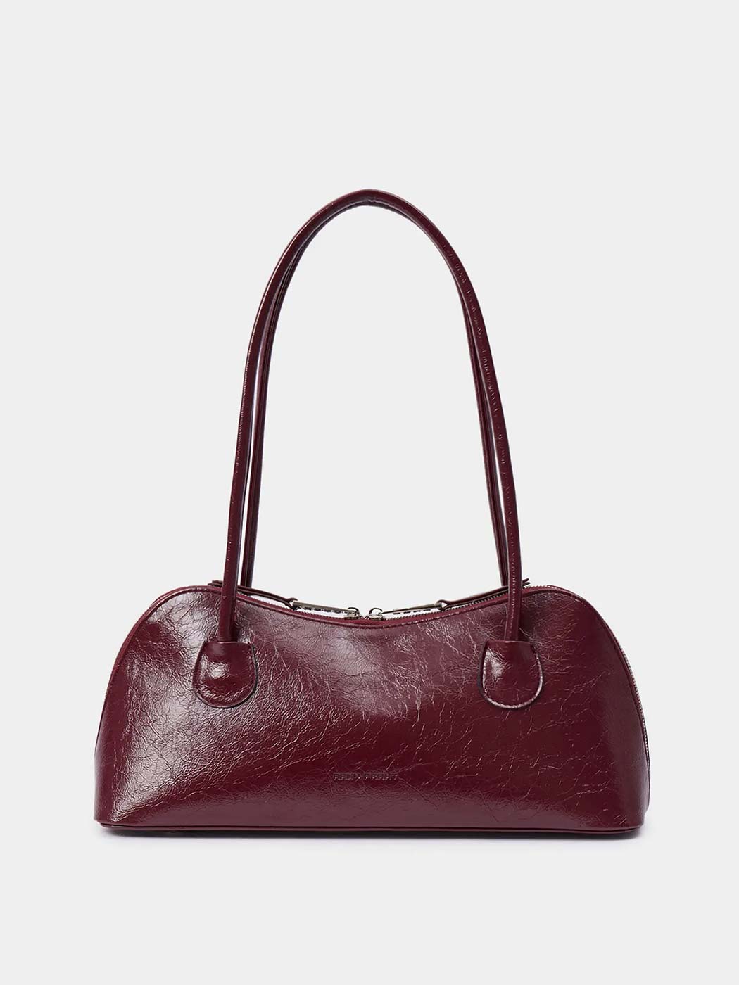 Каркасная сумка-такса с фиксированными ручками бордового цвета.