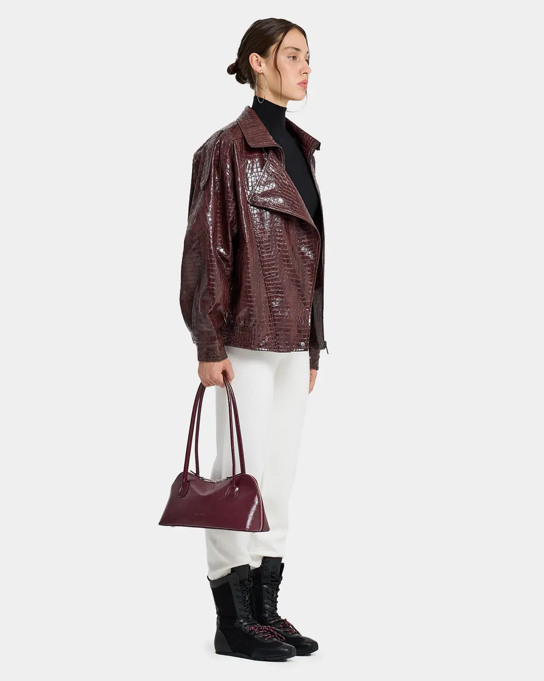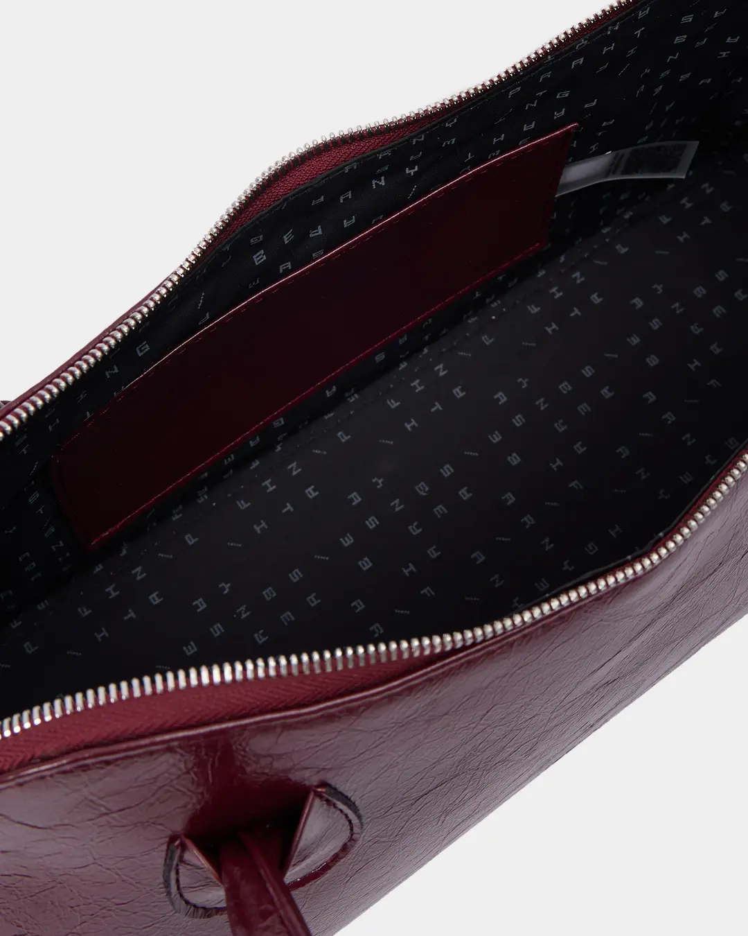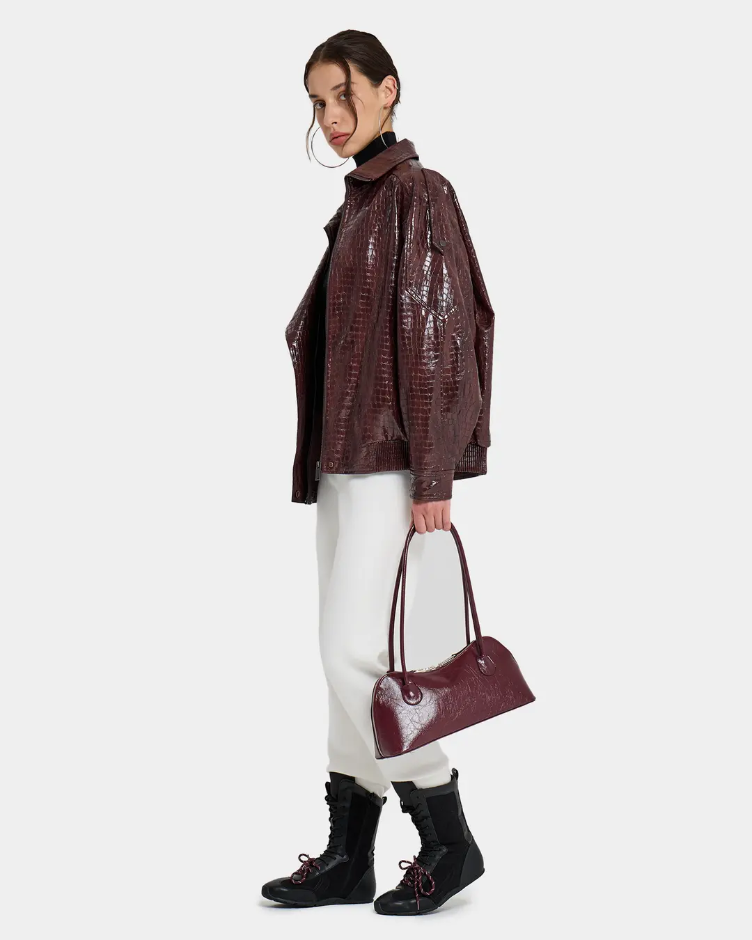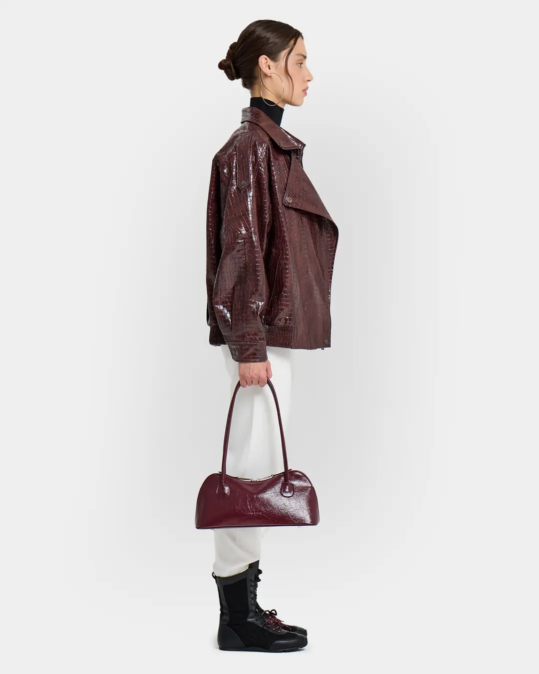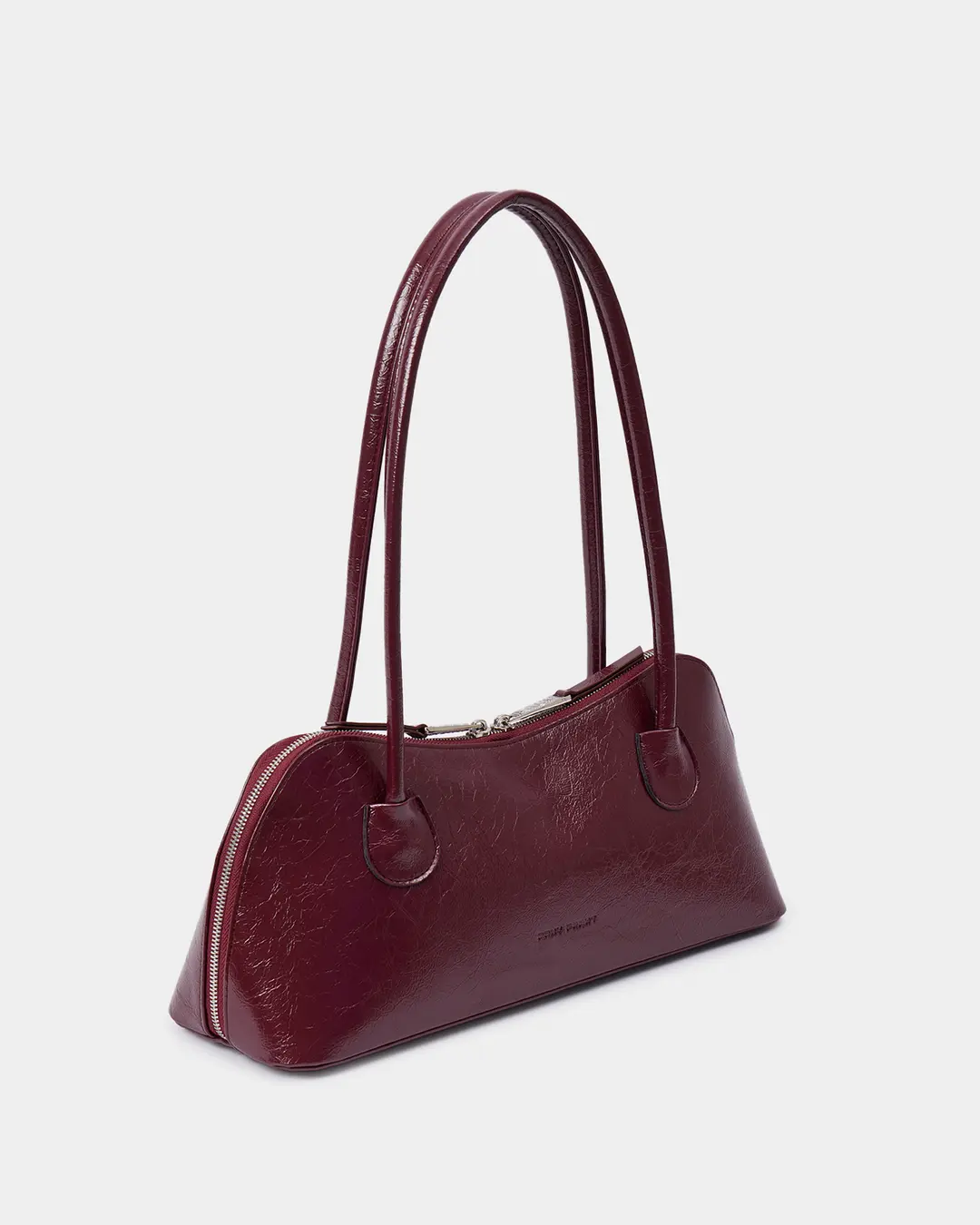 Каркасная сумка-такса с фиксированными ручками бордового цвета.