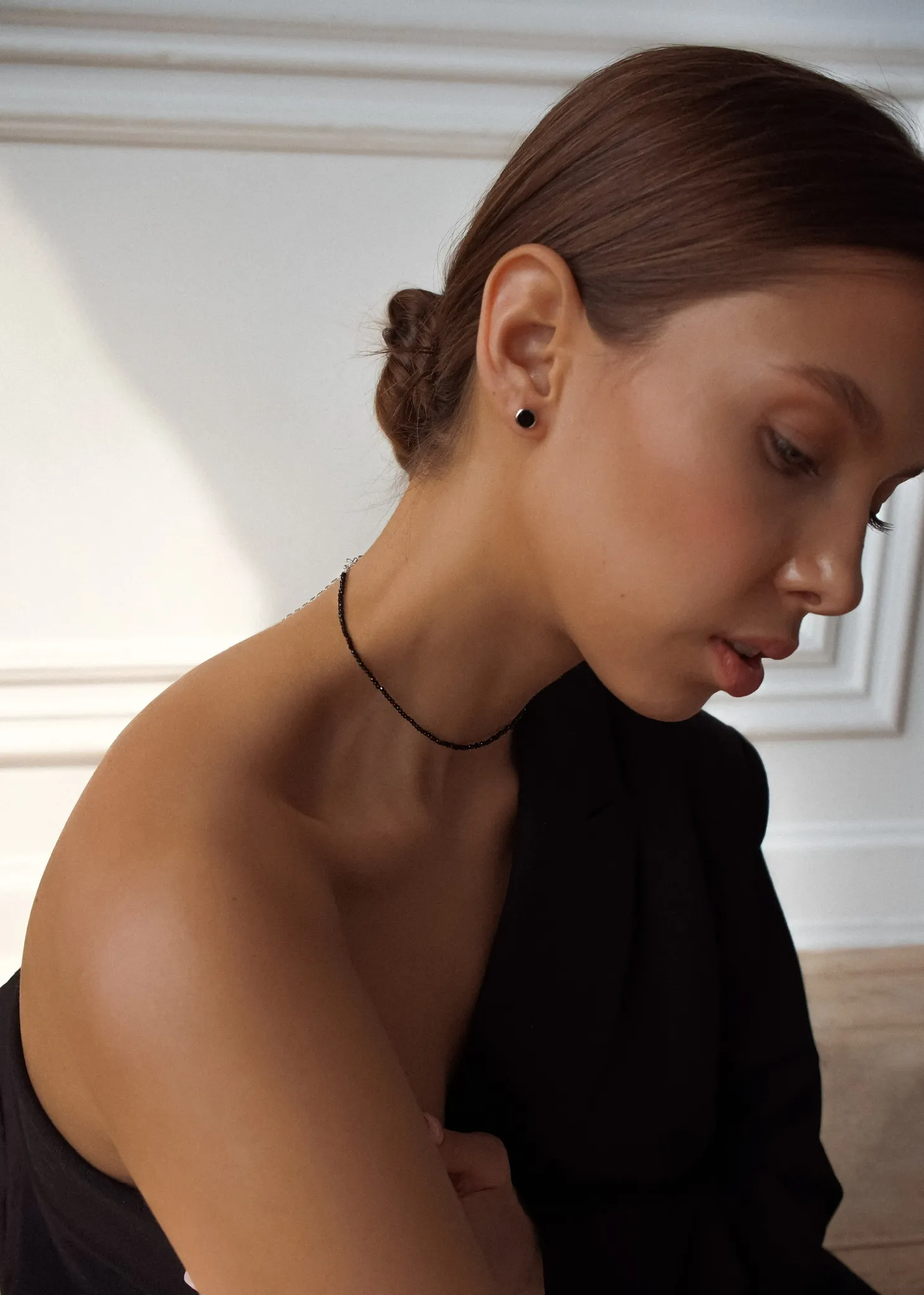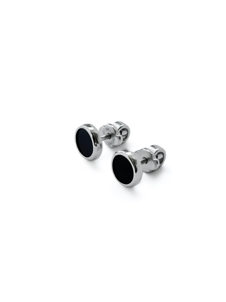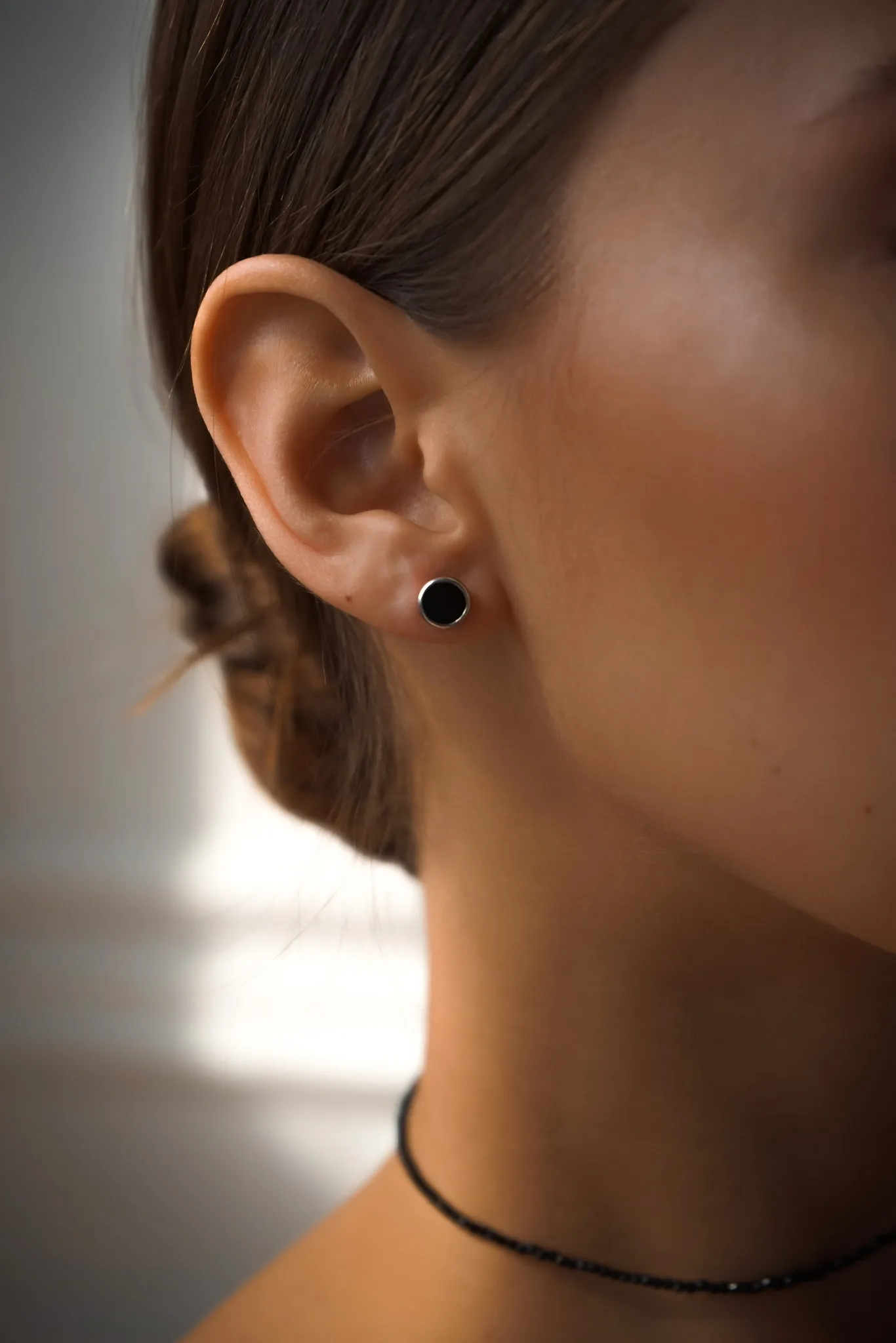 Серебряные серьги-пусеты мини "Black" с черным агатом
