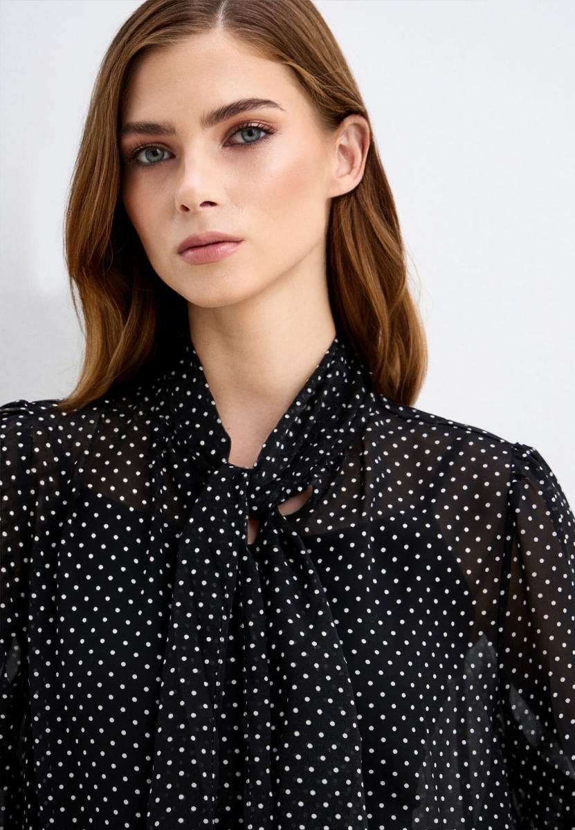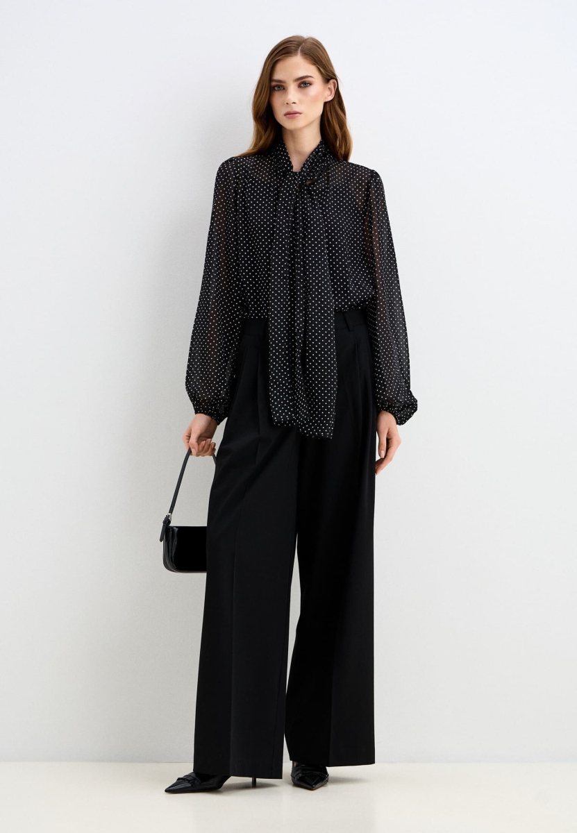 Воздушная ткань, свободный крой и акцентный бант. Блузка, которая одинаково уместна в офисе и на вечернем выходе.