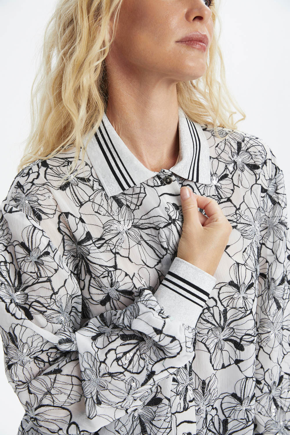 Блуза с цветочным принтом белого цвета — это идеальный выбор для создания лёгкого и романтичного образа. Свободный крой обеспечивает комфорт, а нежный цветочный принт добавляет изящества. Эта блуза станет отличным элементом вашего гардероба для повседневной носки или для встреч с друзьями.