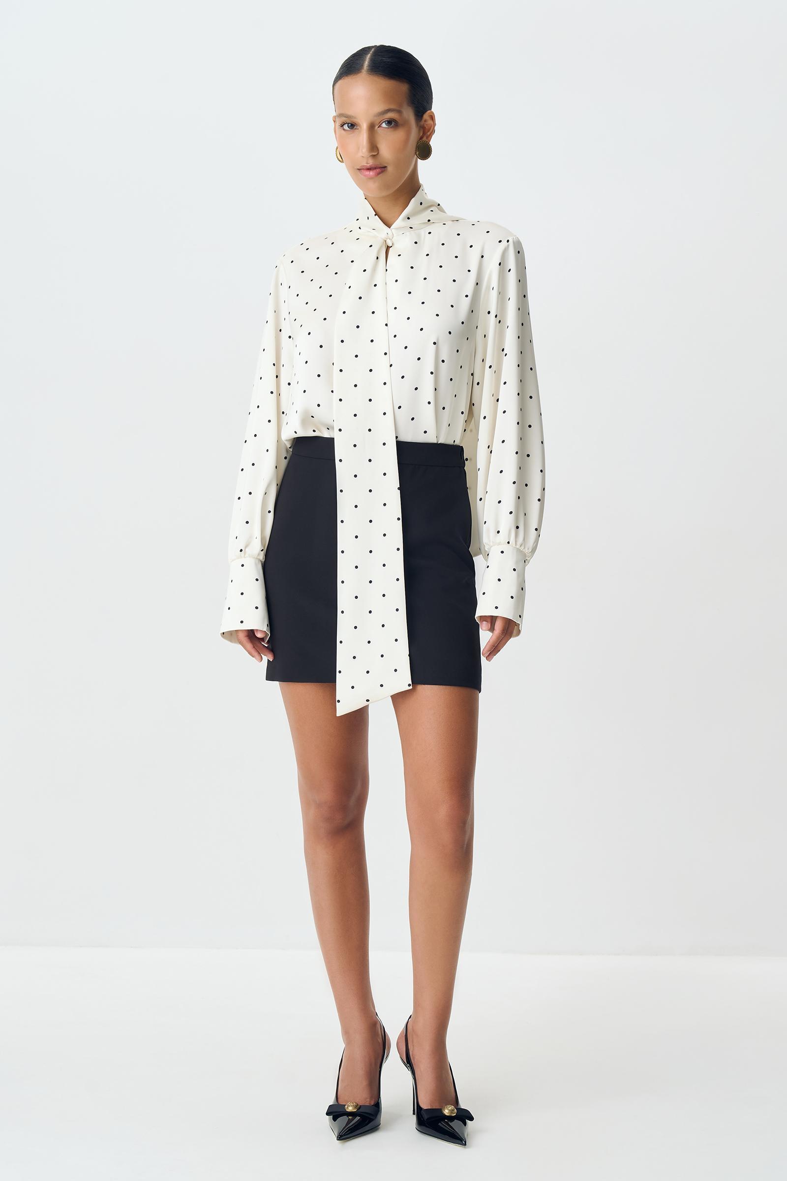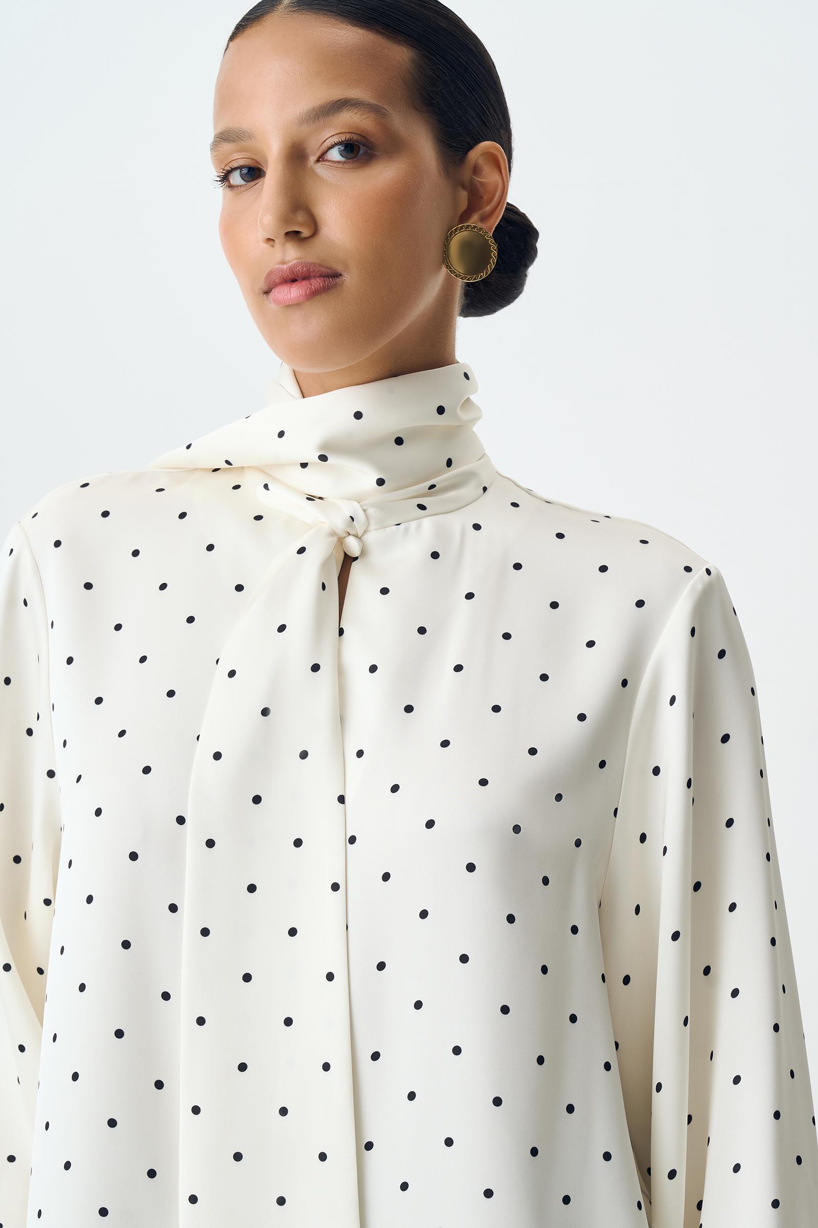 Блузка с бантом из сатина в горох