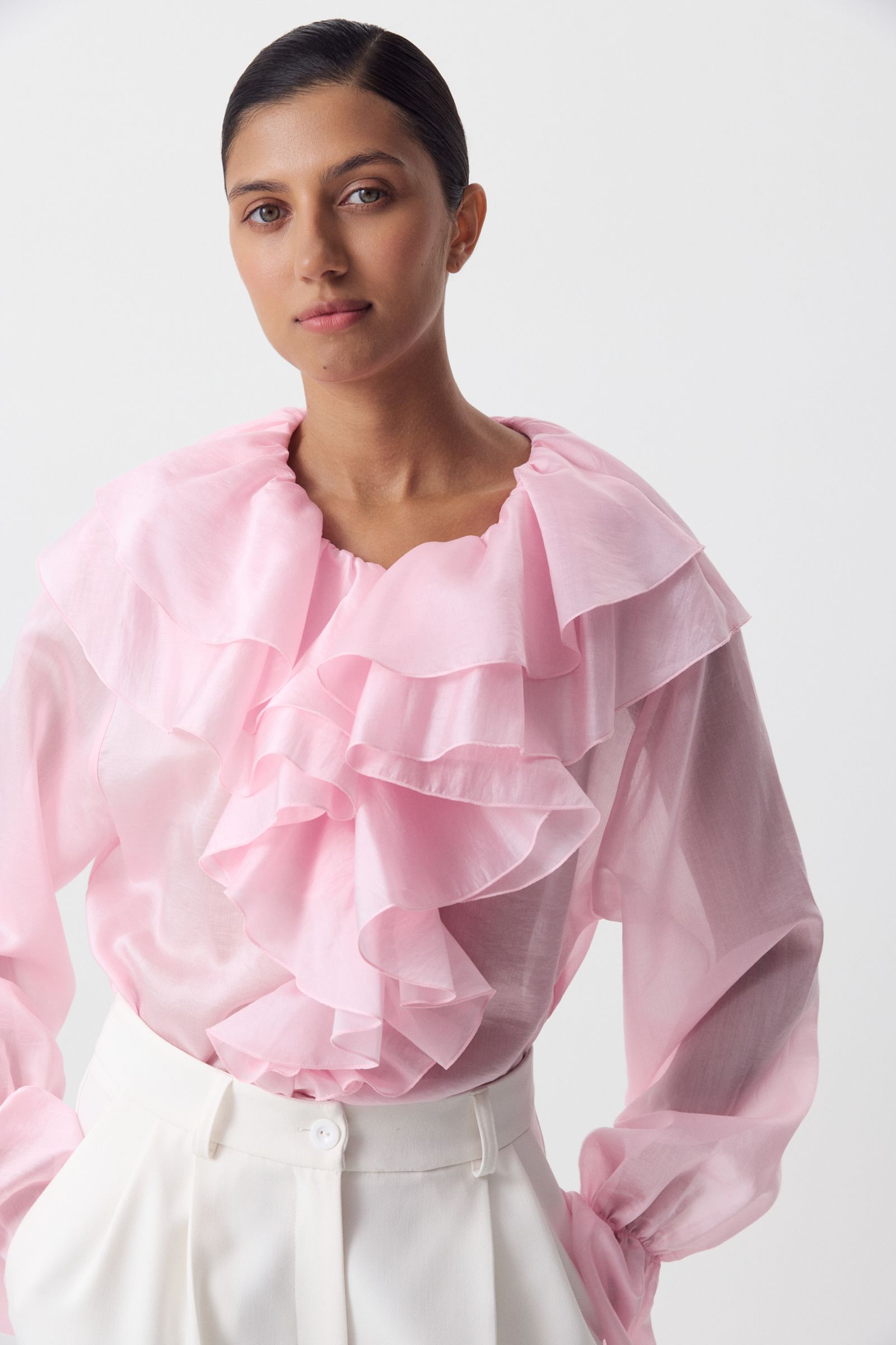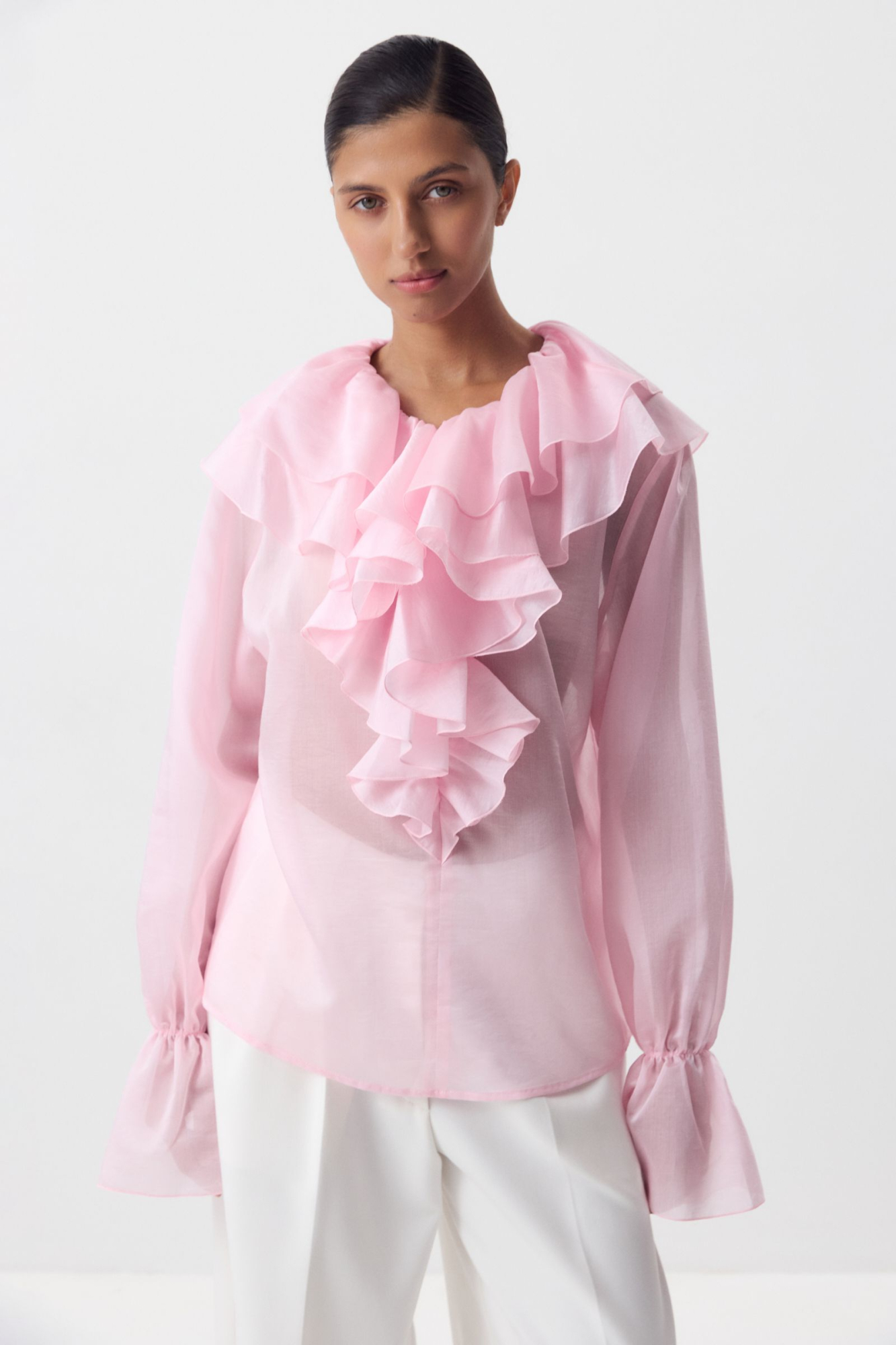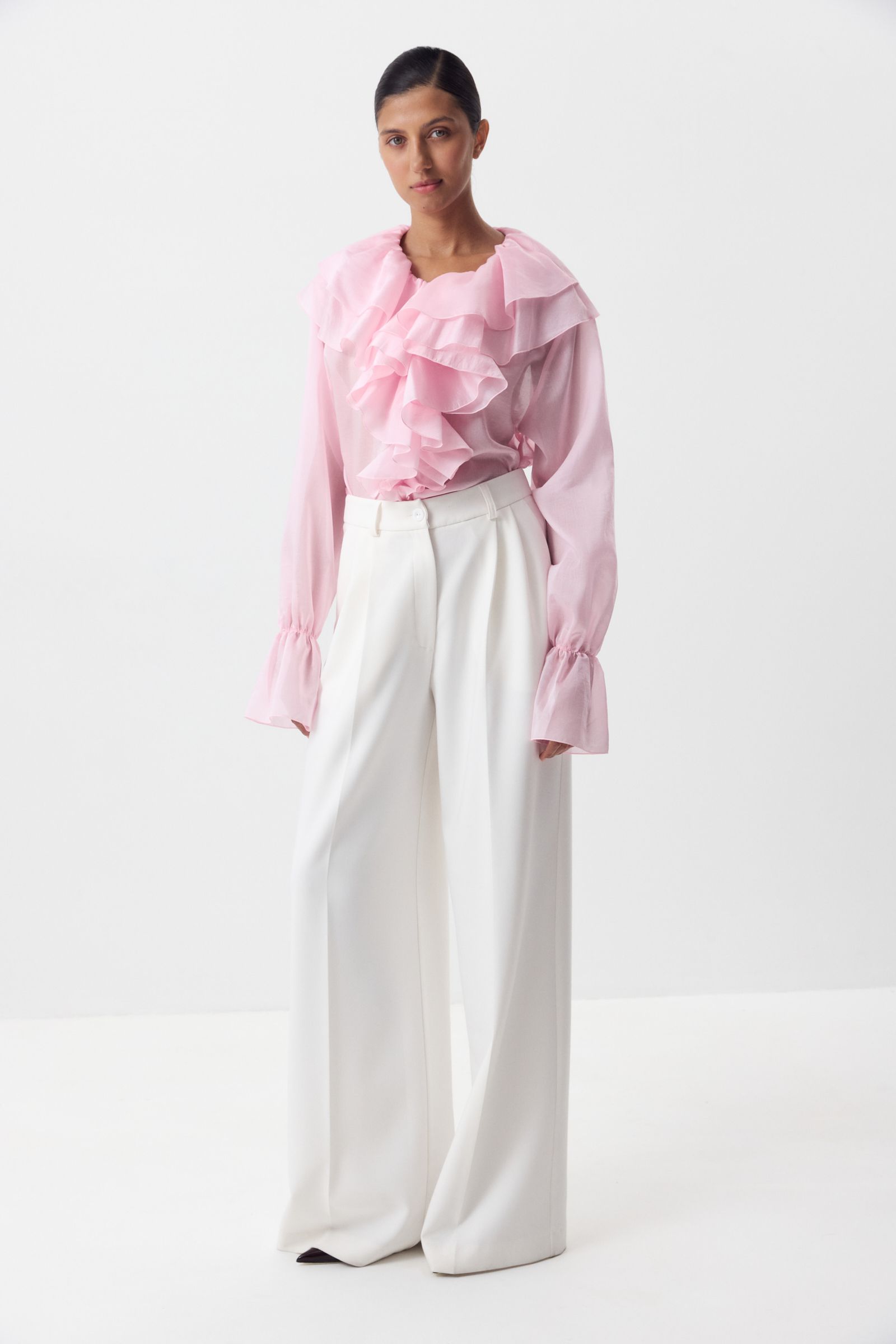 Носите с классическими брюками и юбками длины миди. Добавьте необычного настроения в повседневный образ с джинсами выбрав в качестве верха эту блузу.