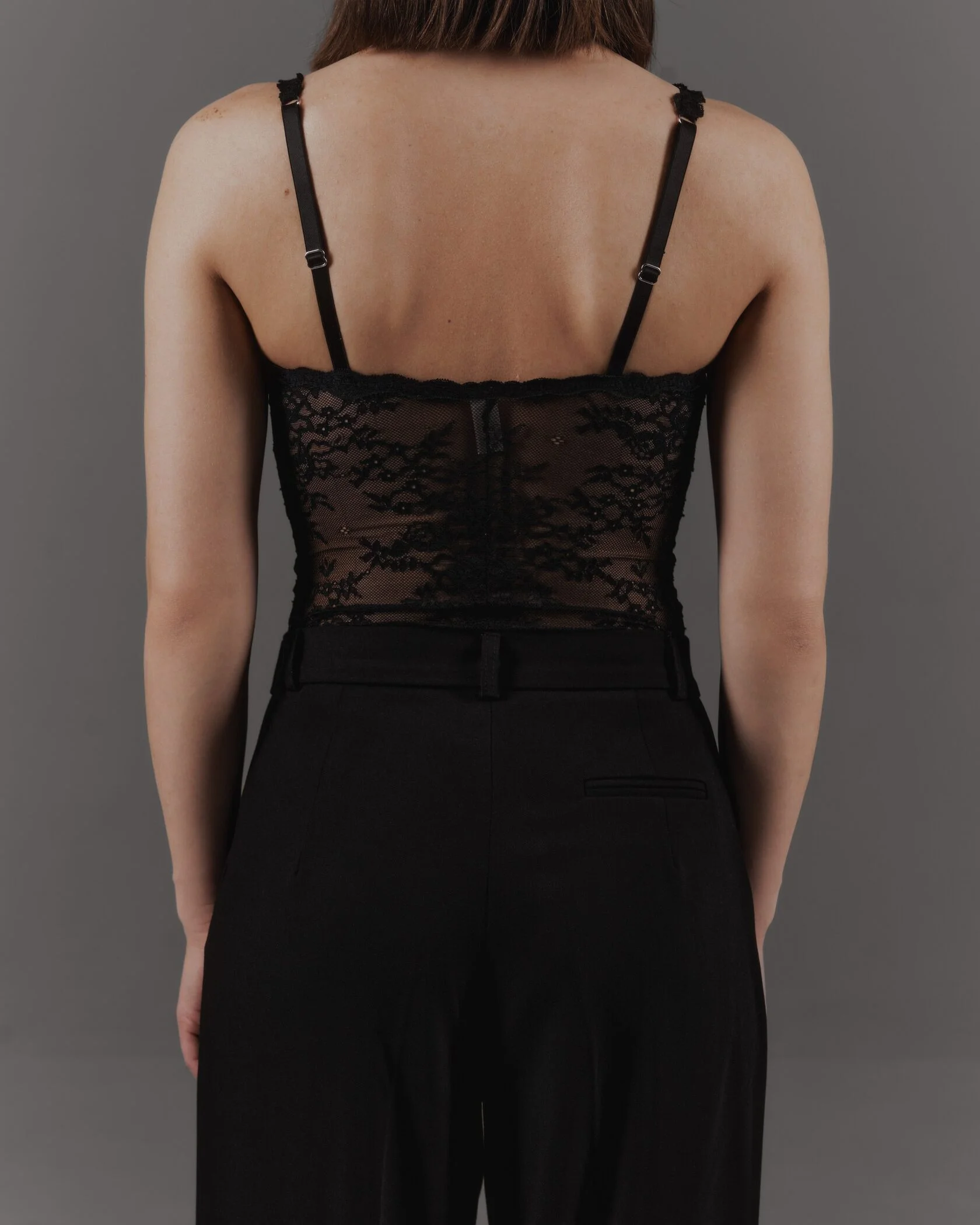 Элегантное кружевное боди черного цвета, идеально подчеркивающее фигуру. Изготовлено из мягкого и приятного к телу материала, обеспечивающего комфорт в носке. Идеально подходит для создания стильных образов как в повседневной жизни, так и для особых случаев. Отлично сочетается с юбками, брюками и шортами. Добавьте нотку сексуальности и утонченности в ваш гардероб!