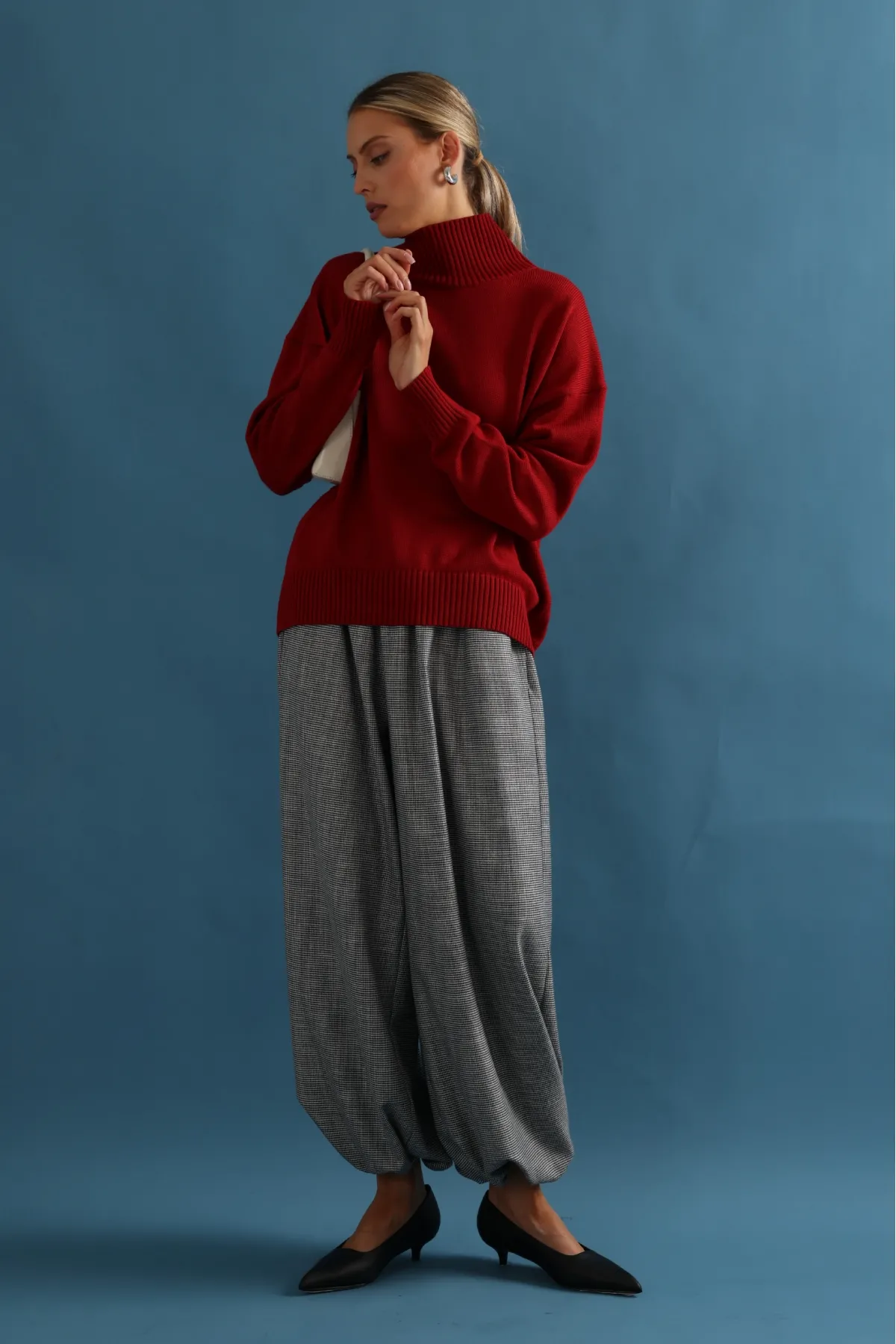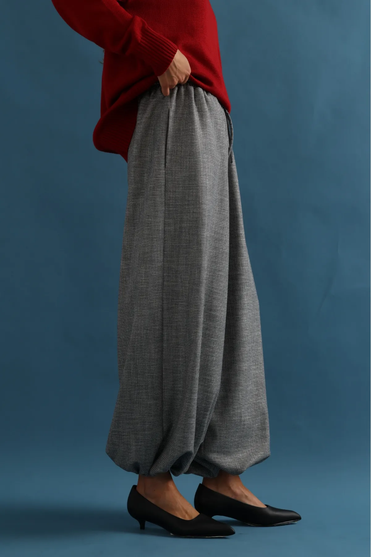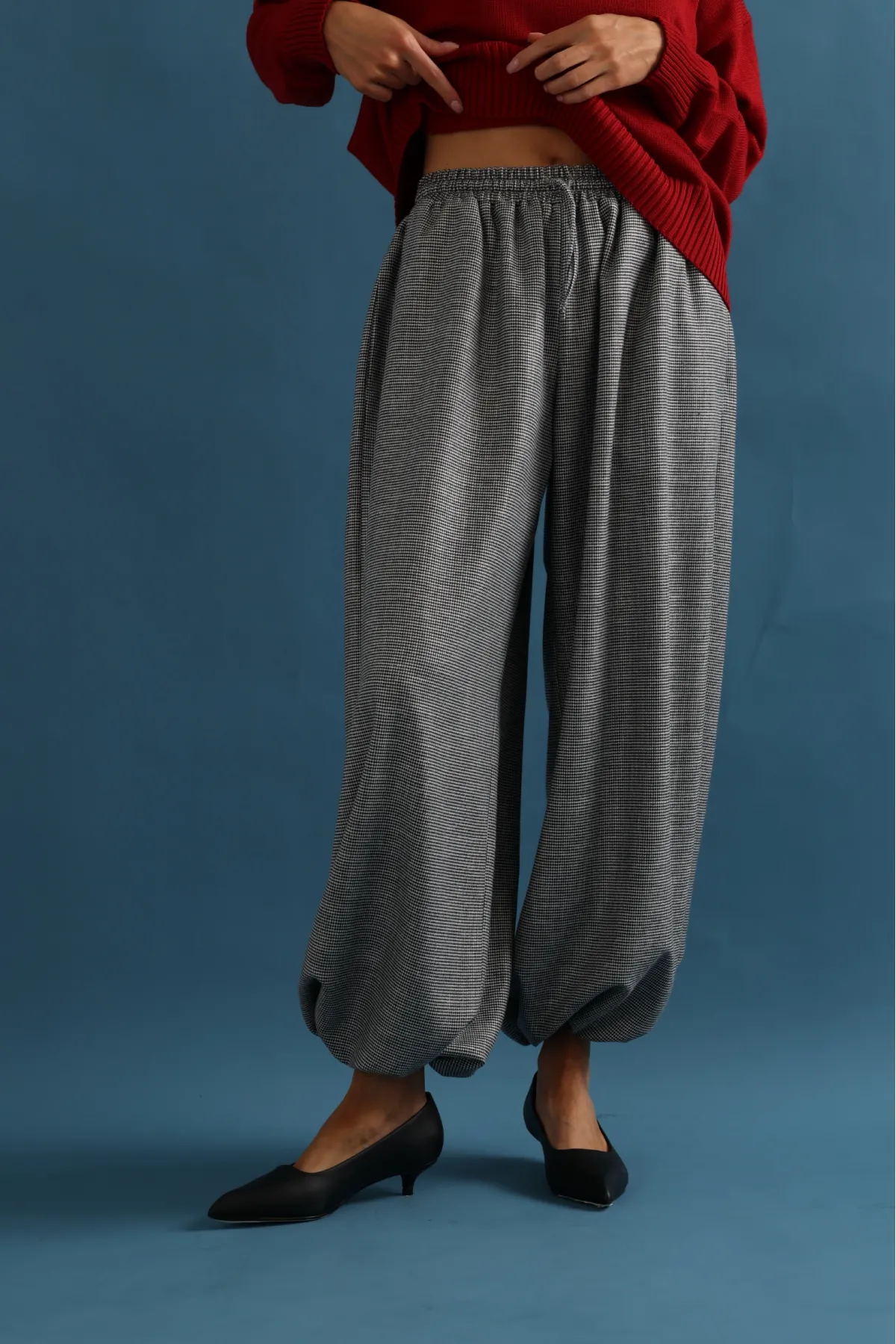 Ультра-широкий, расслабленный силуэт с мягкой эластичной талией и резинками по низу штанин, который превращает каждое движение в лёгкий, почти театральный взмах. Лёгкая, но прочная ткань не требует сложного ухода.