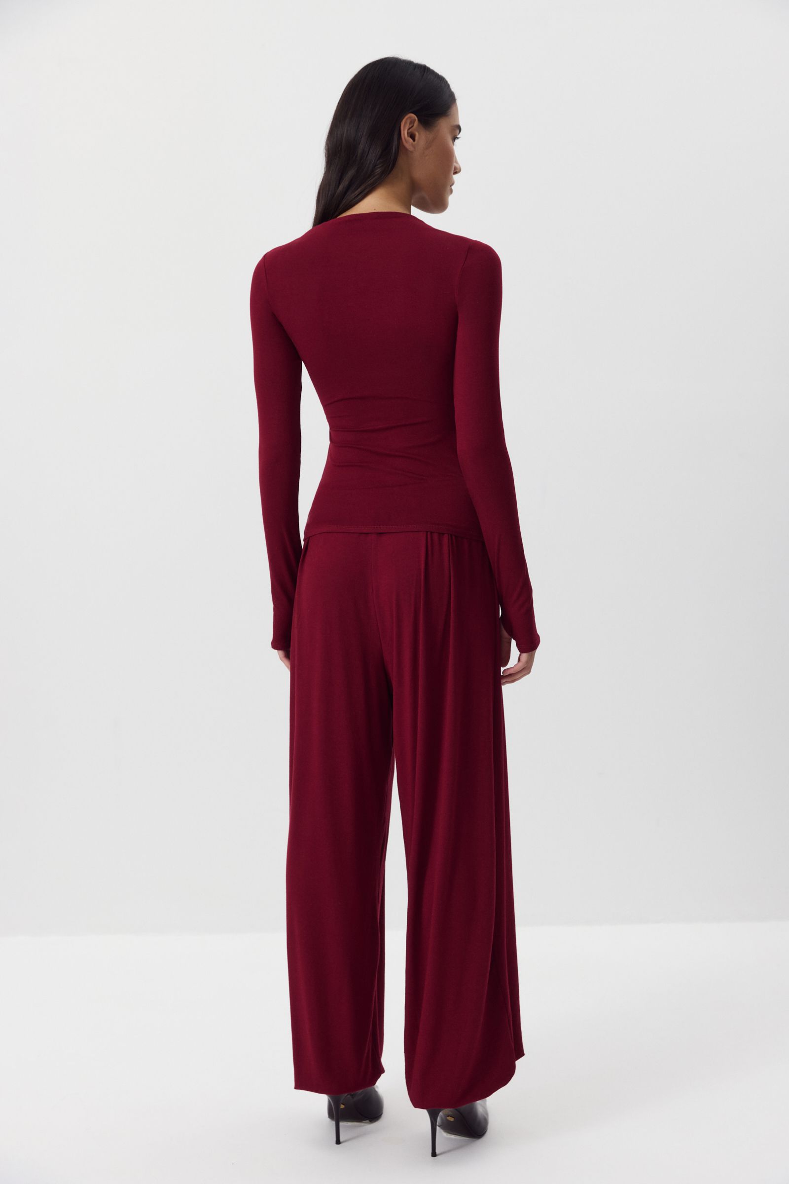 Сочетайте с топом- халтер из такого же материала.Носите брюки в комплекте с лонгсливом как костюм или как самостоятельную модель со спортивными толстовками. Трикотажные брюки отлично сочетаются с пуховиками или пальто, такая универсальная комбинация один из самых комфортных луков сезона.