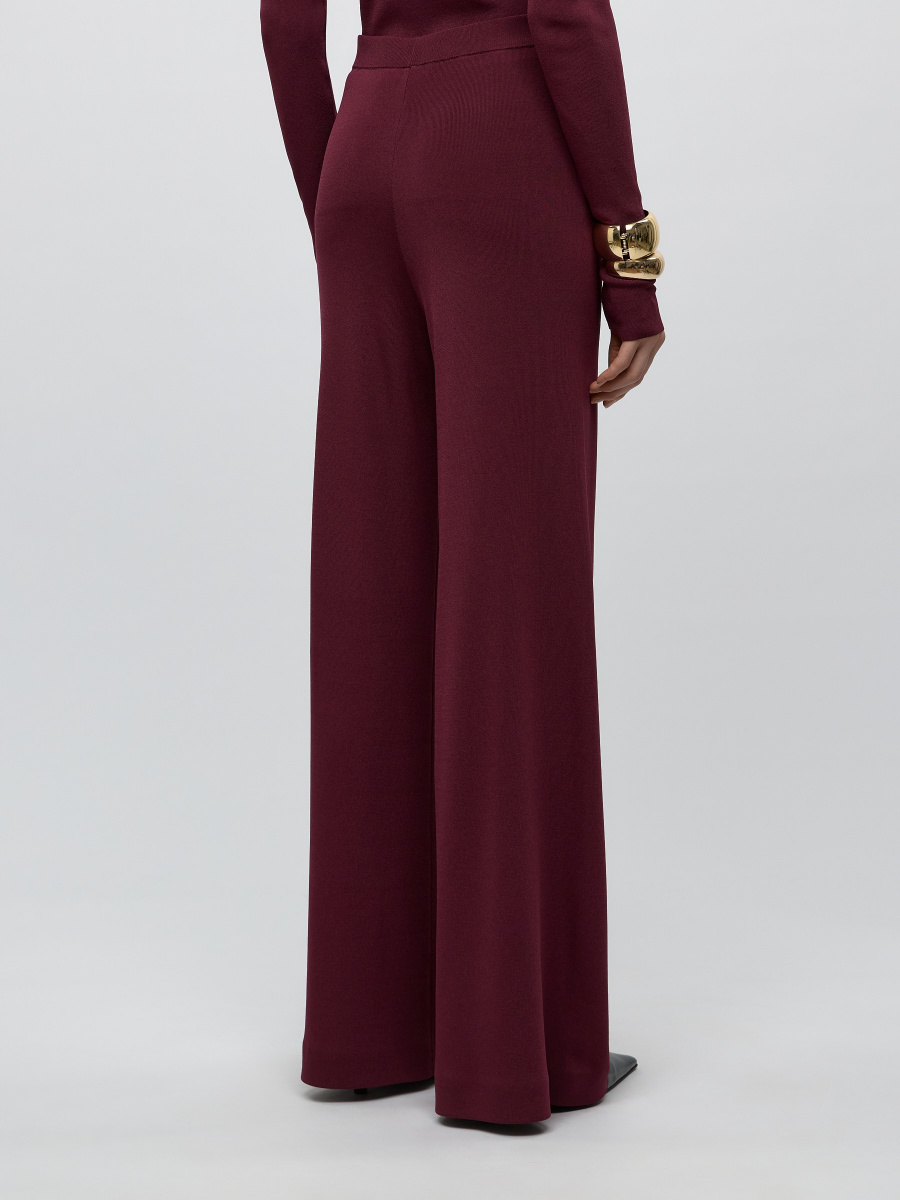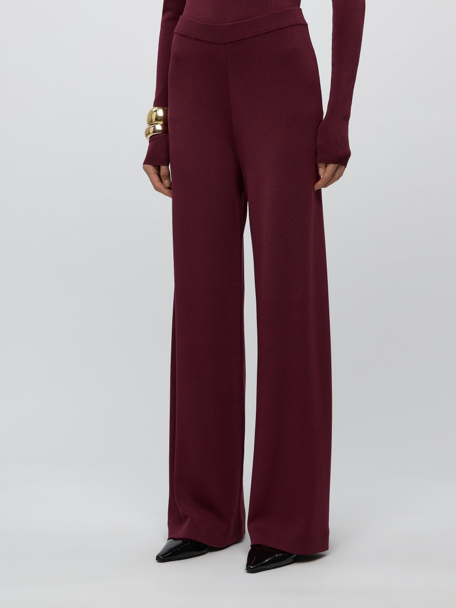 Прямые свободные брюки можно стилизовать в рамках как повседневных, так и торжественных комплектов. Архитектура на высокой посадке, без внешних швов на брючинах — для создания цельного образа с акцентом на вертикальные линии. Для модели подобрано “сухое” вискозное полотно, которое чуть тянется, мягко прикасаясь к телу.