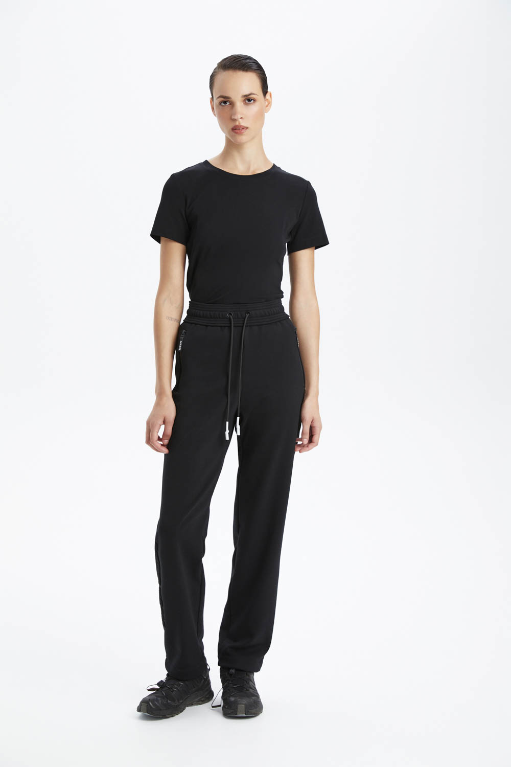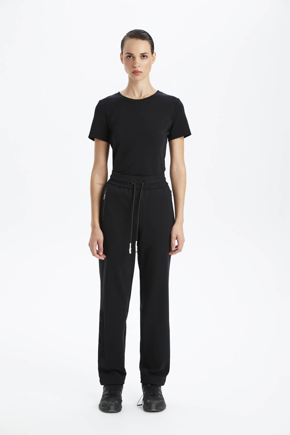 Удобные брюки в спортивном стиле чёрного цвета — отличный выбор для активного образа жизни. Прямой крой и эластичная резинка обеспечивают свободу движений и комфорт.