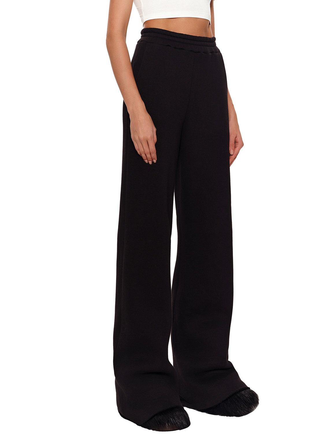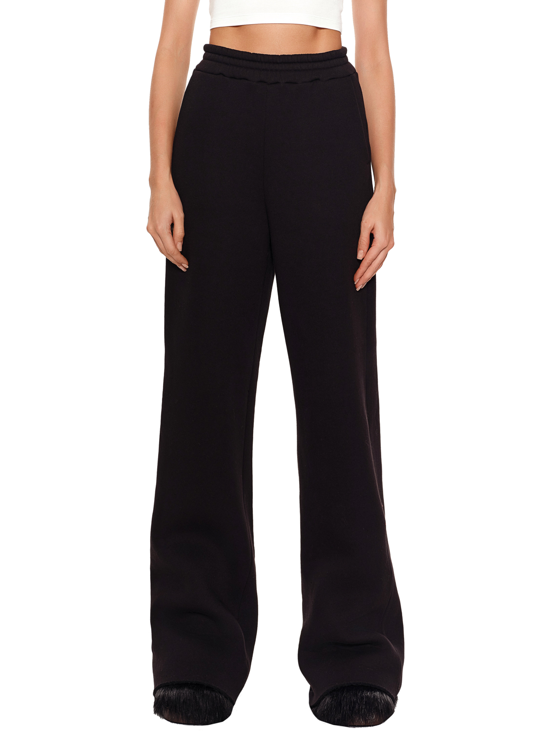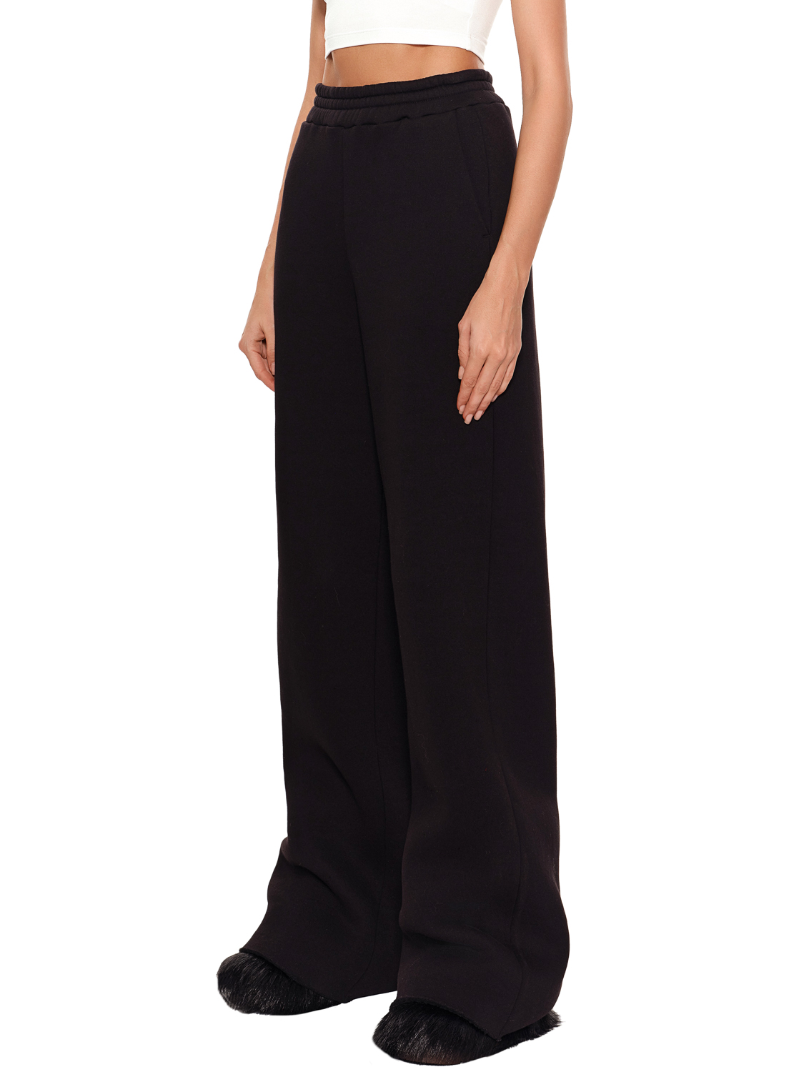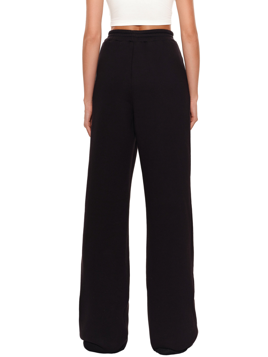 Брюки на флисовом подкладе гармонично сочетают в себе повседневный и спортивный стили. Высокая талия, макси-длина и широкий кант от бедра создают эффектный силуэт. Брюки изготовлены из высококачественной ткани с гладкой лицевой поверхностью и мягкой бархатистой внутренней частью, что обеспечивает воздухопроницаемость, тепло и комфорт. Эти брюки свободного кроя станут отличным дополнением к любому образу в уличном стиле, идеально подходящему для прогулок, шопинга, путешествий и длительных поездок, особенно в сочетании с толстовкой oversize в тон.