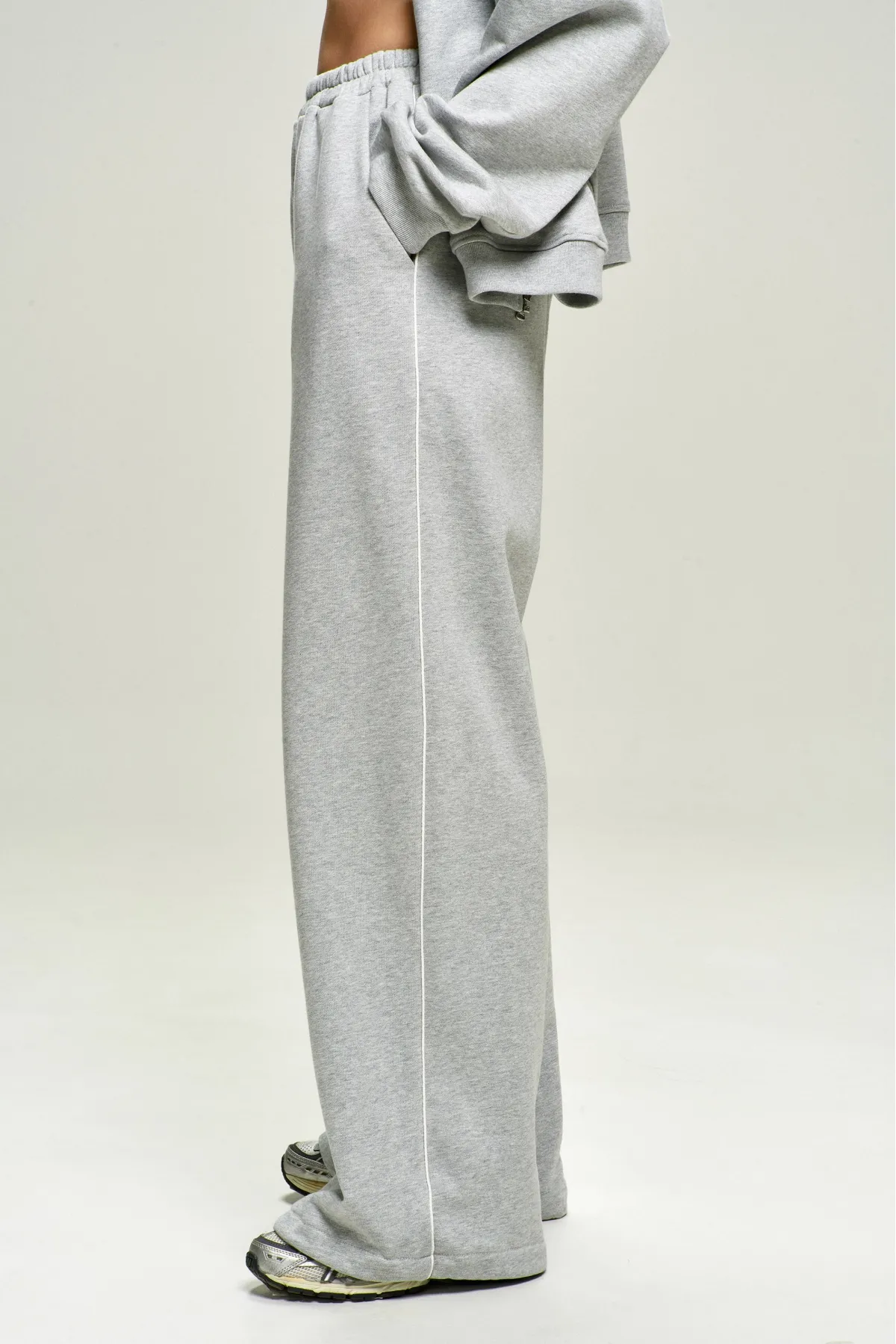 Широкие, комфортные брюки из мягкого футера с белым кантом в боковом шве, сшиты по лекалам нашего ретро‑костюма Olympus. По низу мы добавили кулиску: оставьте палаццо или стяните, чтобы получить удобные джоггеры. Внутренние карманы выполнены из кулирки, чтобы не добавлять лишнего объёма там, где он не нужен.