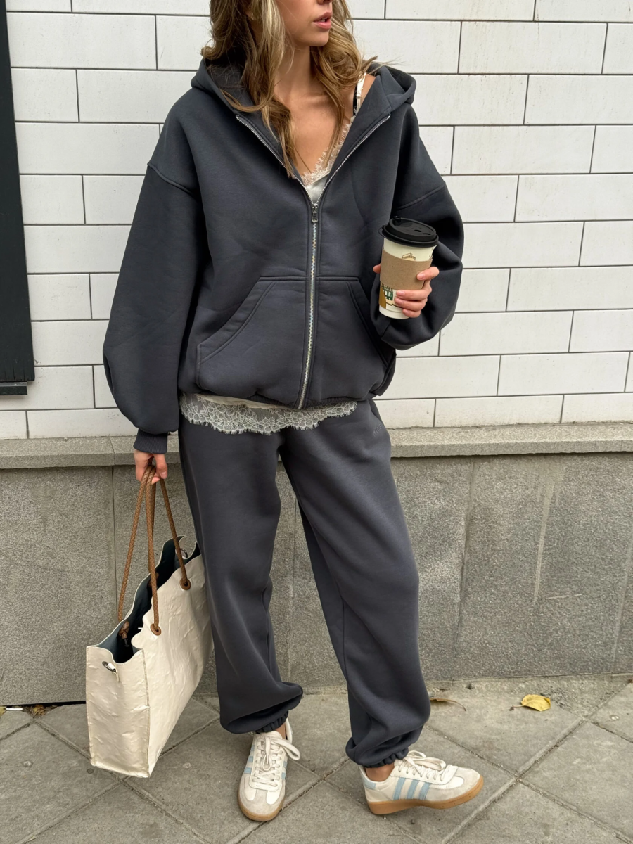 Джоггеры из мягкого футера с начесом, теплые и универсальные. Идеальную посадку обеспечивает эластичная резинка на талии и свободный, универсальный крой.