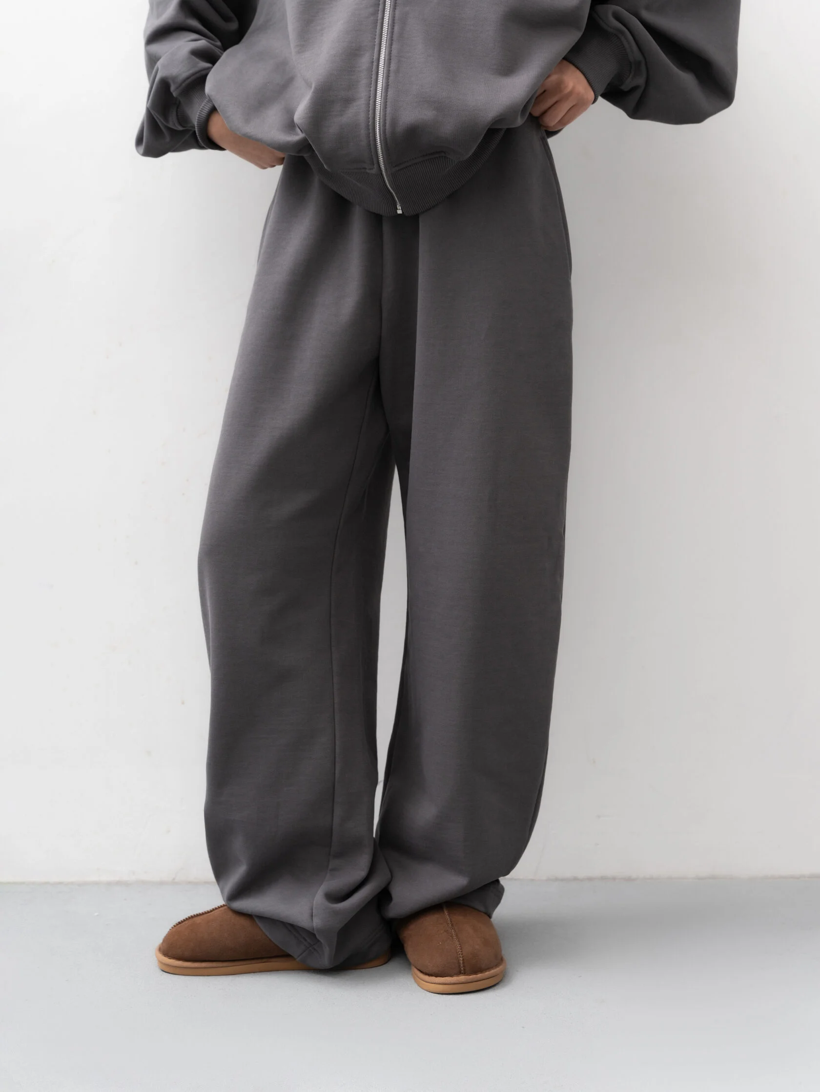 Графитовые спортивные брюки из плотного хлопка станут комфортной и стильной базой для зимнего гардероба. Фасон позволяет сочетать их с самыми разными вариантами верха – от простой футболки до свитшота. Брюки легко миксуются с зип-худи Trés Sport в спортивном тотал-луке, но не менее эффектно смотрятся и отдельно – с трикотажем, пальто или пуховиком.