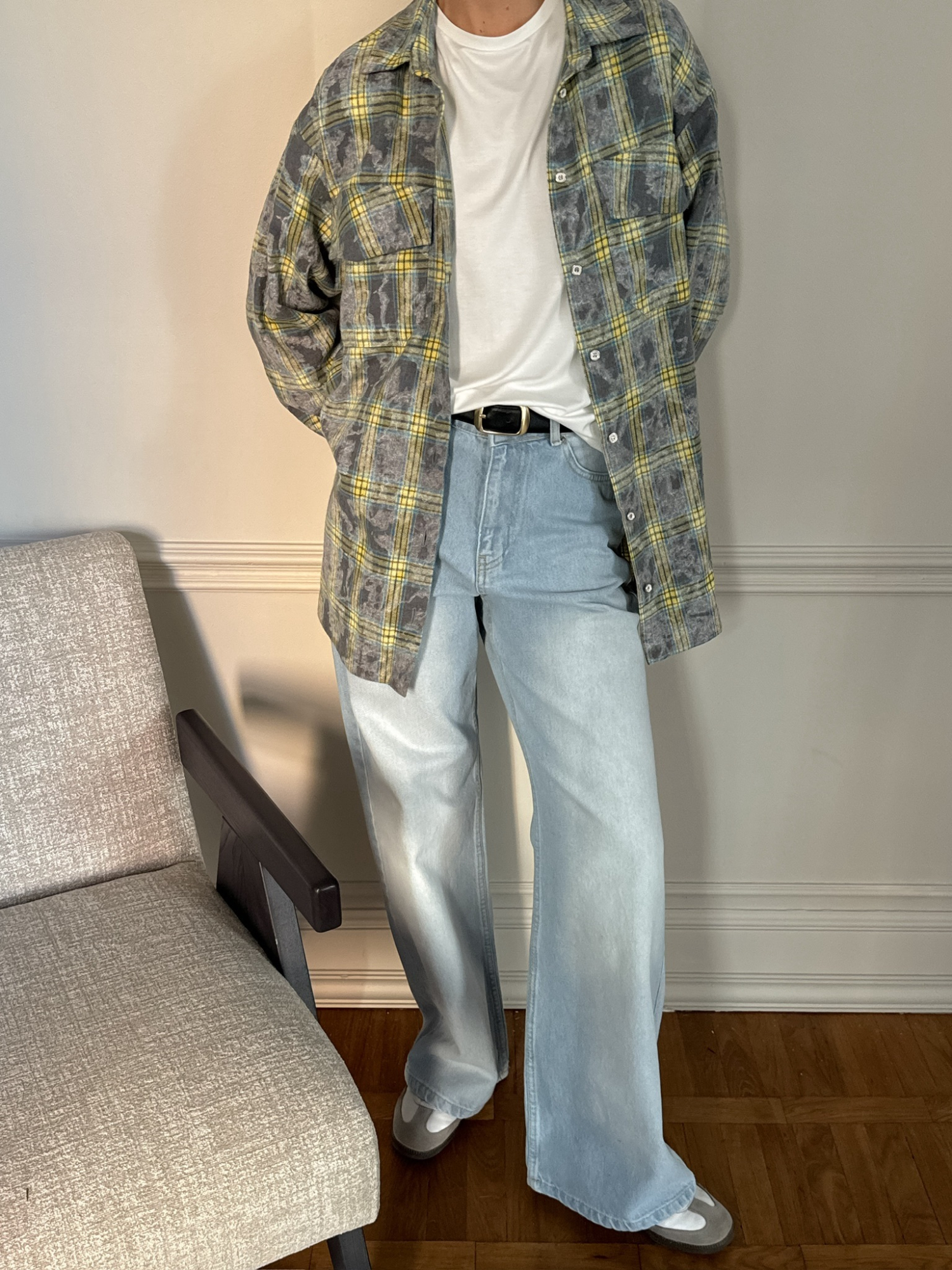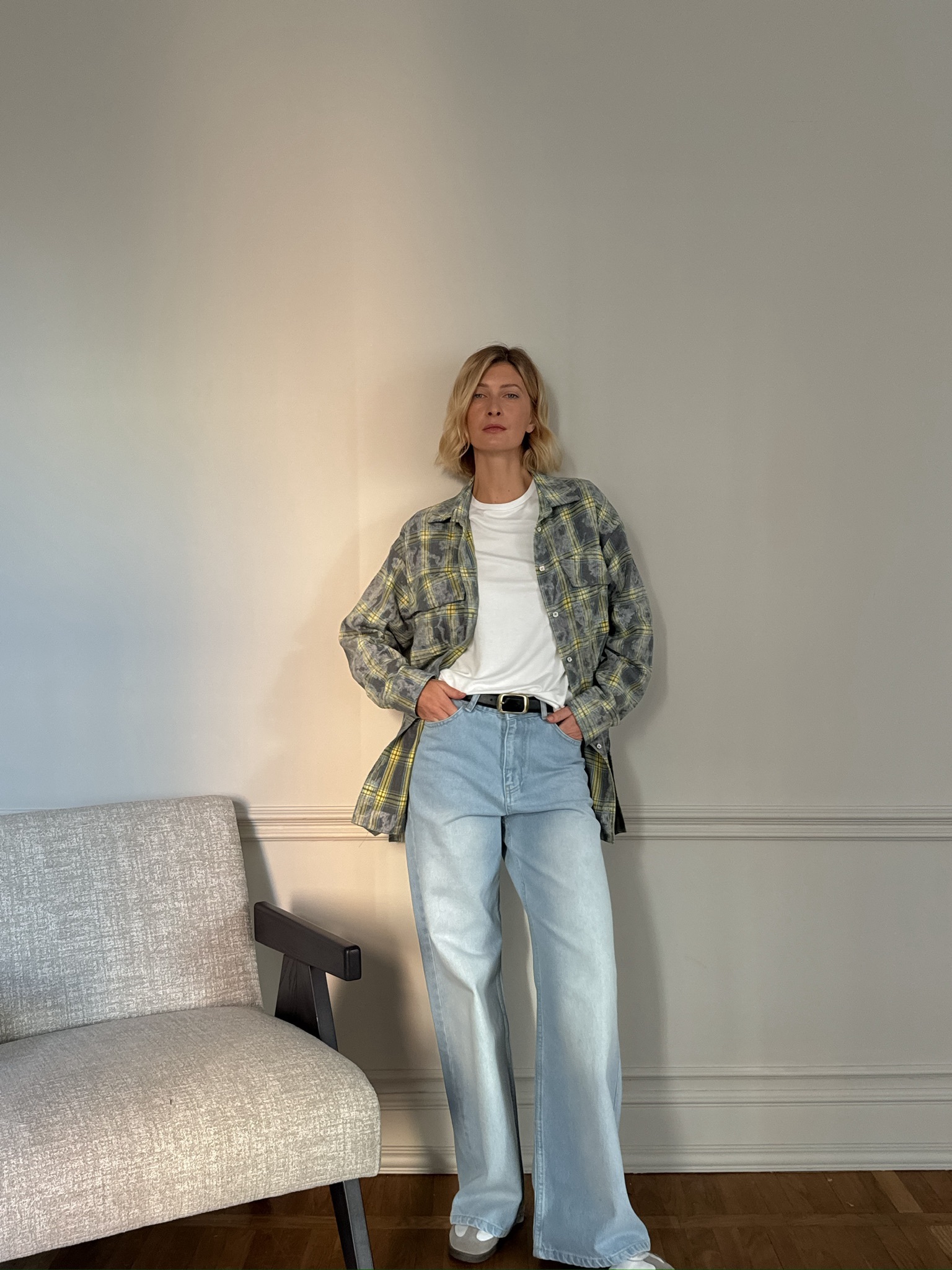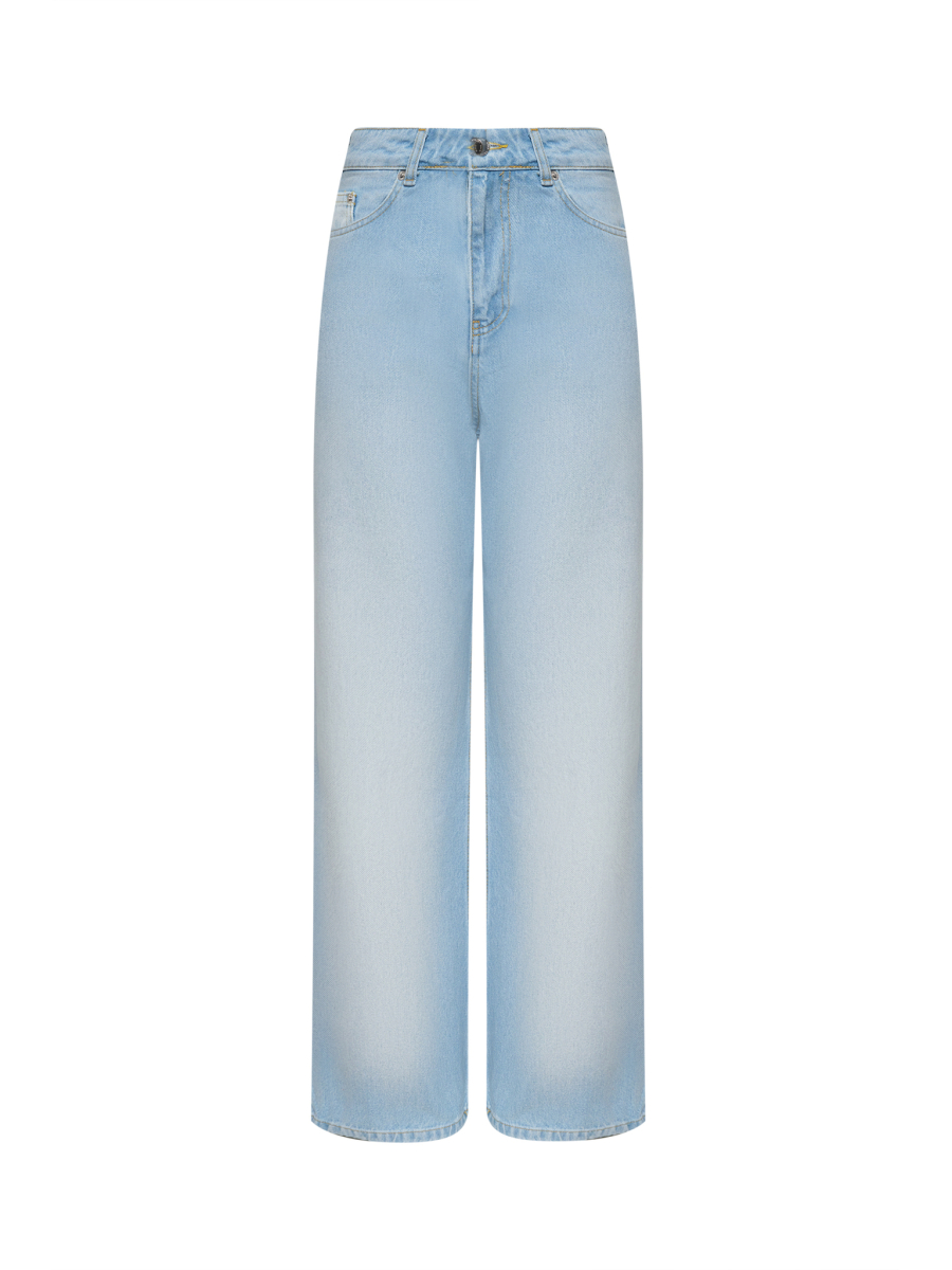 Наша отдельная гордость - джинсы бренда VELVET. Широкая модель в голубом оттенке с белыми разводами.