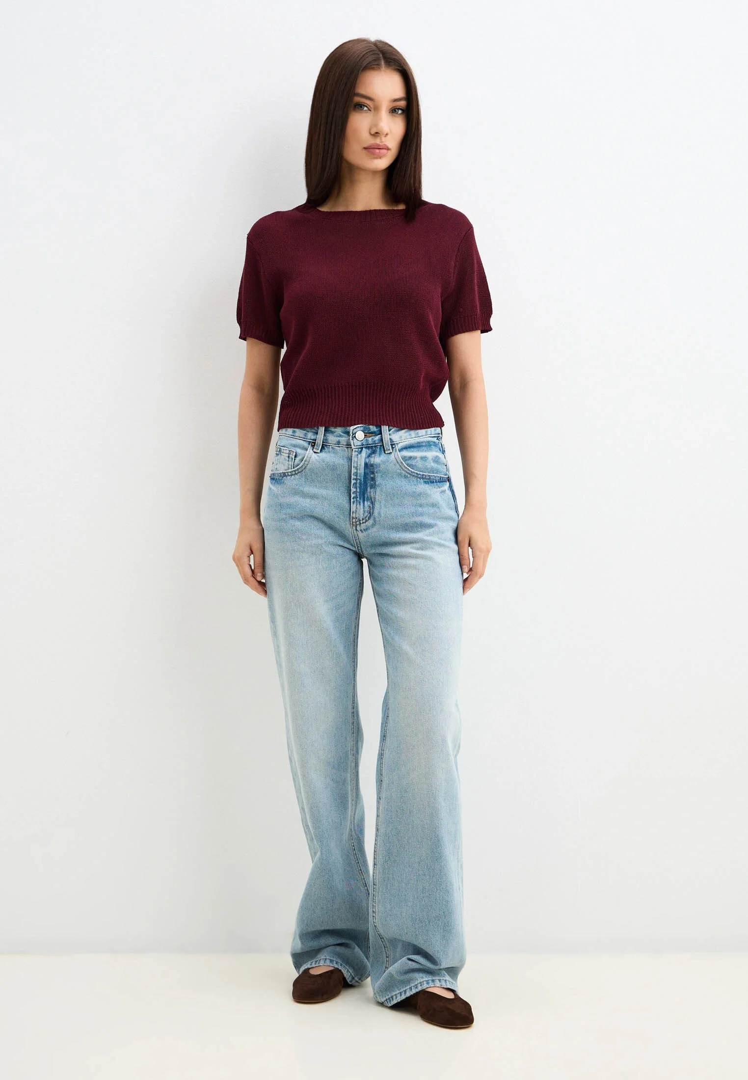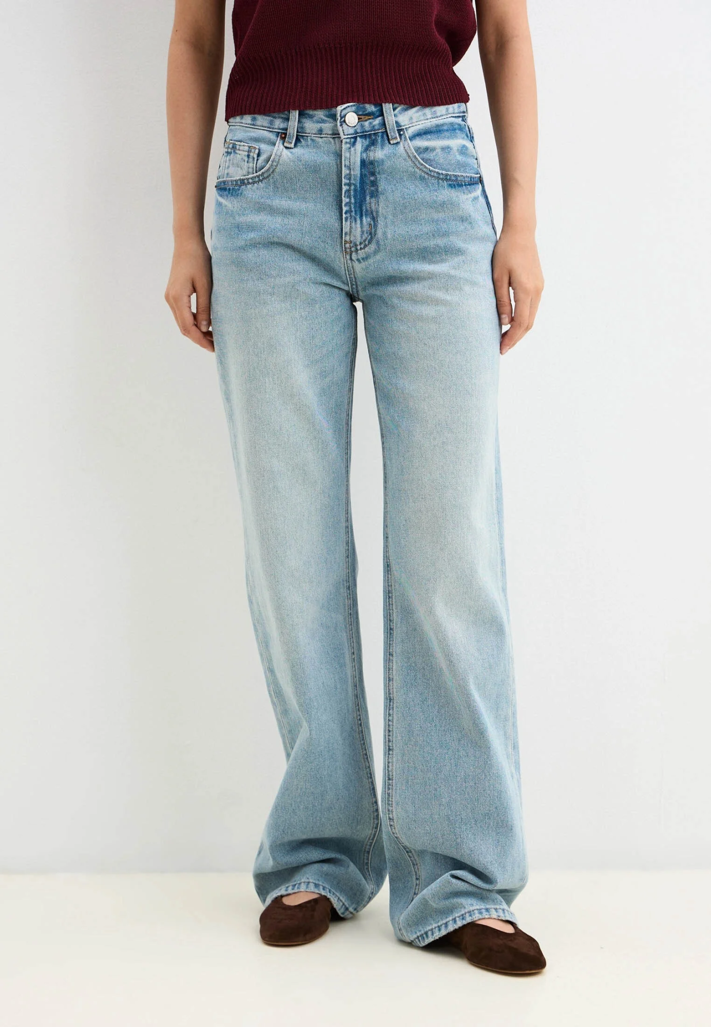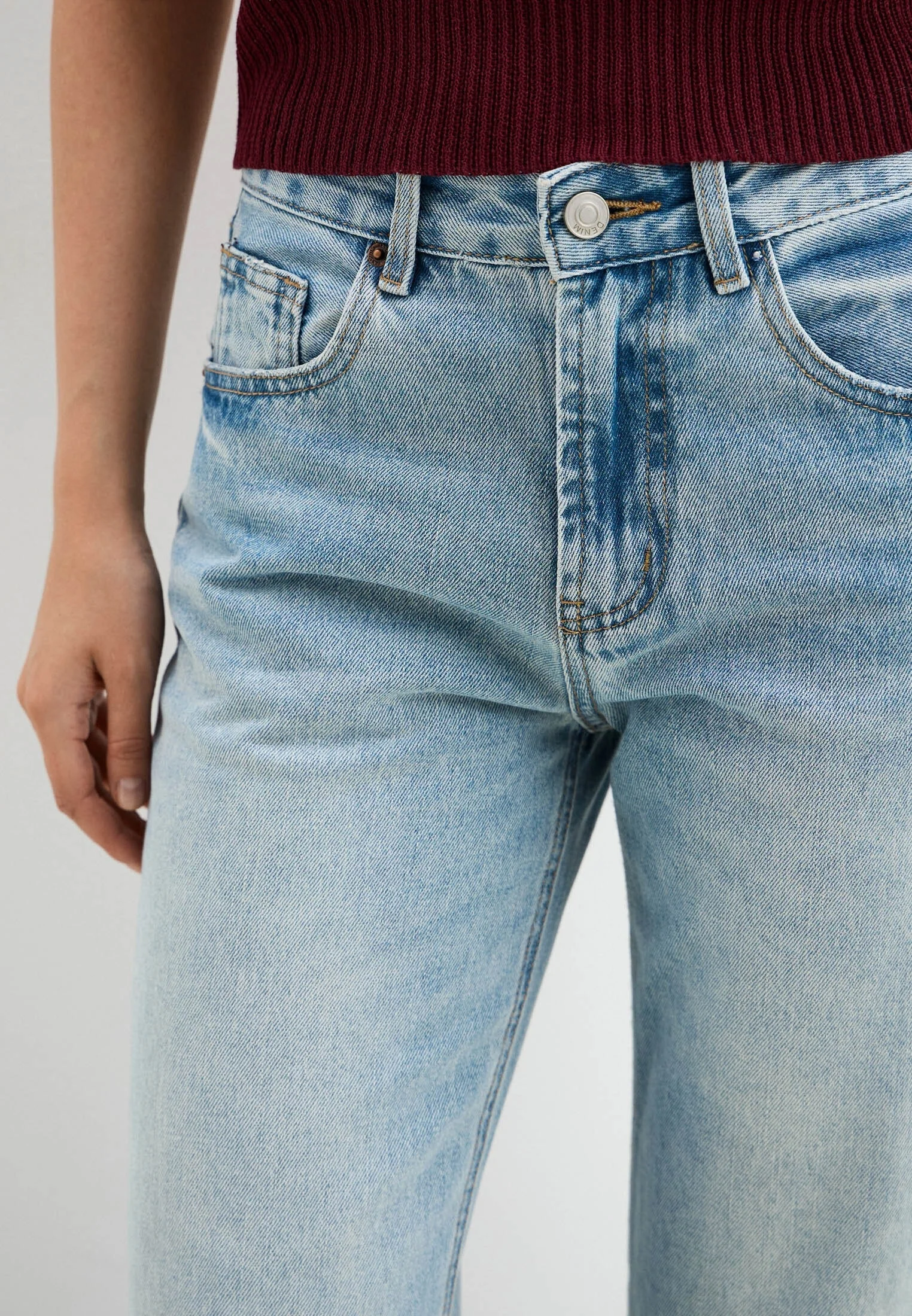Голубые джинсы — отличный выбор для создания стильного образа. Подходят для различных повседневных ситуаций.