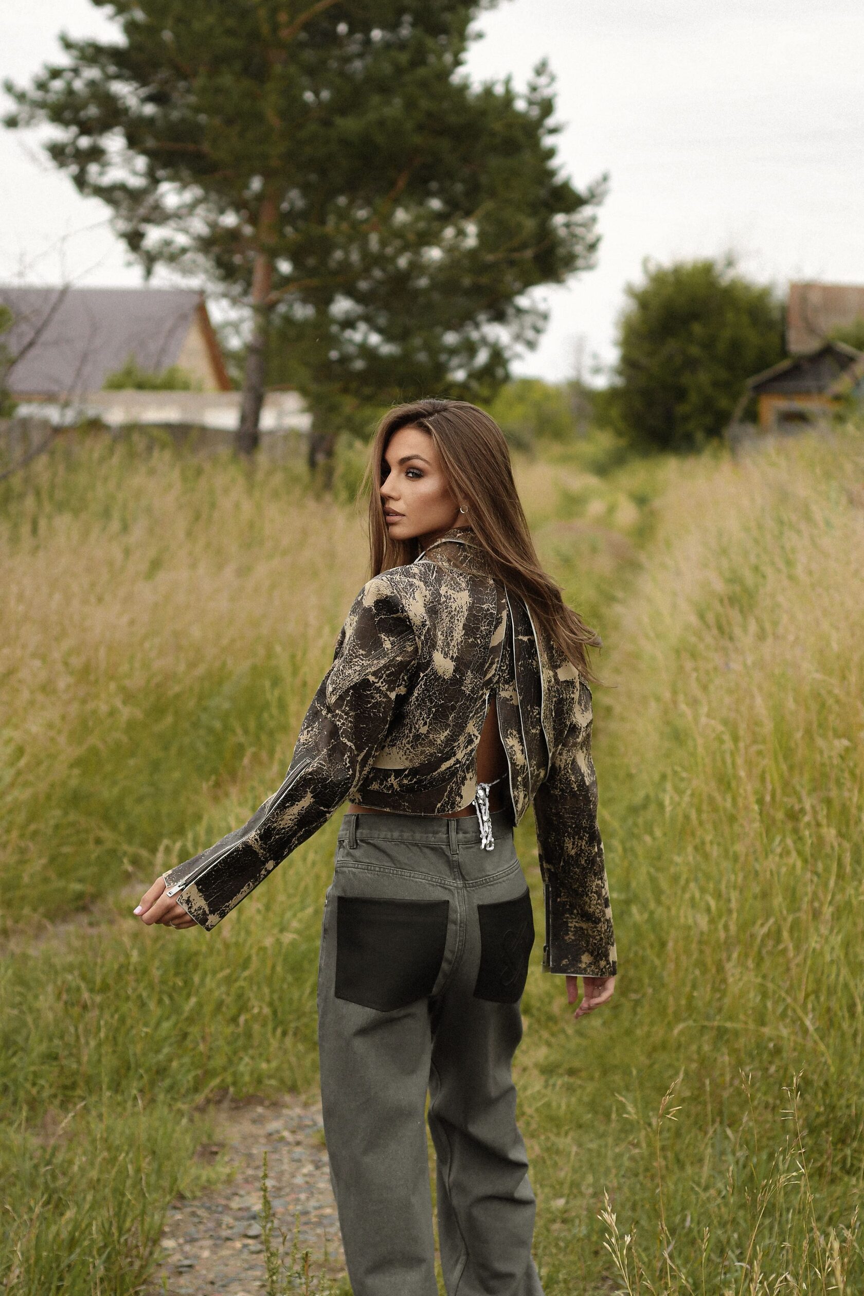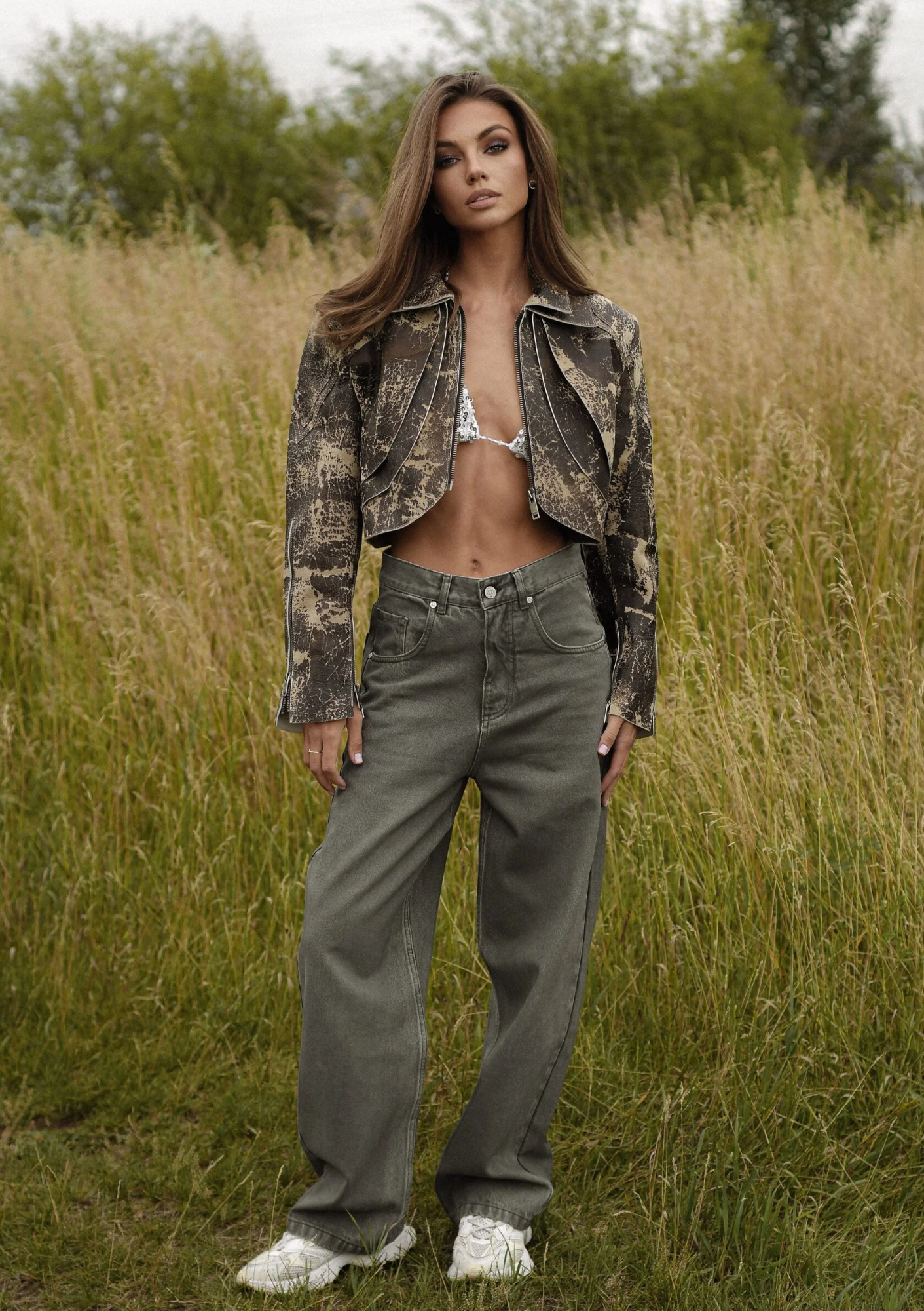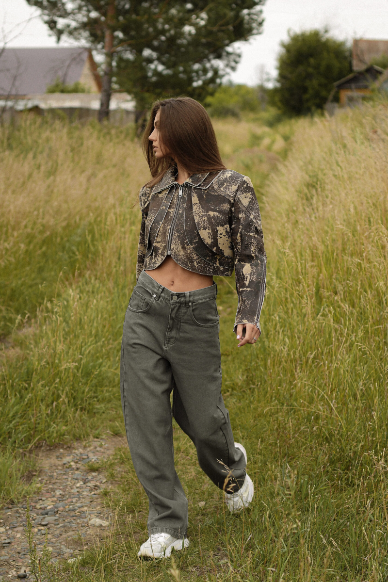 Джинсы выполнены из 100% хлопка с карманами из натуральной кожи.