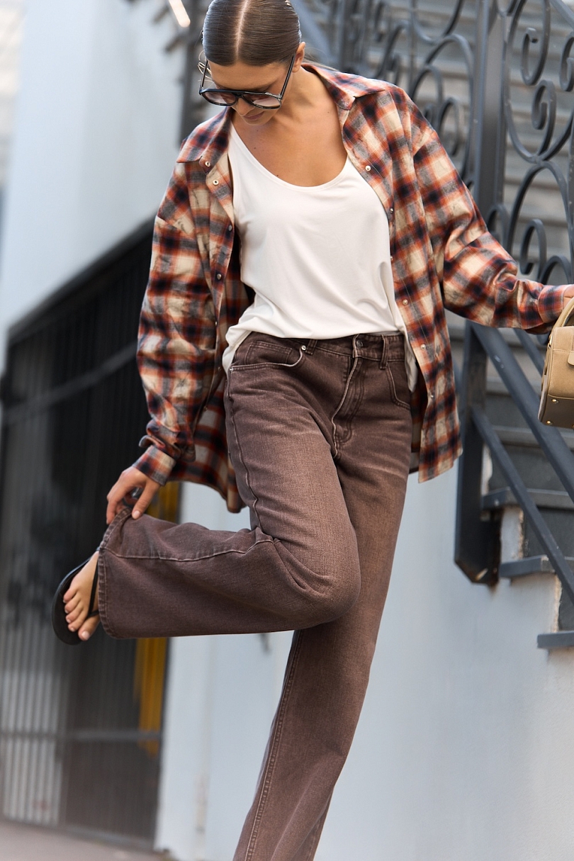 Джинсы DENIM CAPSULE coffee tint — современная интерпретация базовой модели в трендовом кофейном оттенке. Мягкий цвет добавляет образу утончённости, сохраняя универсальность денима.