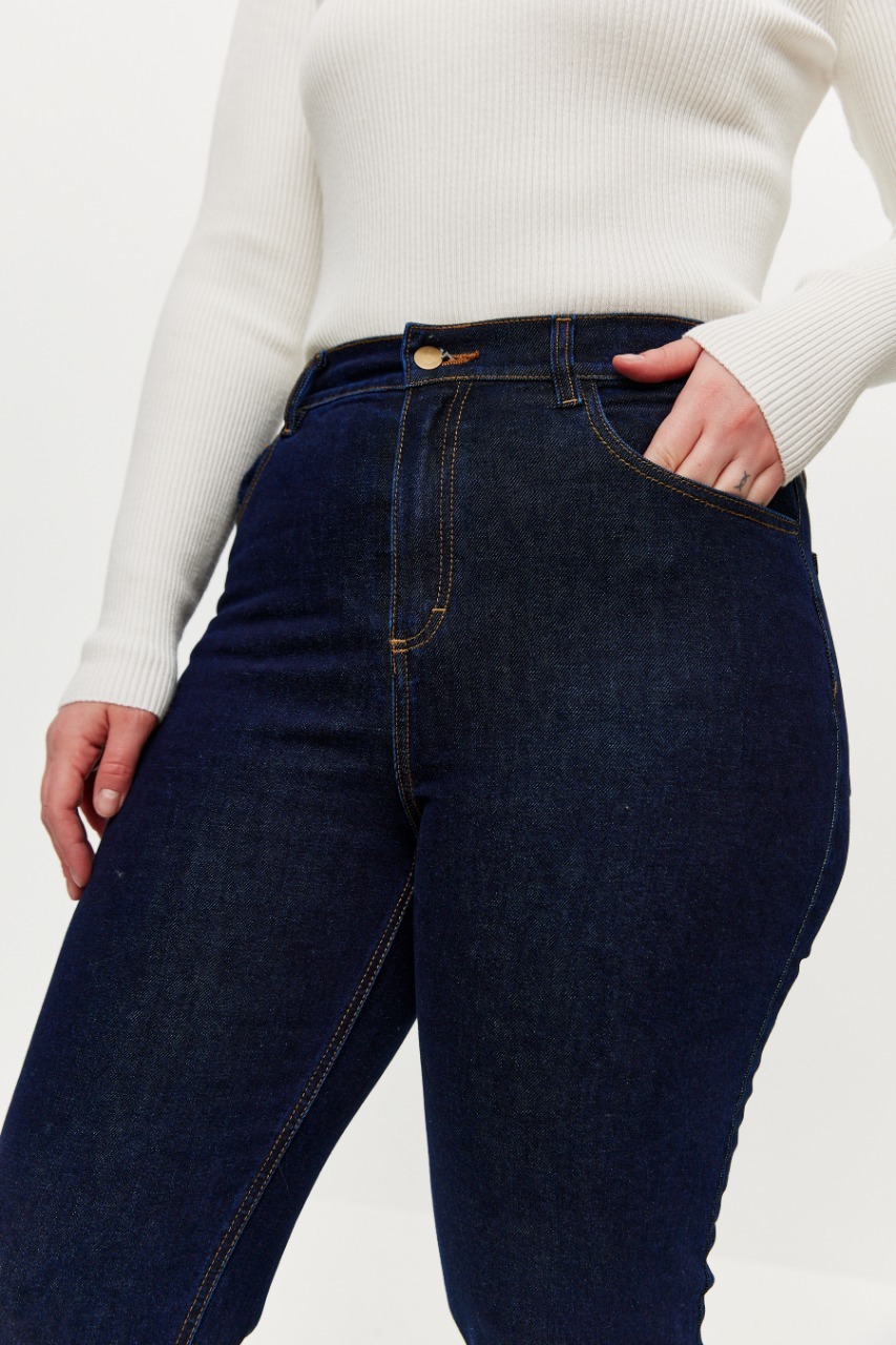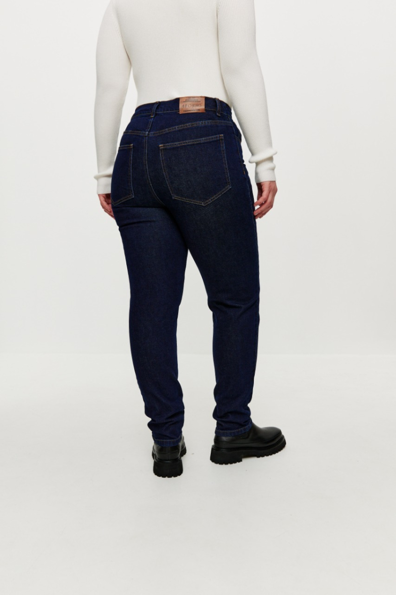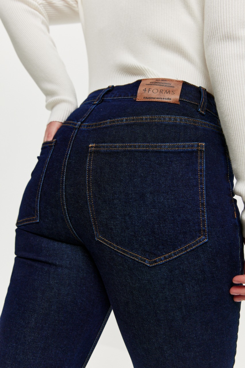 Комфортные, "дышащие" джинсы стрейч в темно-синем цвете с коричневой отстрочкой. Повседневные джинсы скини или зауженные джинсы на высокой посадке стали классикой женского гардероба. Данный крой позволяет сочетать джинсы с абсолютно разными вещами и создавать образы в самых разных стилевых направлениях.