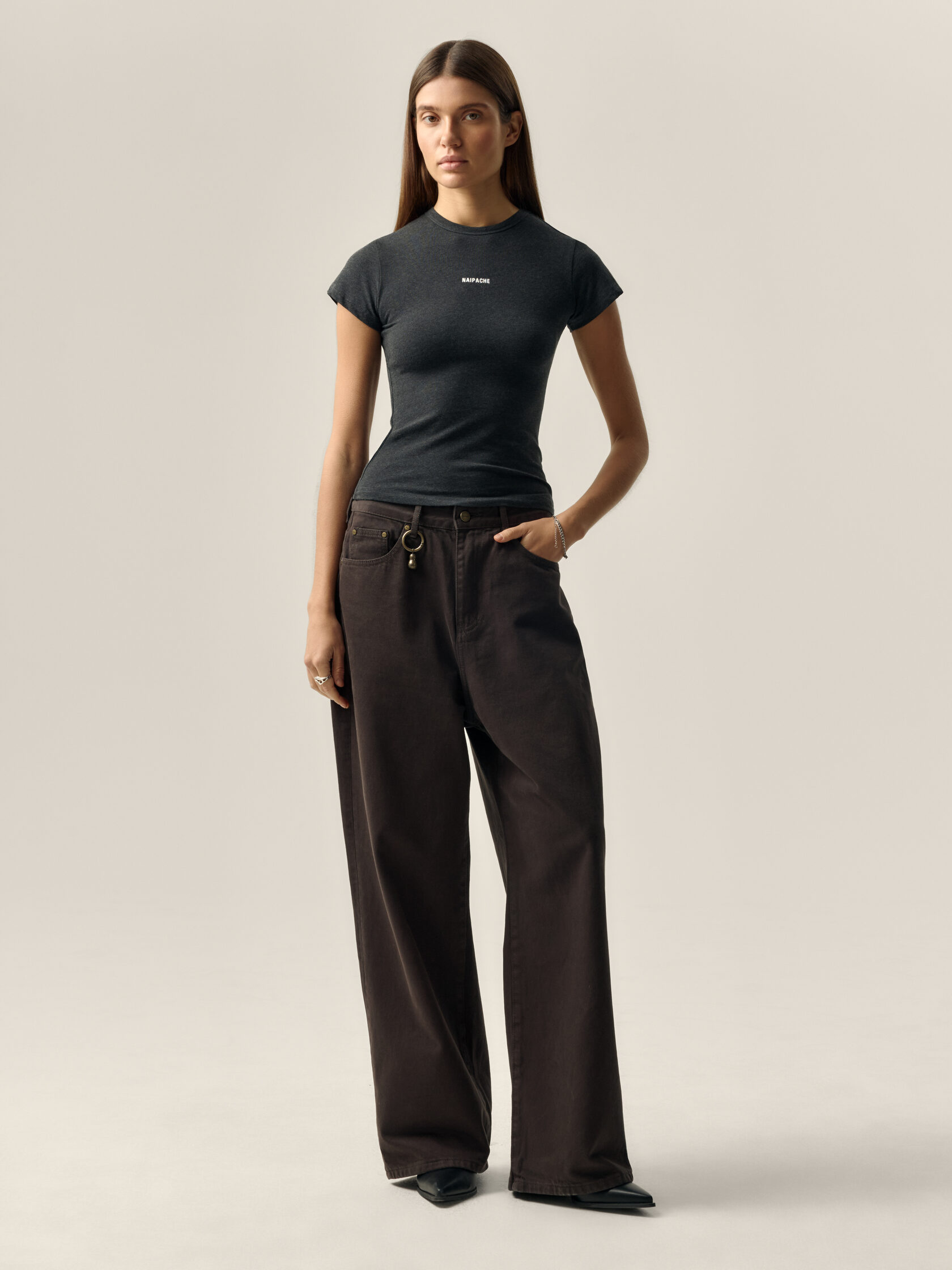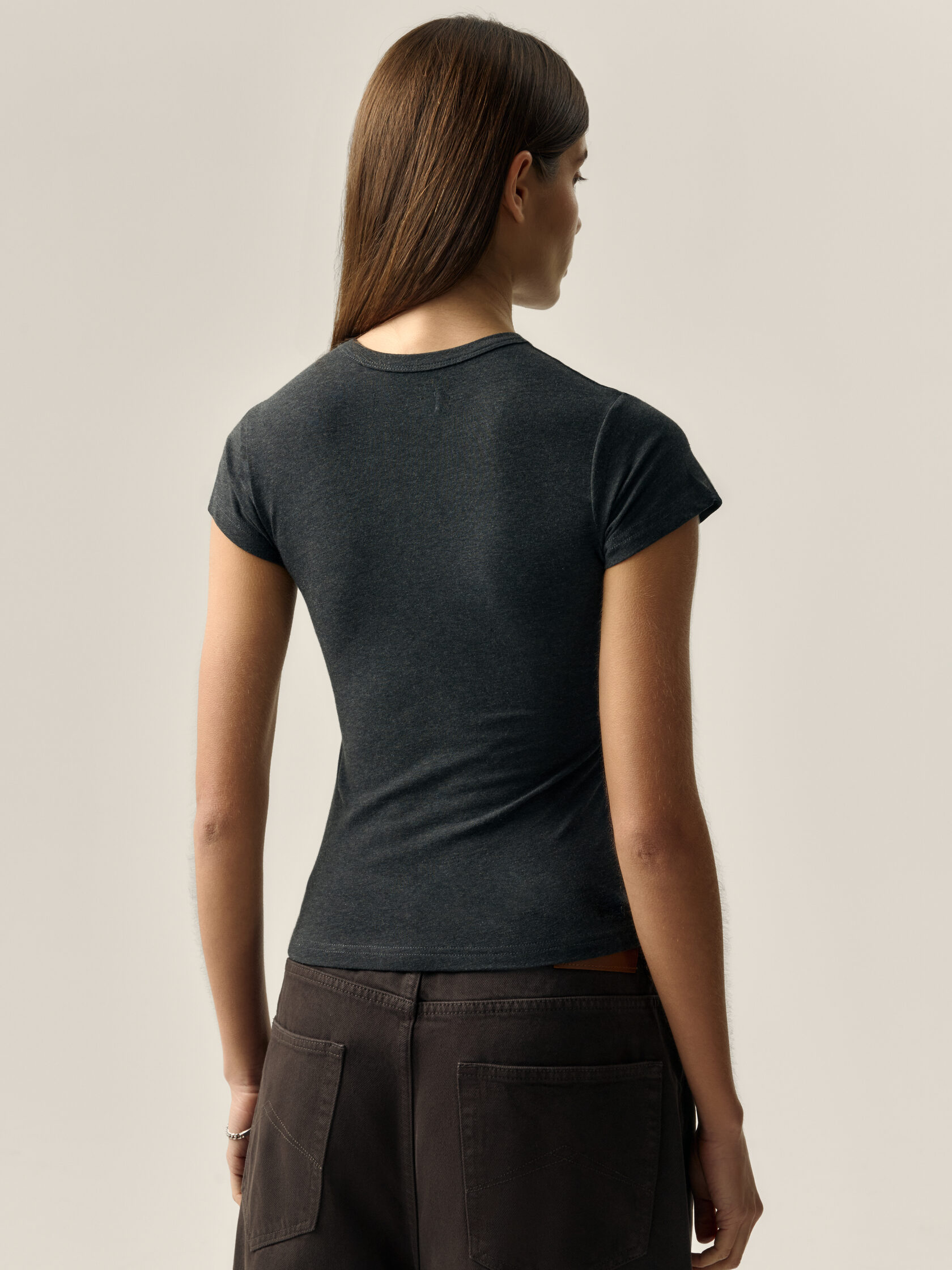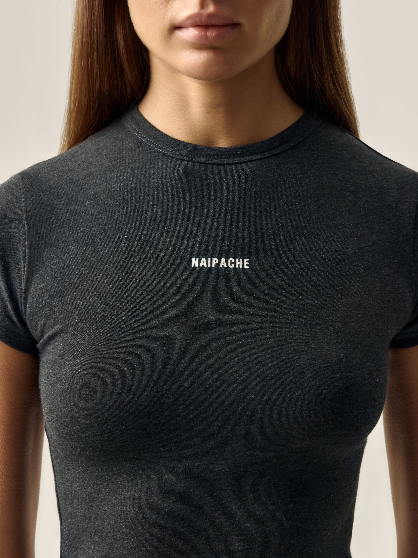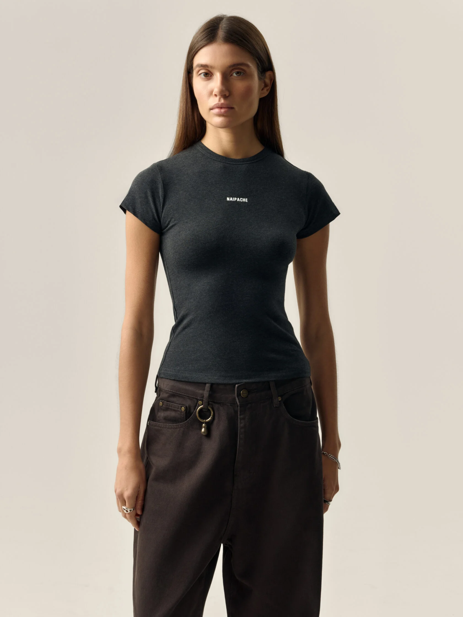 Приталенная футболка универсального размера (one-size). Классический трикотаж с гладкой поверхностью внутри и снаружи. Обладает высокой воздухопроницаемостью для комфорта и отлично держит форму. Облегающий крой подчеркивает силуэт без стеснения движений. Минималистичный логотип добавляет изысканный акцент. Балансируйте облегающий верх с джинсами или свободными брюками. Плотность ткани - 175 г/м².