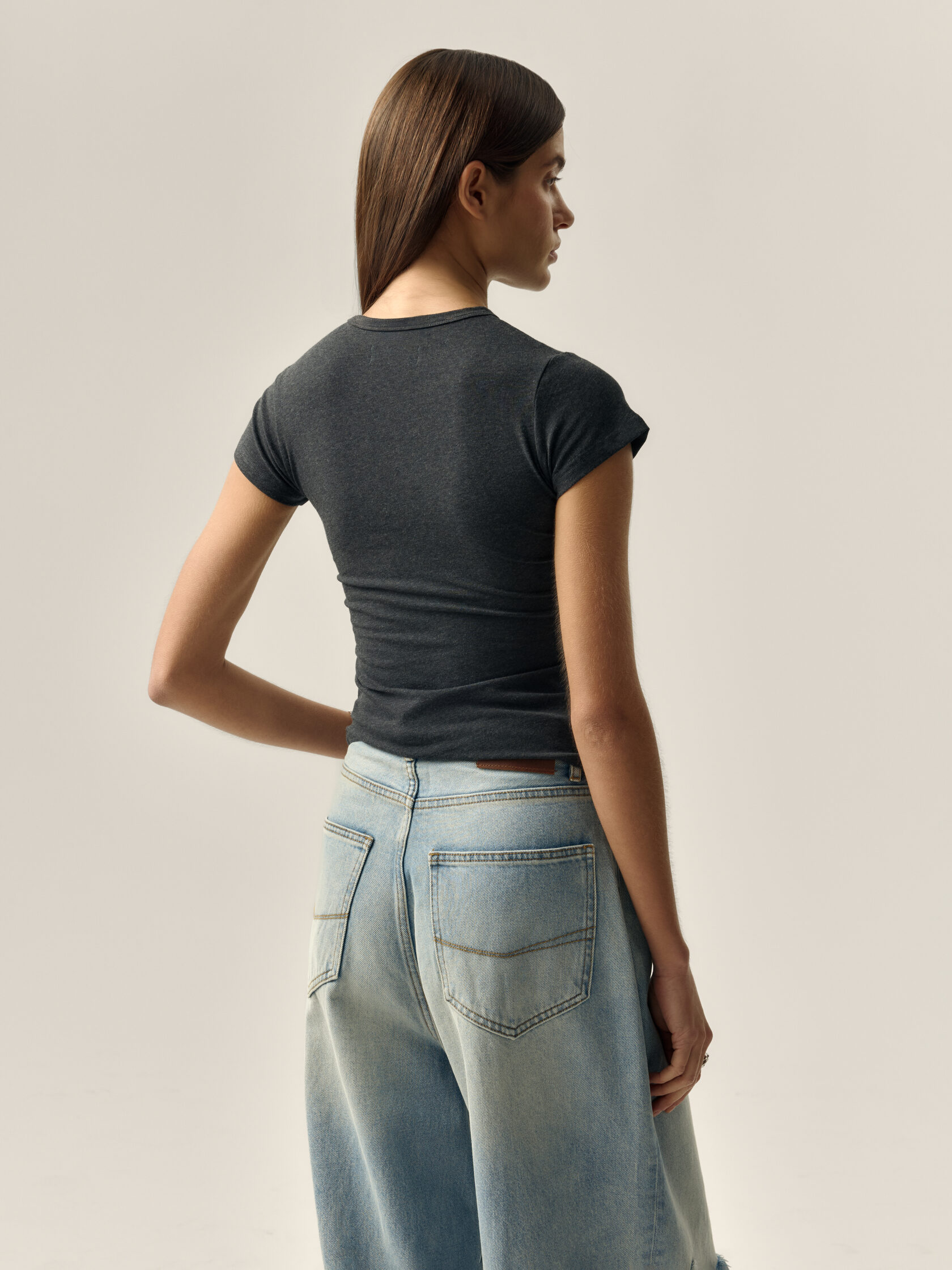 Приталенная футболка универсального размера (one-size). Классический трикотаж с гладкой поверхностью внутри и снаружи. Обладает высокой воздухопроницаемостью для комфорта и отлично держит форму. Облегающий крой подчеркивает силуэт без стеснения движений. Лаконичный базовый элемент с принтом. Легко комбинируется: джинсы или свободные брюки — ваш выбор. Плотность ткани - 175 г/м².