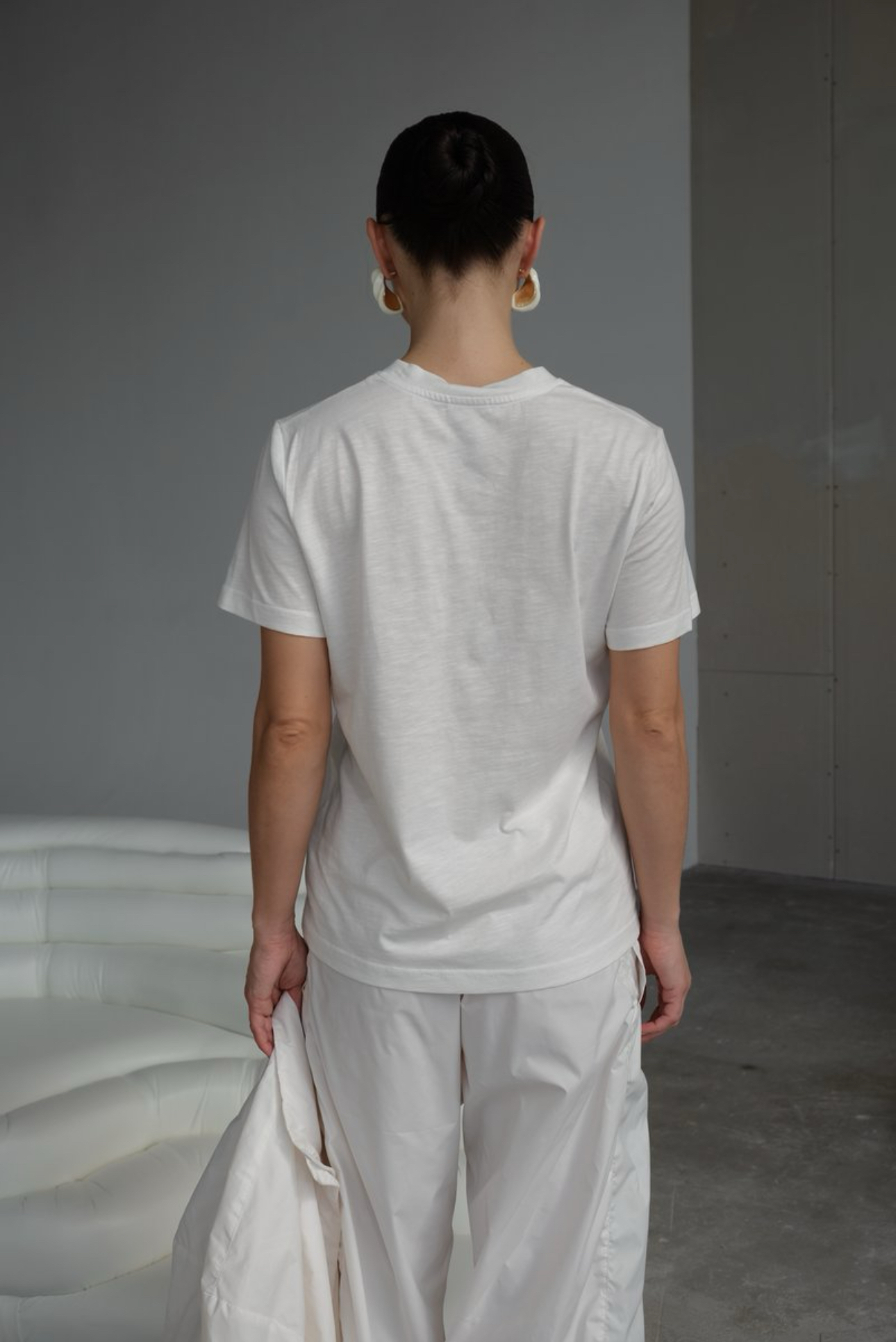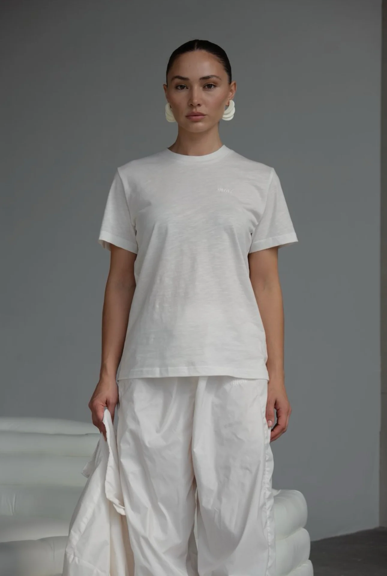 Базовая футболка с фирменной вышивкой — идеальный фундамент для любого образа. Классические черный и белый цвета, качественный материал и аккуратные детали создают универсальный стиль на каждый день.
