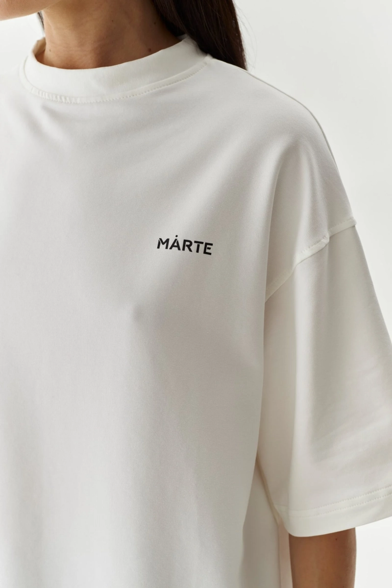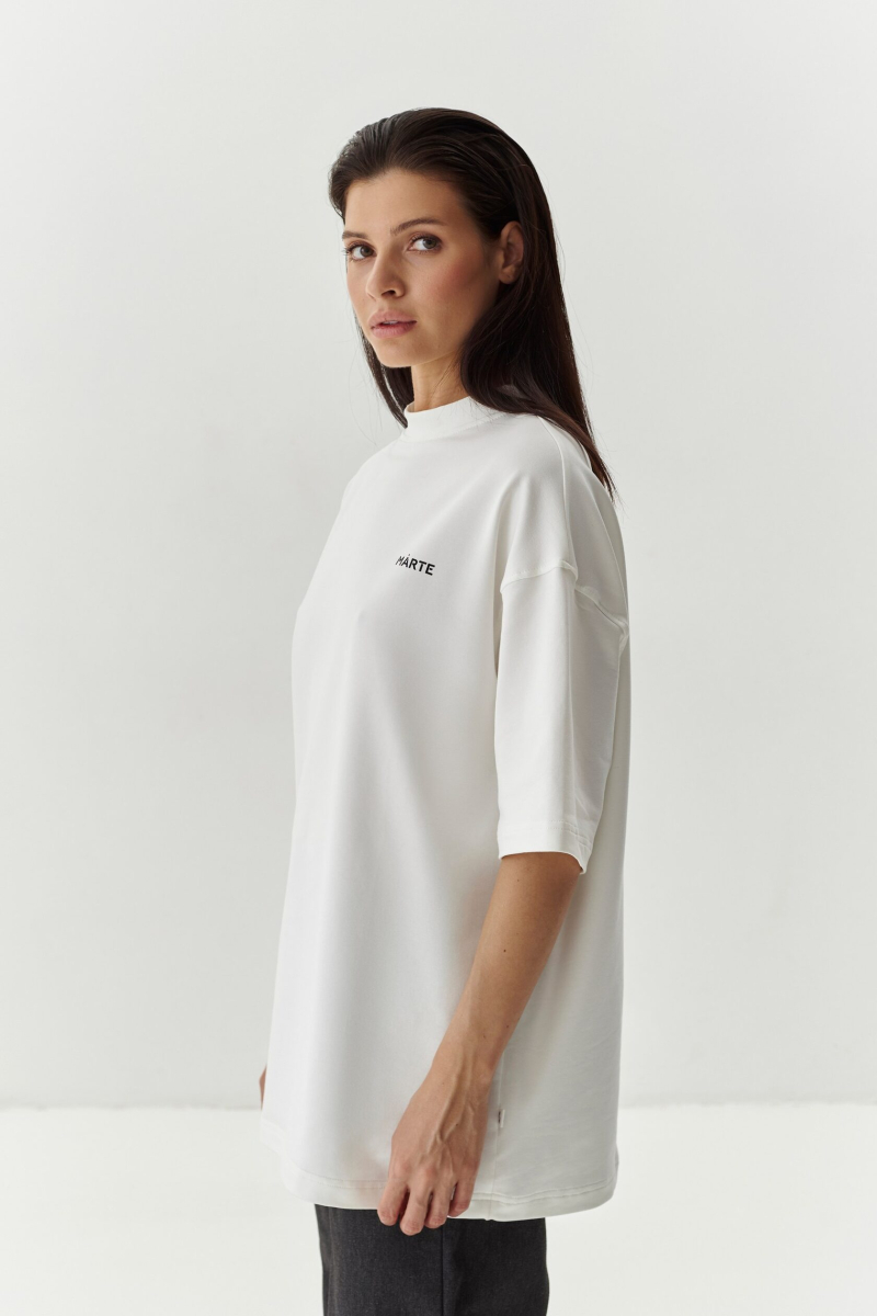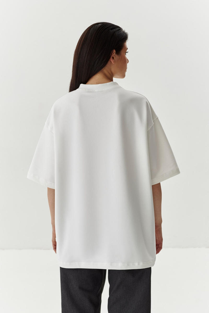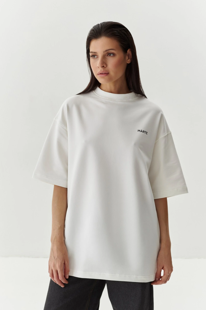 Базовая футболка свободного кроя на каждый день. Плотный материал, объемный силуэт и спущенная линия плеча — все это про удобство. Универсальная модель для любого образа — от классического до спортивного стиля.