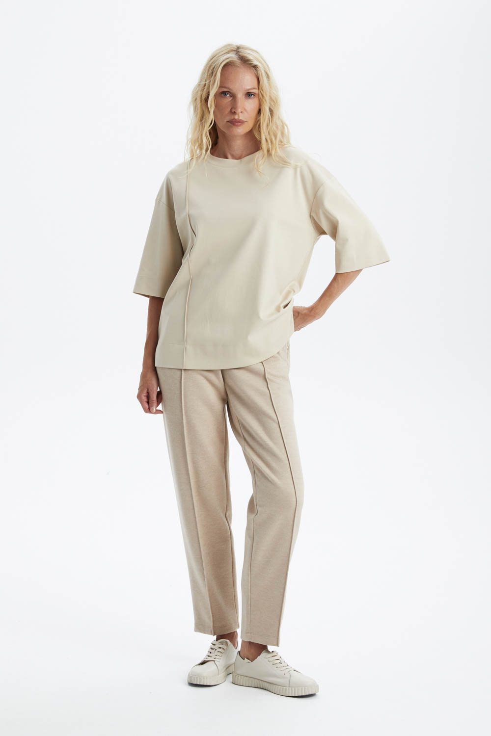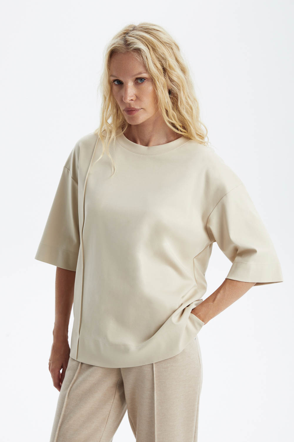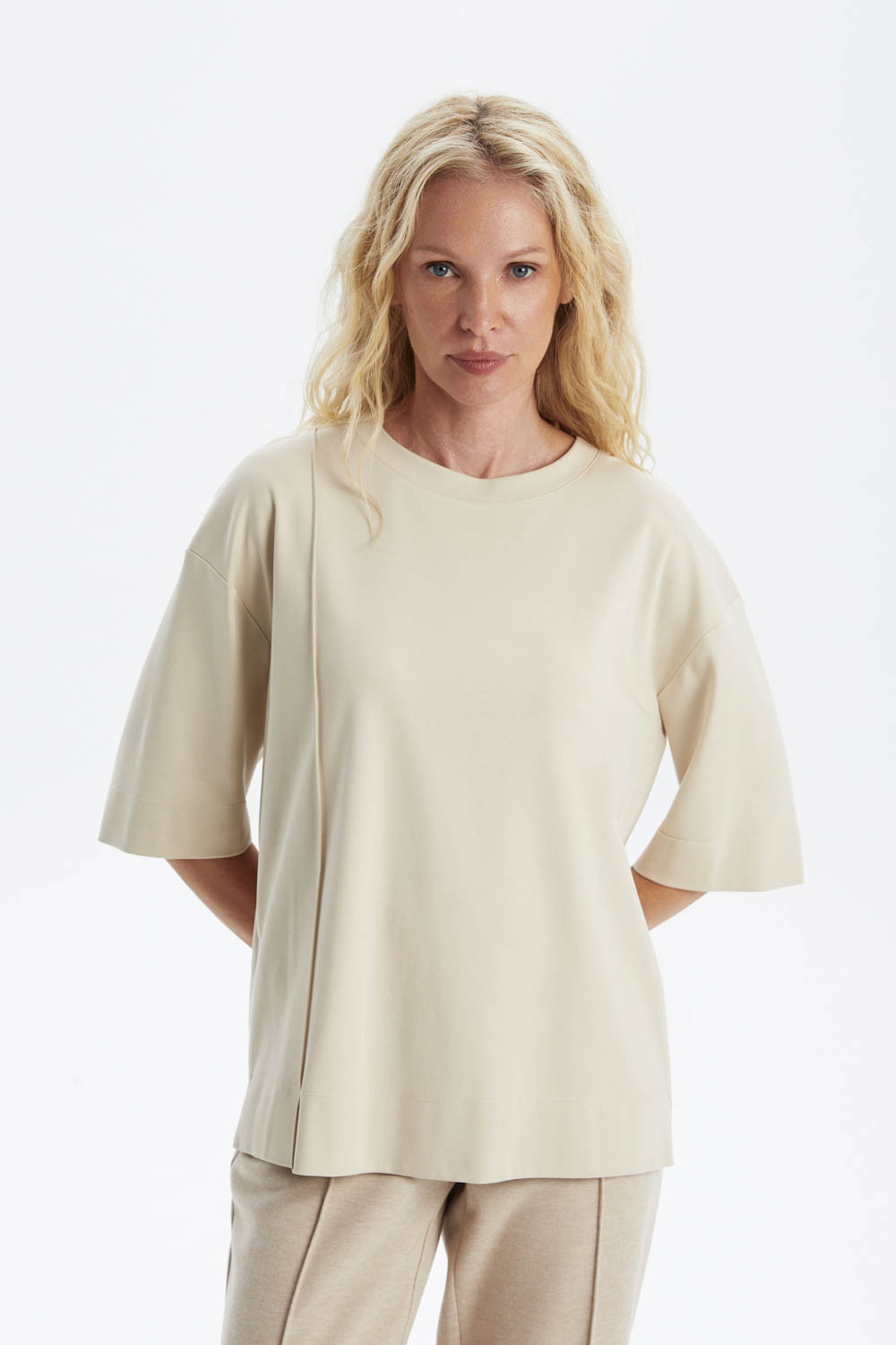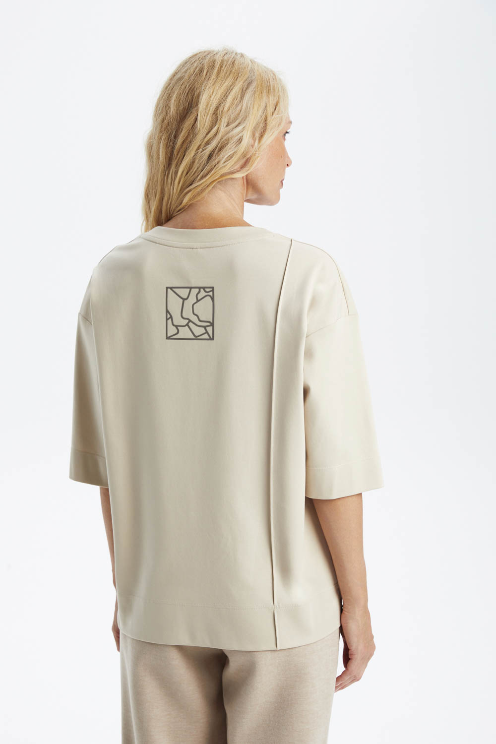 Уютная футболка оверсайз с длинным рукавом в бежевом цвете — идеальный выбор для повседневного образа. Свободный крой обеспечивает комфорт, а нейтральный оттенок легко сочетается с другими элементами гардероба. Эта футболка станет незаменимой вещью в вашем шкафу.