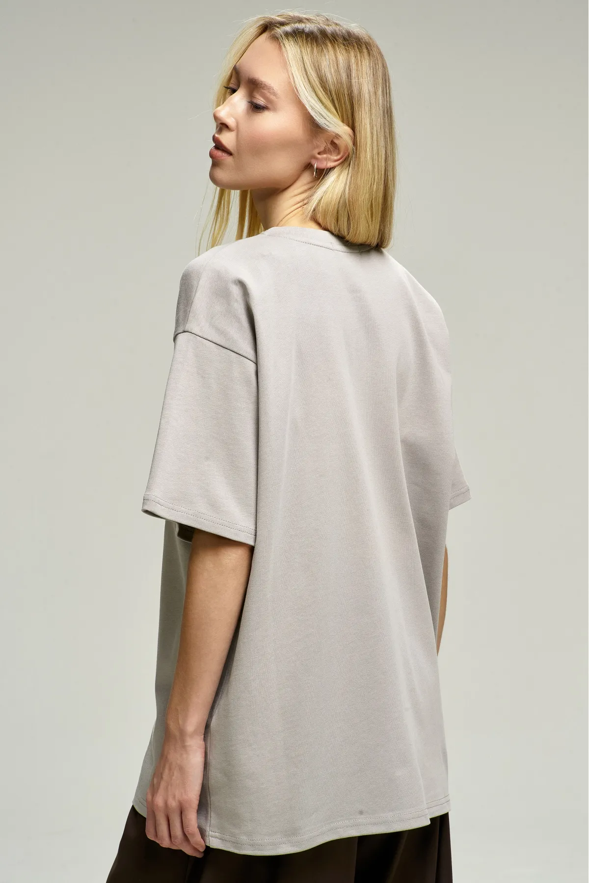 Материал не просвечивает и прекрасно дышит, обеспечивая комфорт в течение всего дня. Свободный силуэт OS легко вписать в повседневные образы. Принт выполнен с помощью высокотехнологичной печати, а значит, изделие надолго сохранит свой безупречный вид.