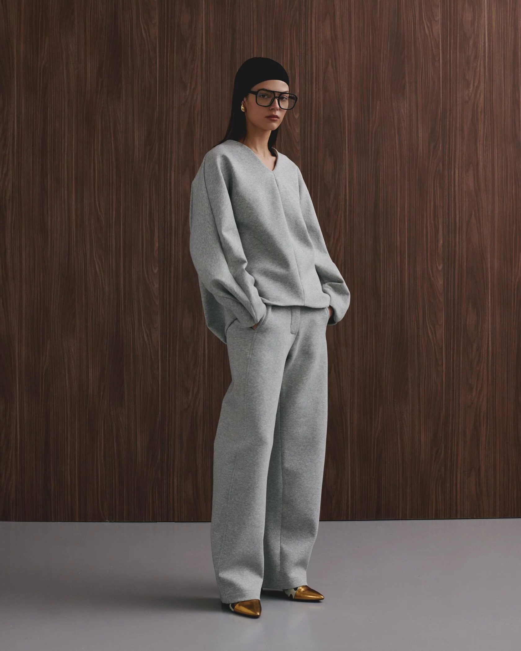 У модели остаются все признаки привычных классических брюк, но уникальность кроя модели в уходящем вперед боковом шве, что зрительно вытягивает силуэт. брюки выполнены из премиального итальянского футера, синоним которому - комфорт. Ведь мы всегда желаем только мягкой посадки.